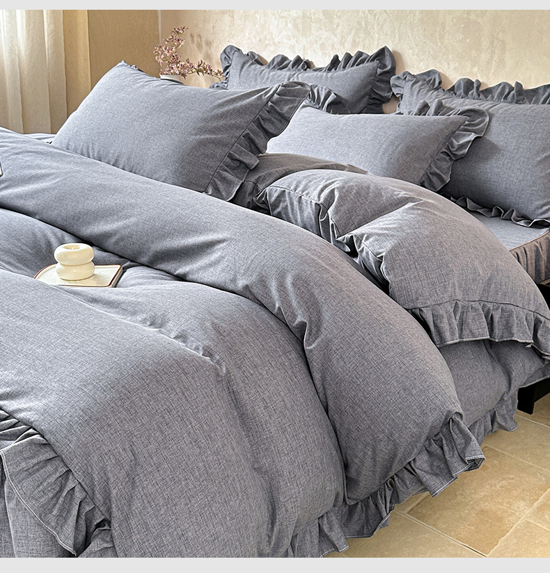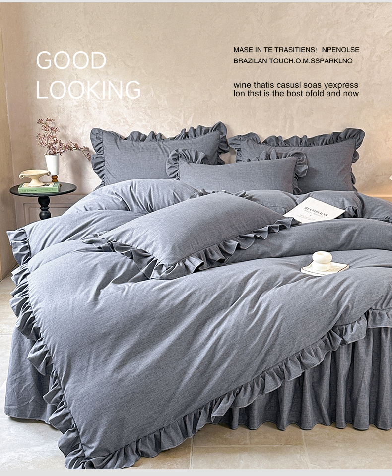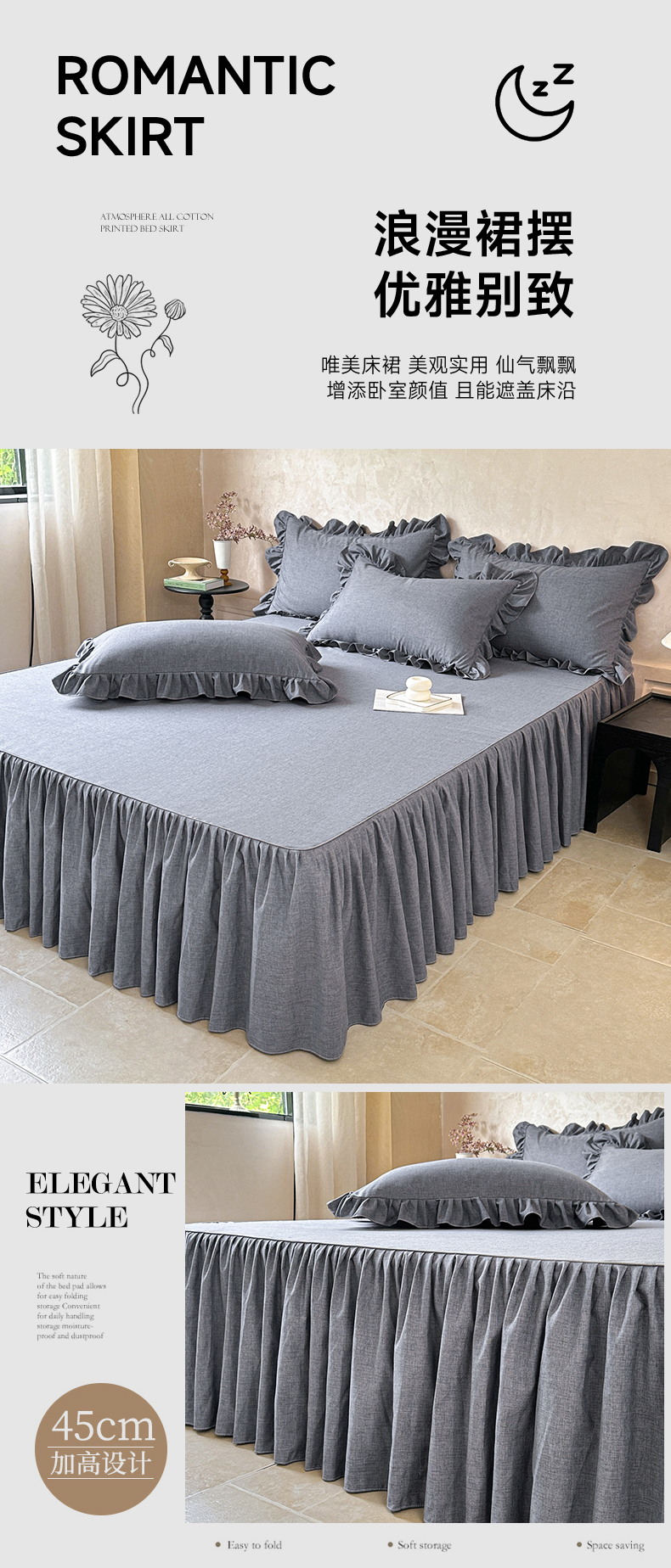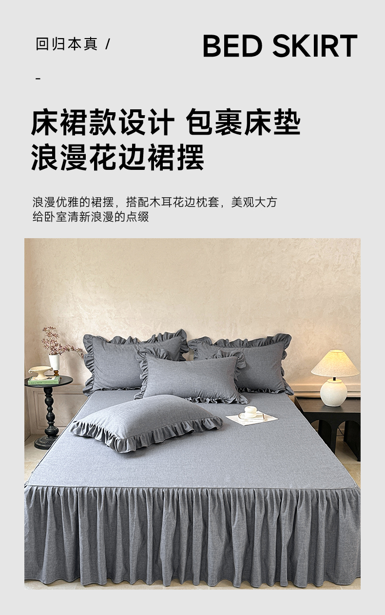 (总)忘忧草 2026新款纯色色织芙蓉棉床裙四件套-维密系列,维密-香槟米,维密-薄荷绿,维密-藏青蓝,维密-沉稳灰,维密-丁香紫,维密-宁静蓝,维密-青春粉