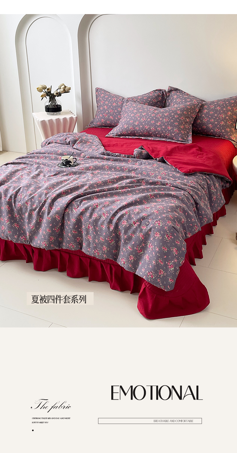 (总)麦田家纺 2026新款皱皱水洗棉床盖夏被夏凉被空调被四件套,樱桃蜜语,玫瑰园,安妮,繁花,海德花园,卡地亚-红