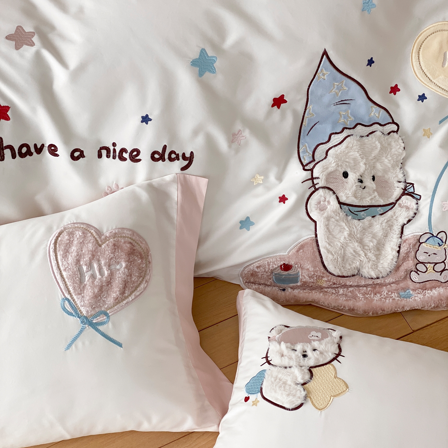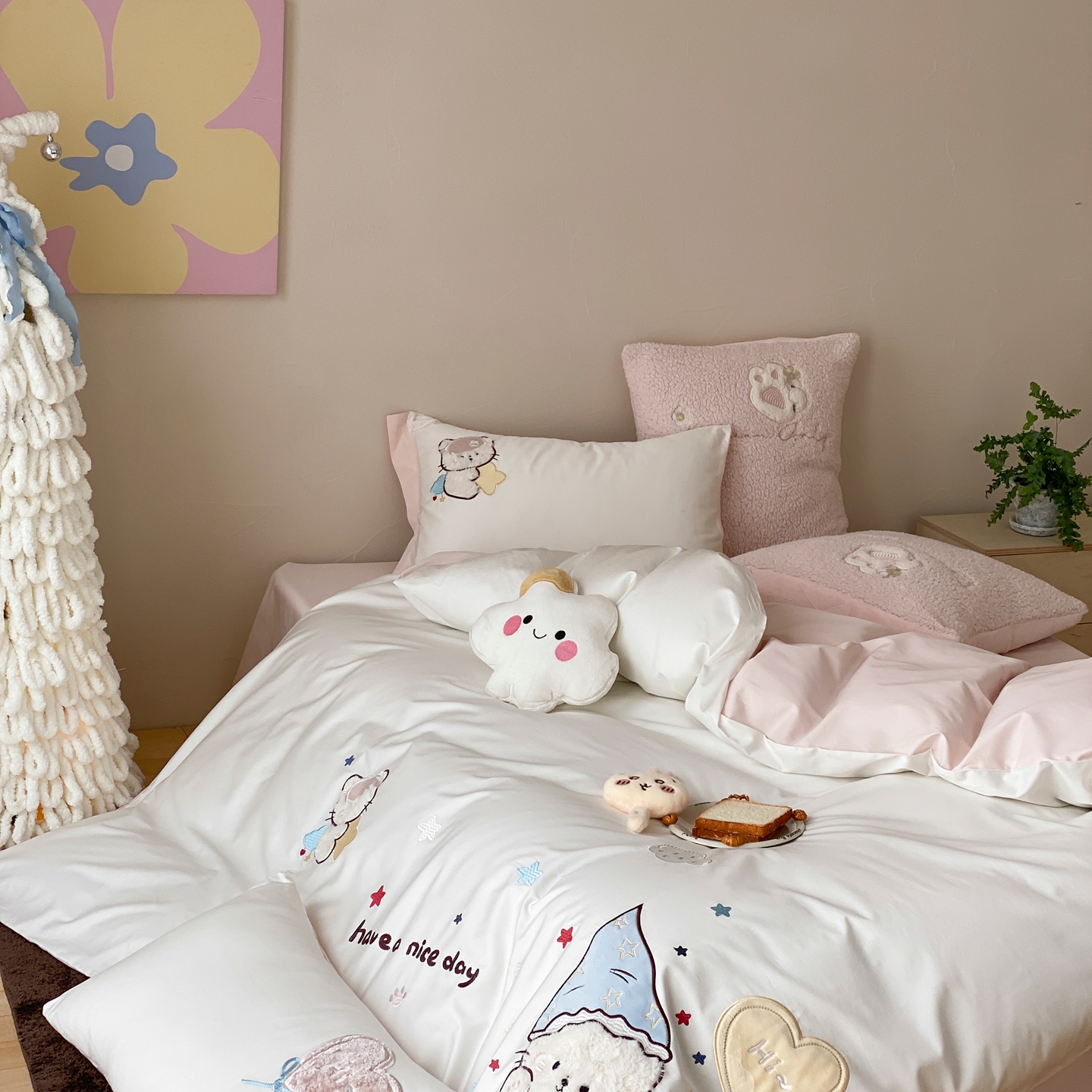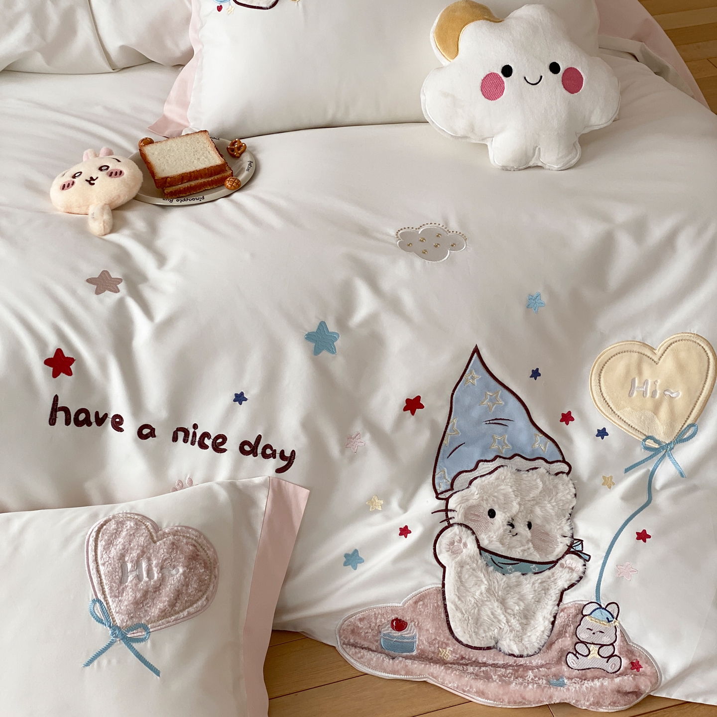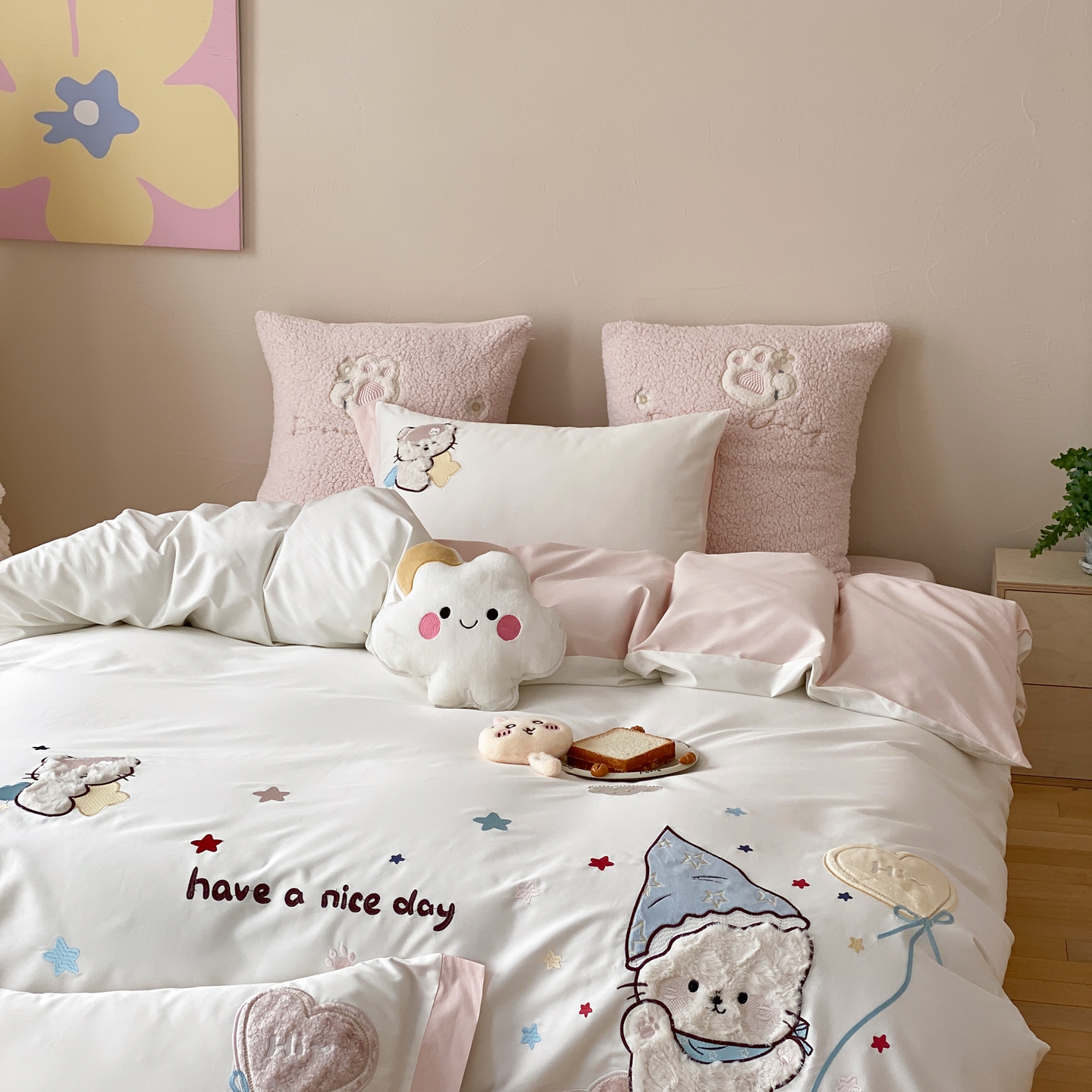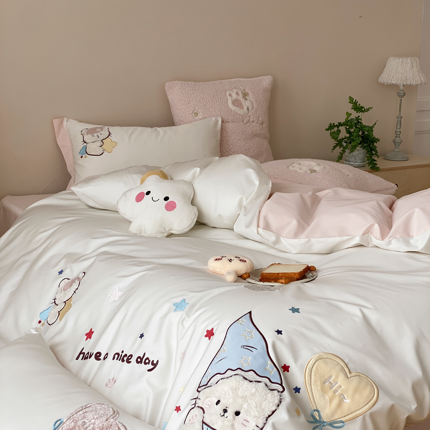 (总)星野 2026春夏新品100双股澳棉刺绣贴布绣四件套--喵满分