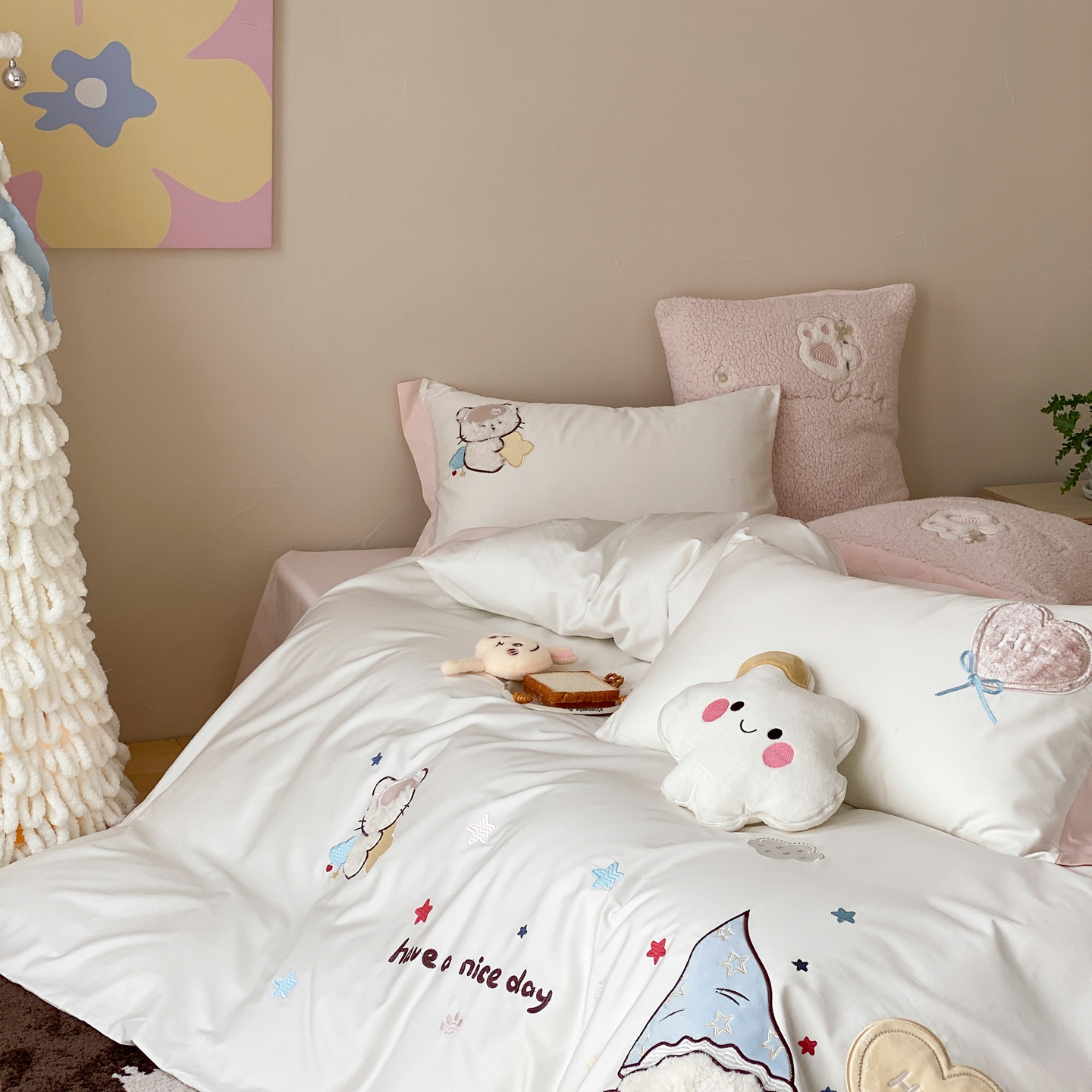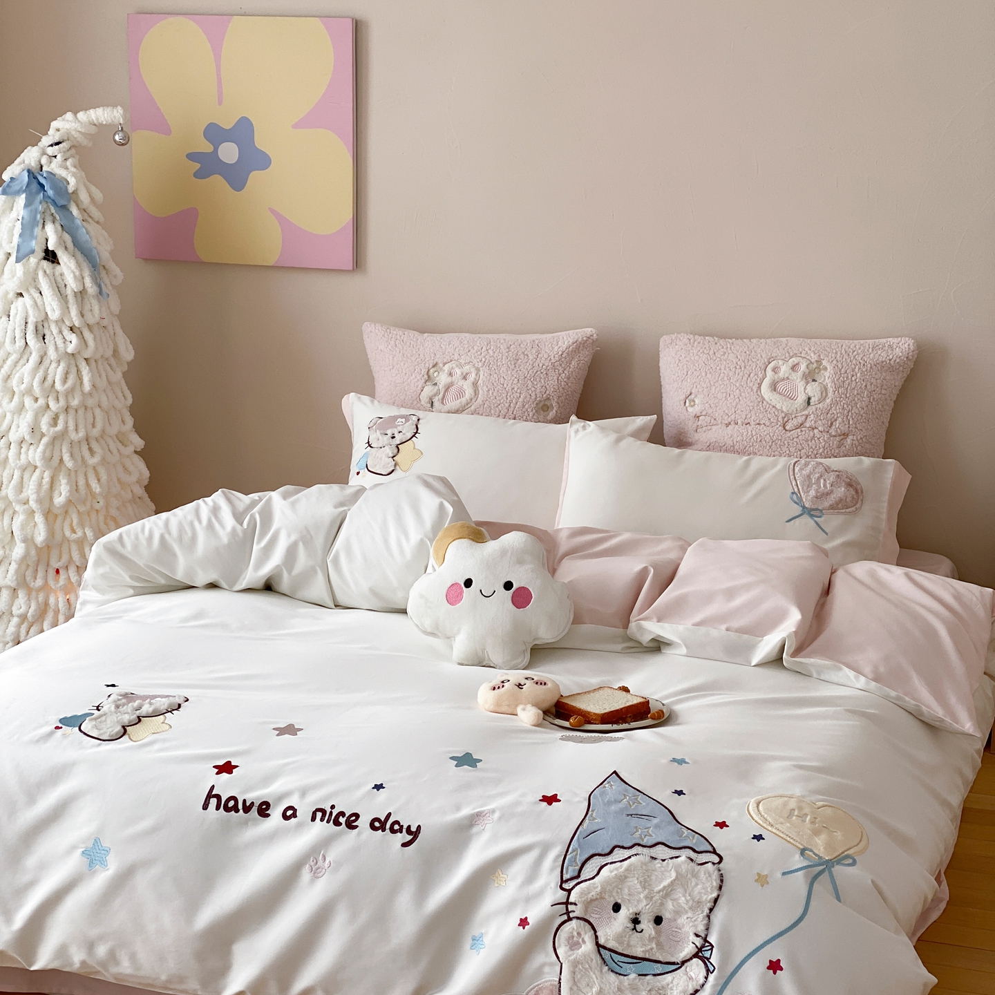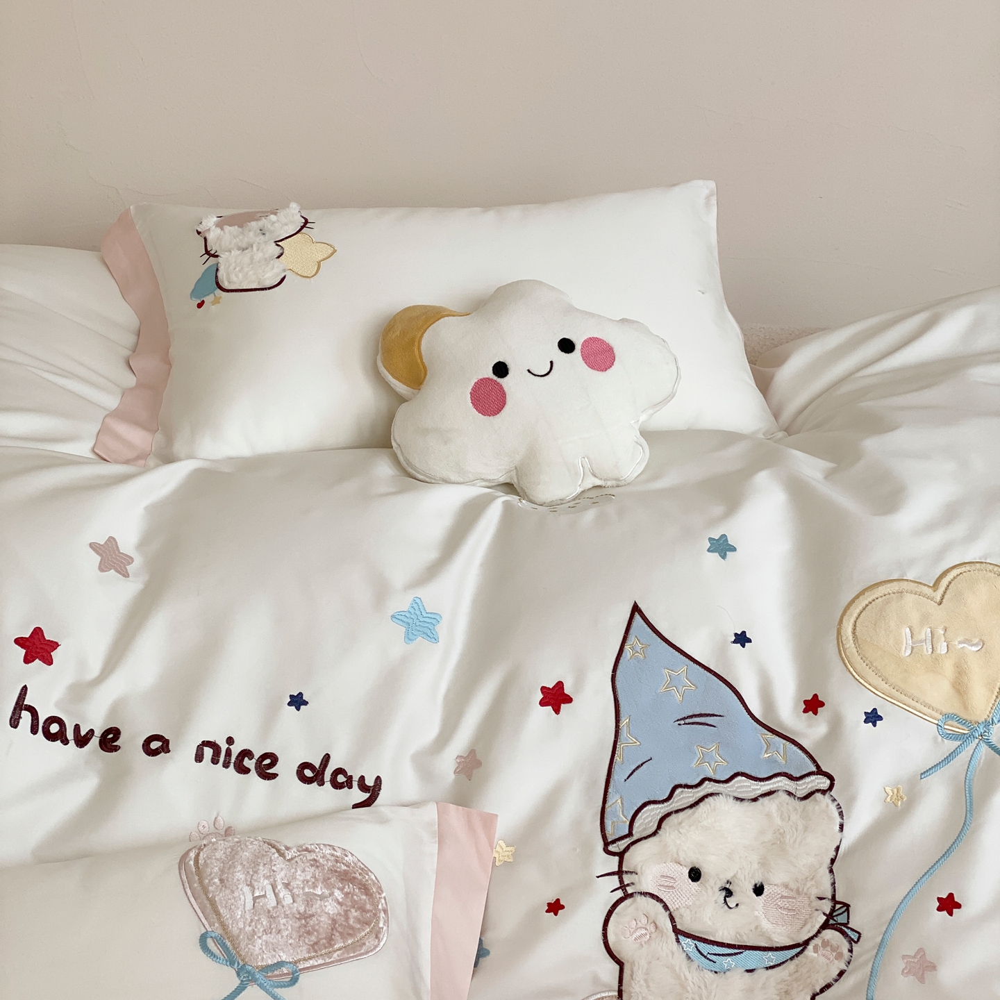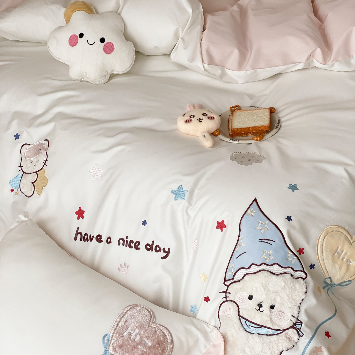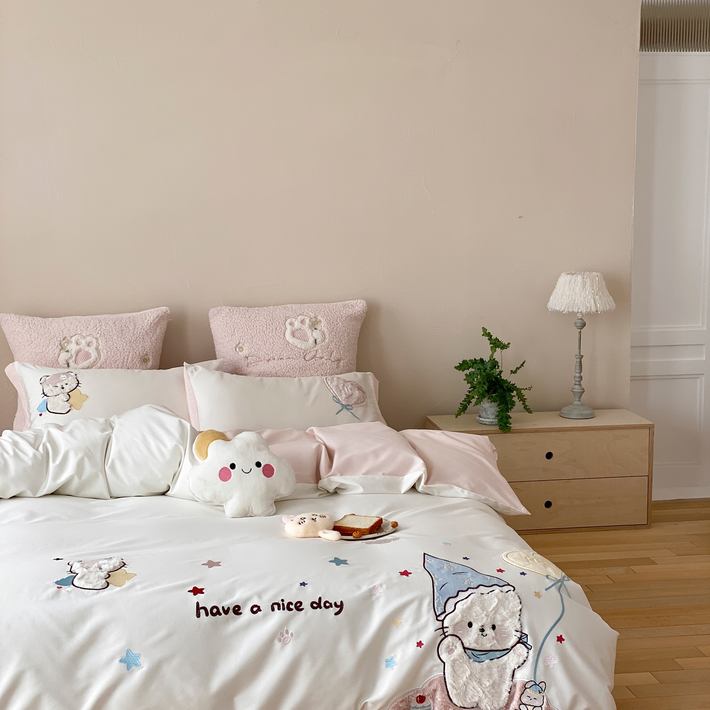 (总)星野 2026春夏新品100双股澳棉刺绣贴布绣四件套--喵满分