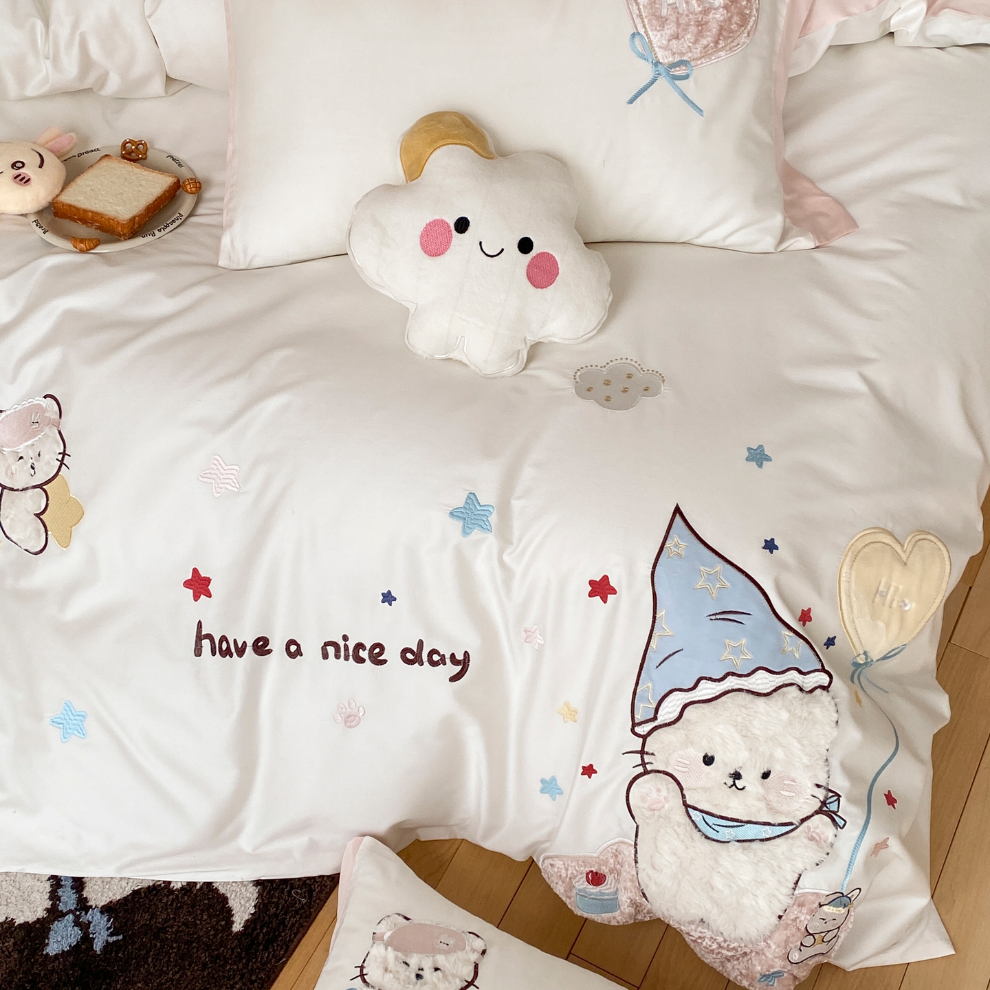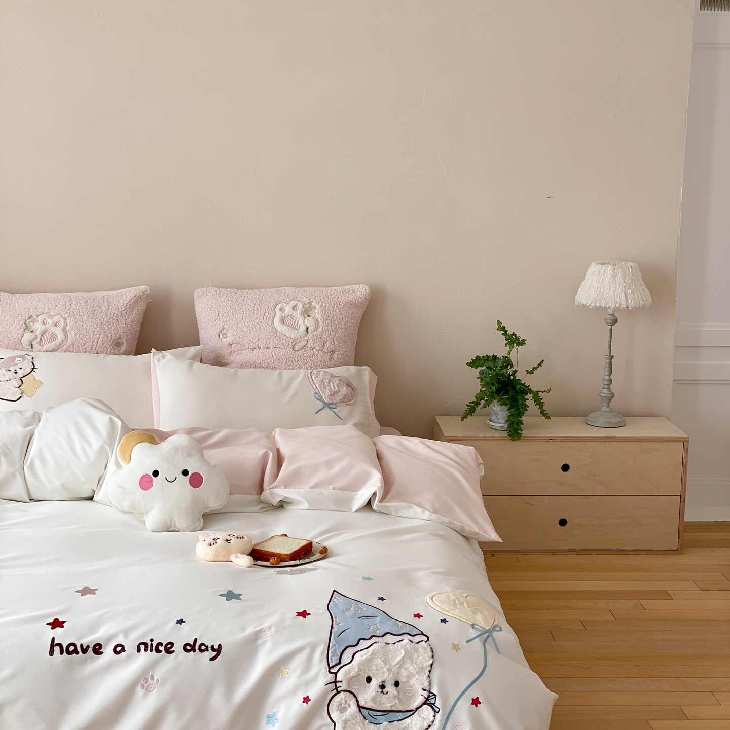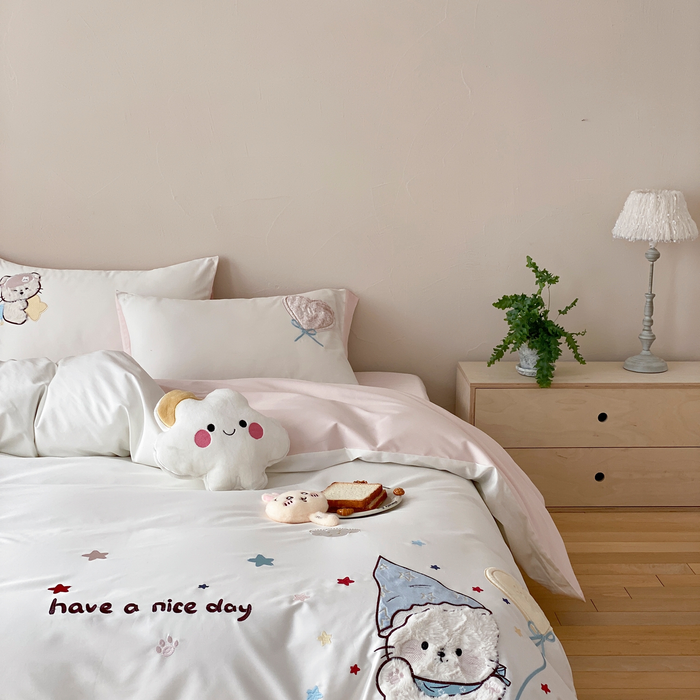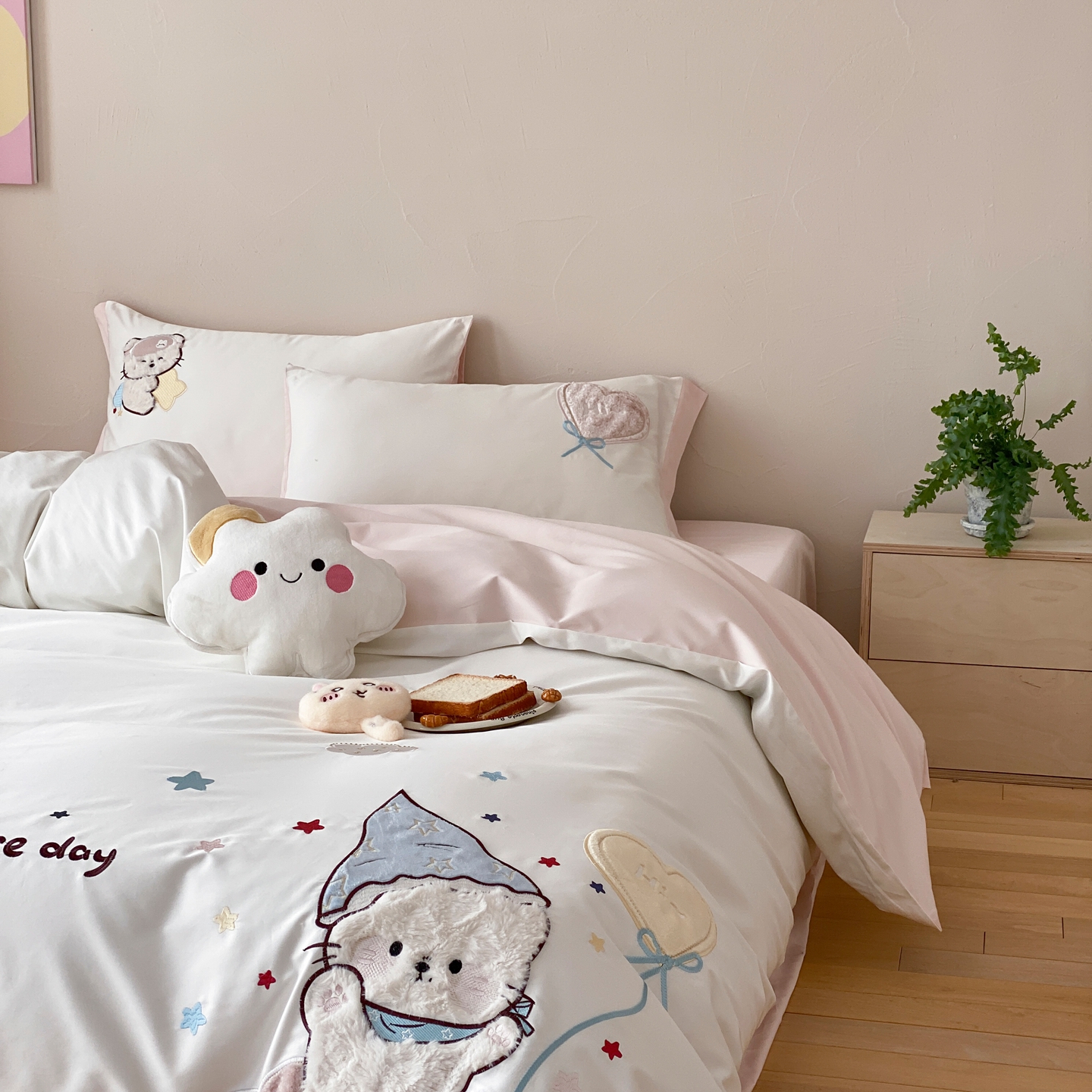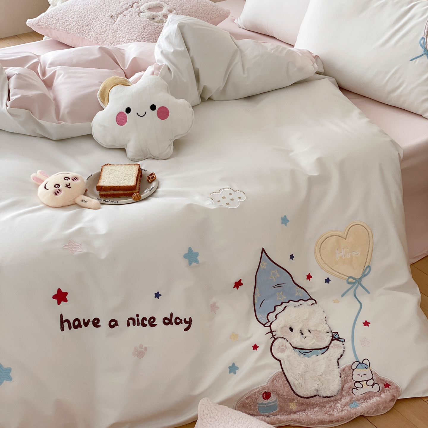 (总)星野 2026春夏新品100双股澳棉刺绣贴布绣四件套--喵满分