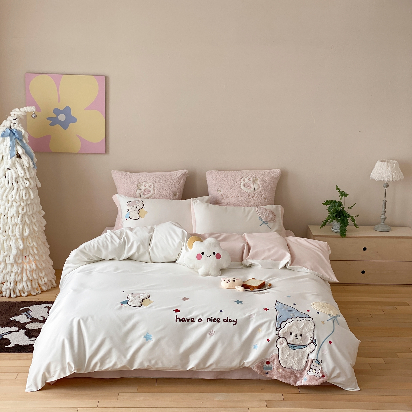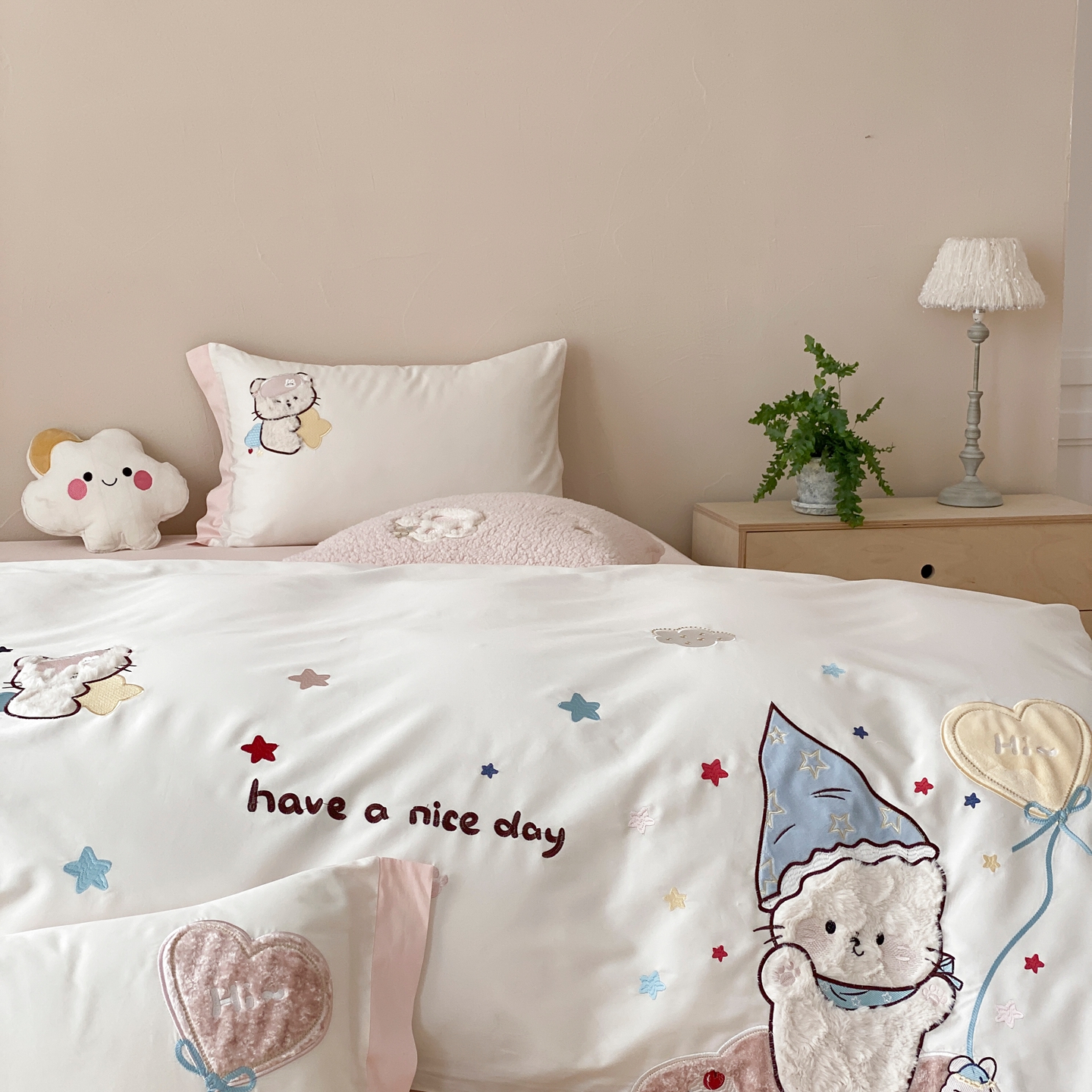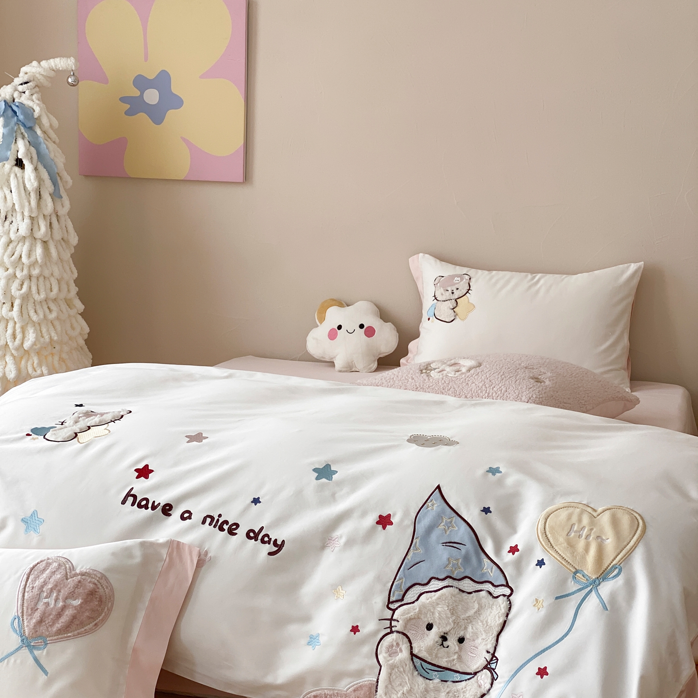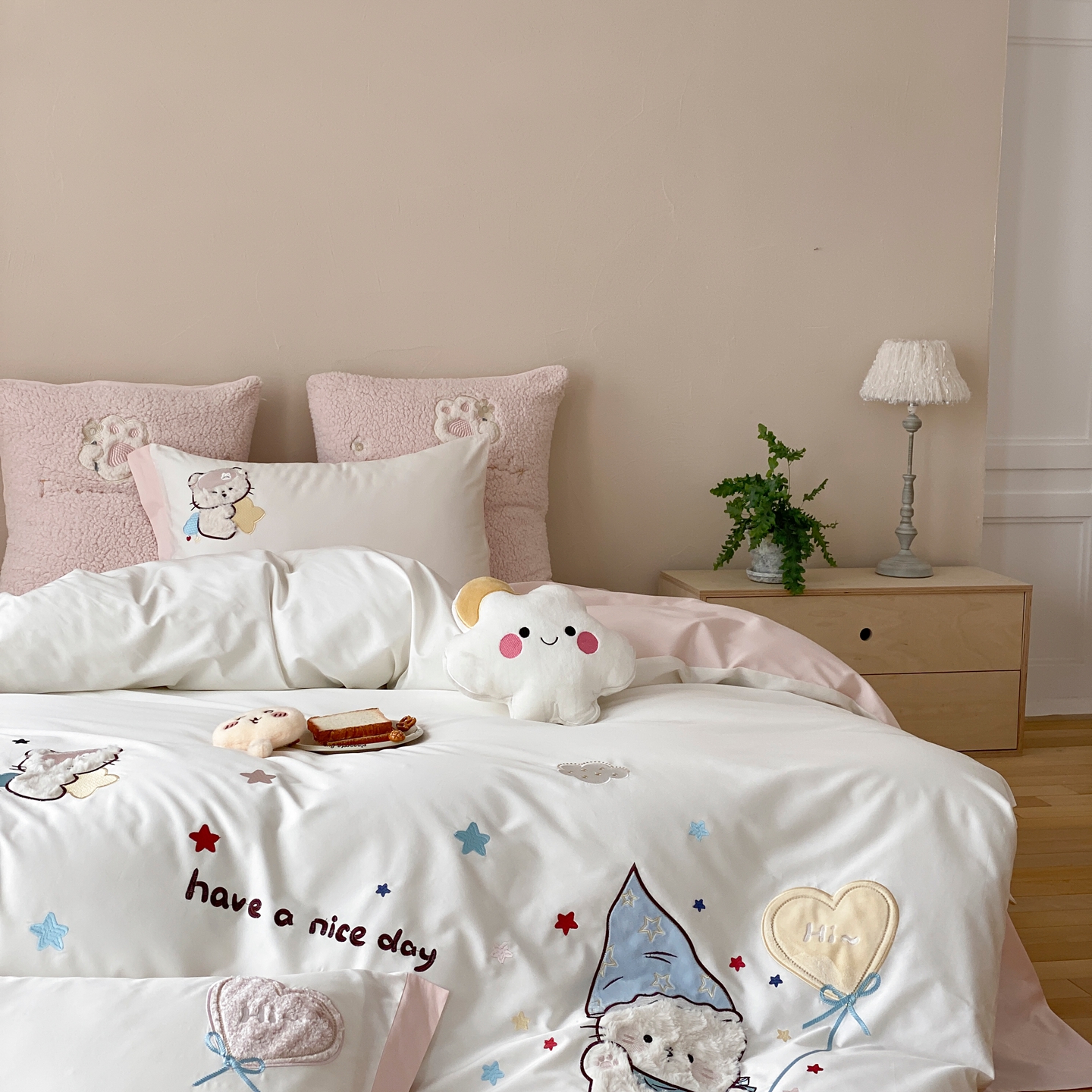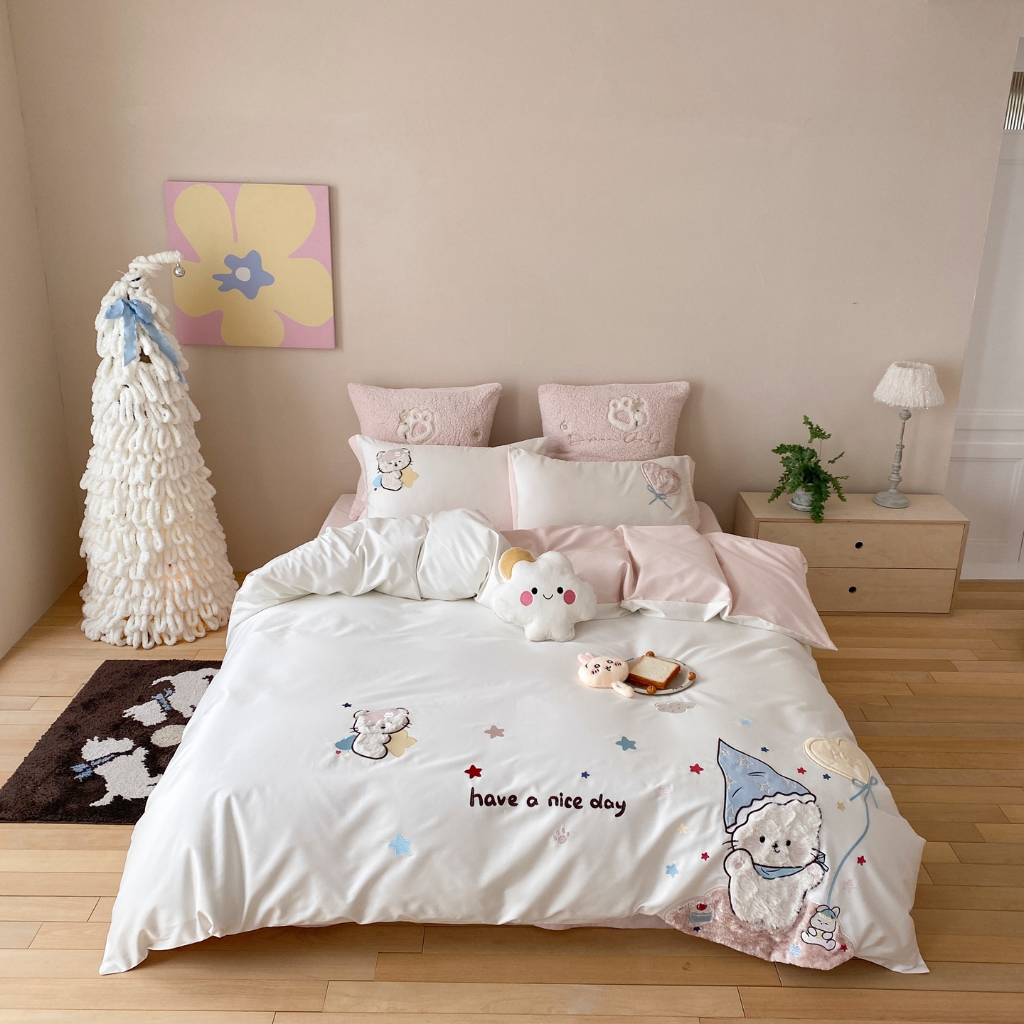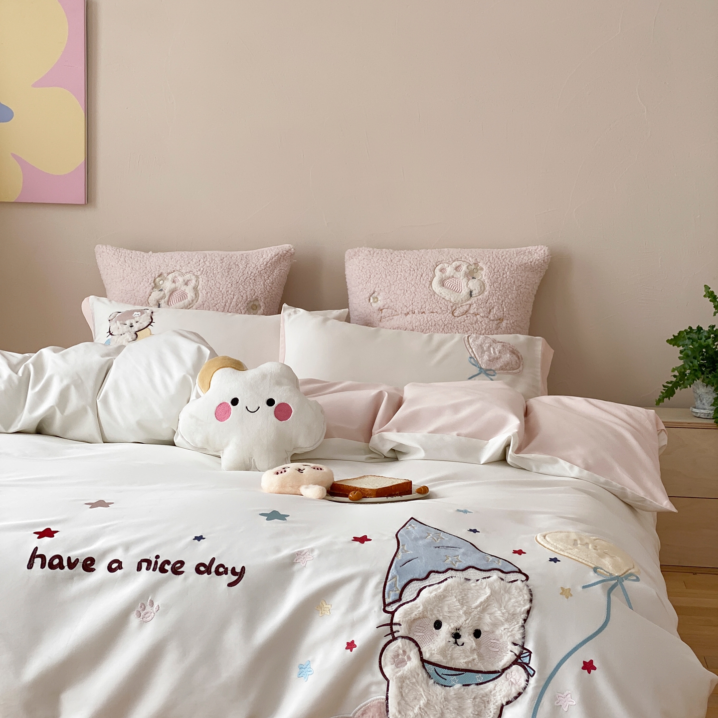 (总)星野 2026春夏新品100双股澳棉刺绣贴布绣四件套--喵满分