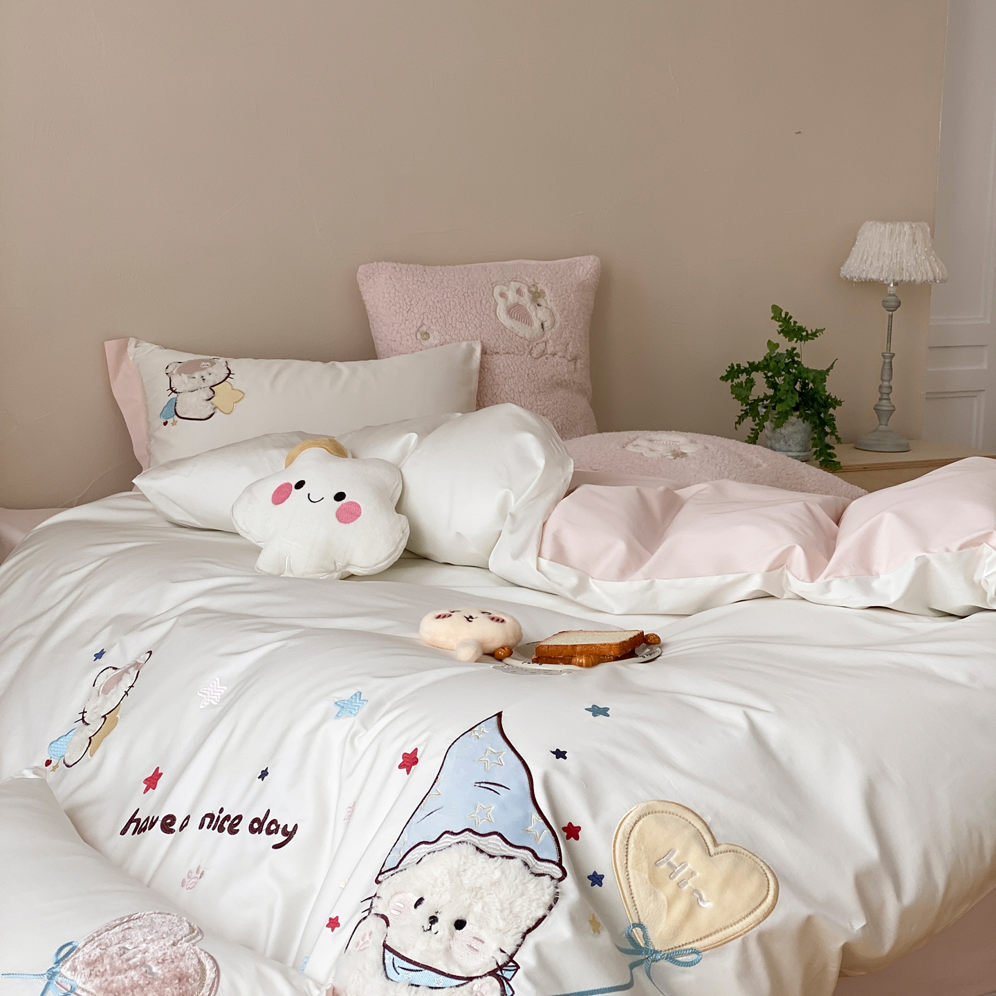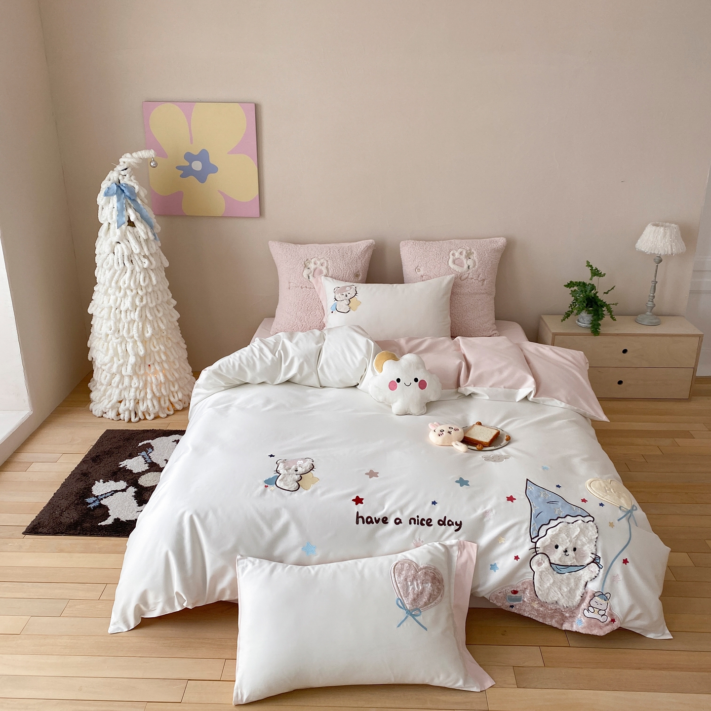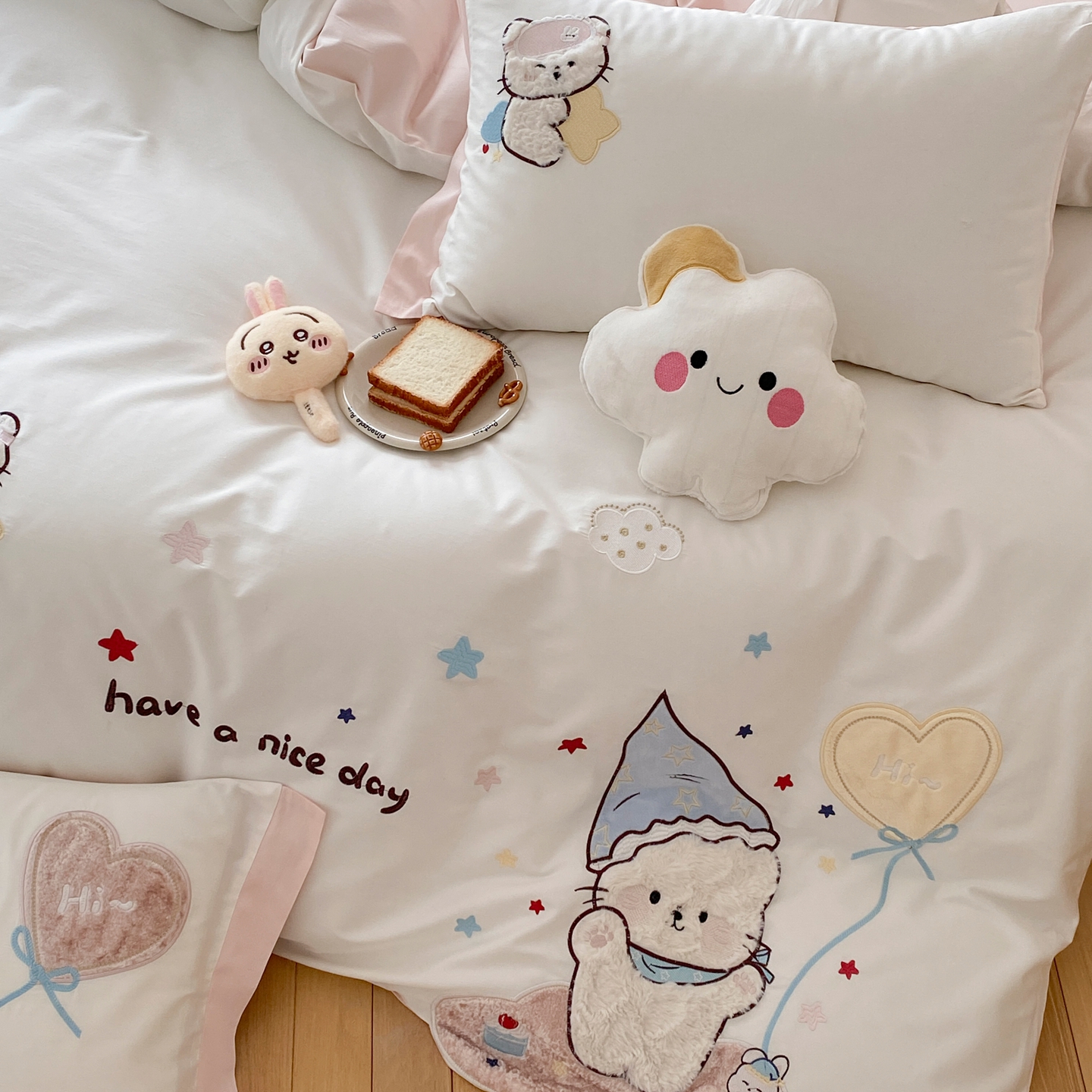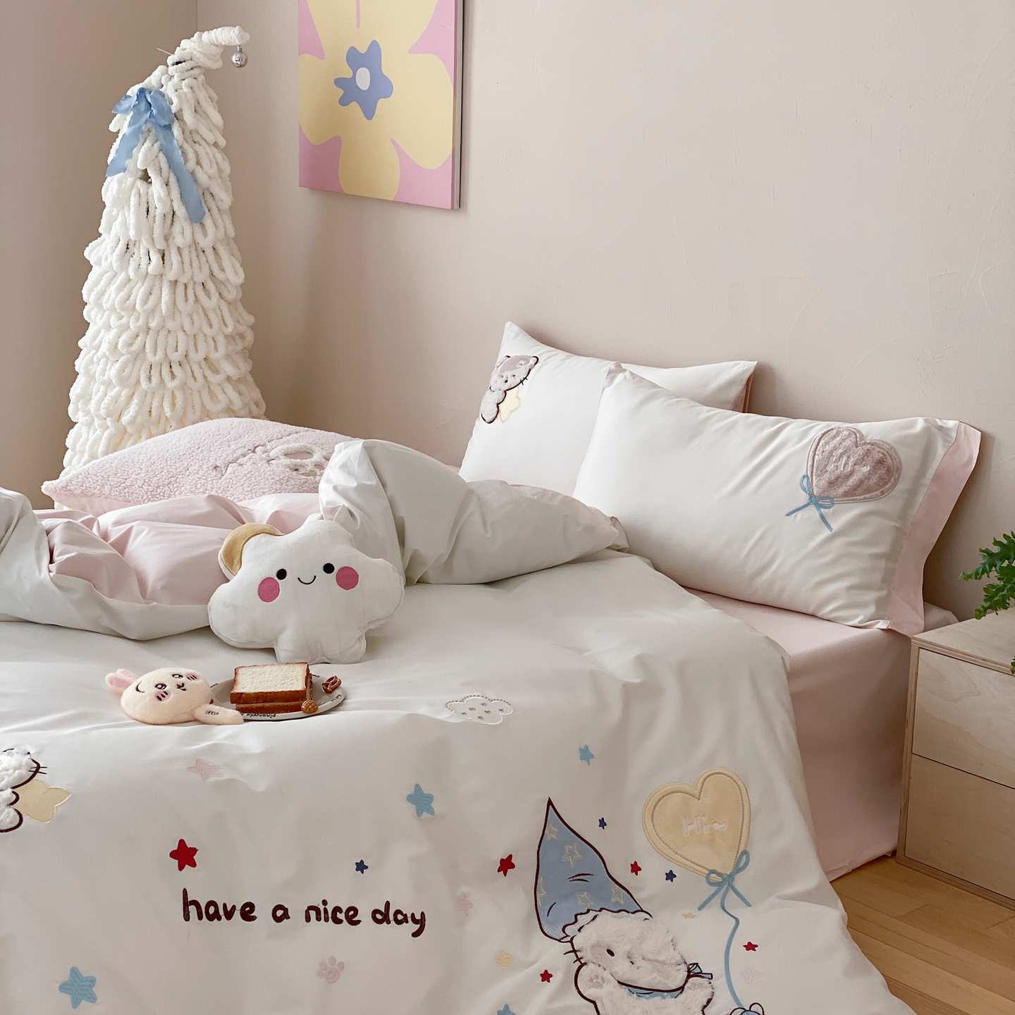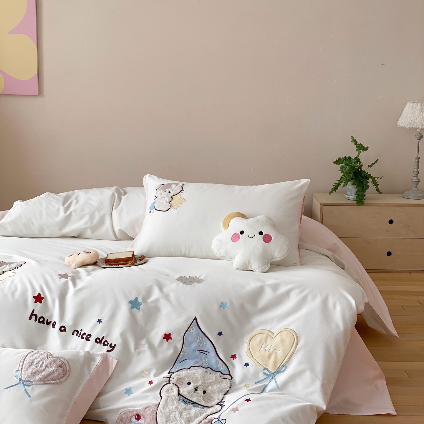 (总)星野 2026春夏新品100双股澳棉刺绣贴布绣四件套--喵满分