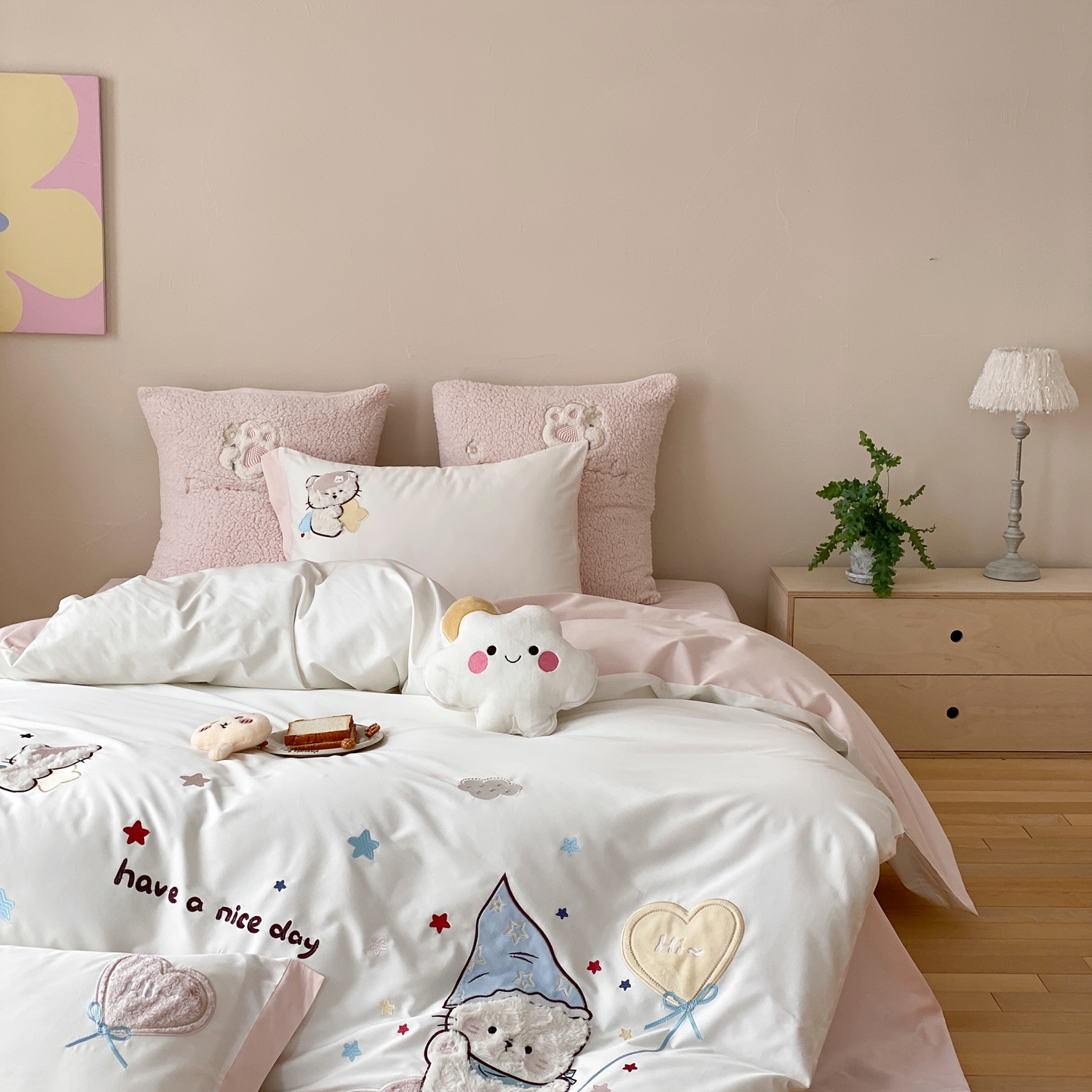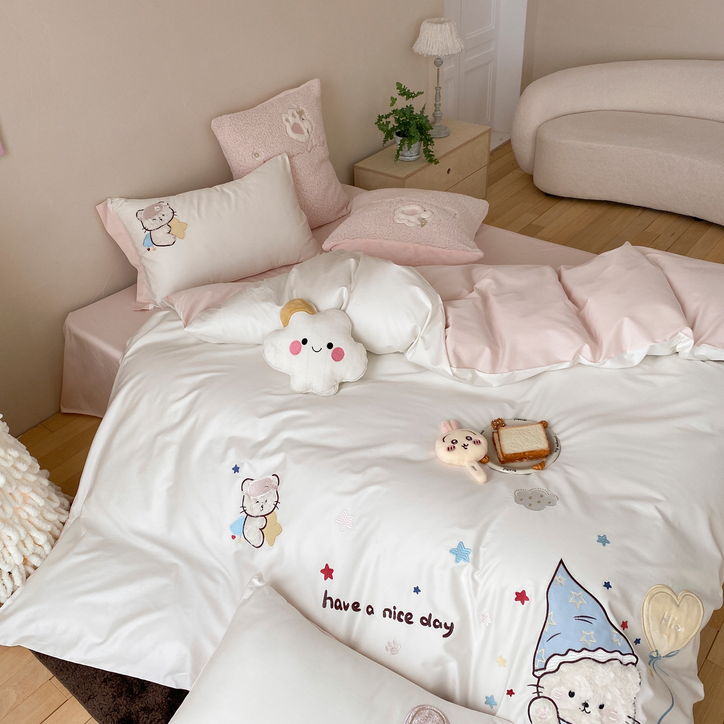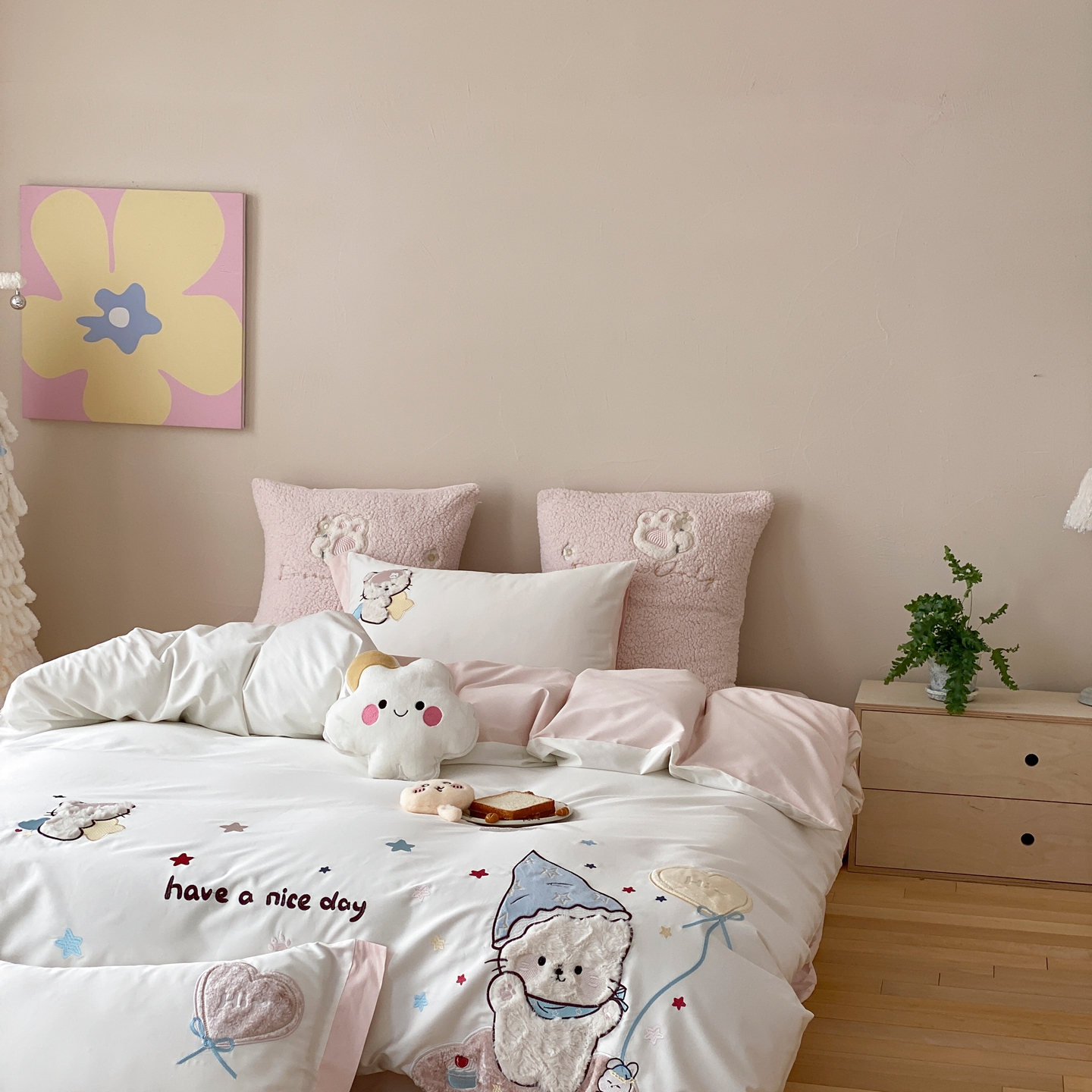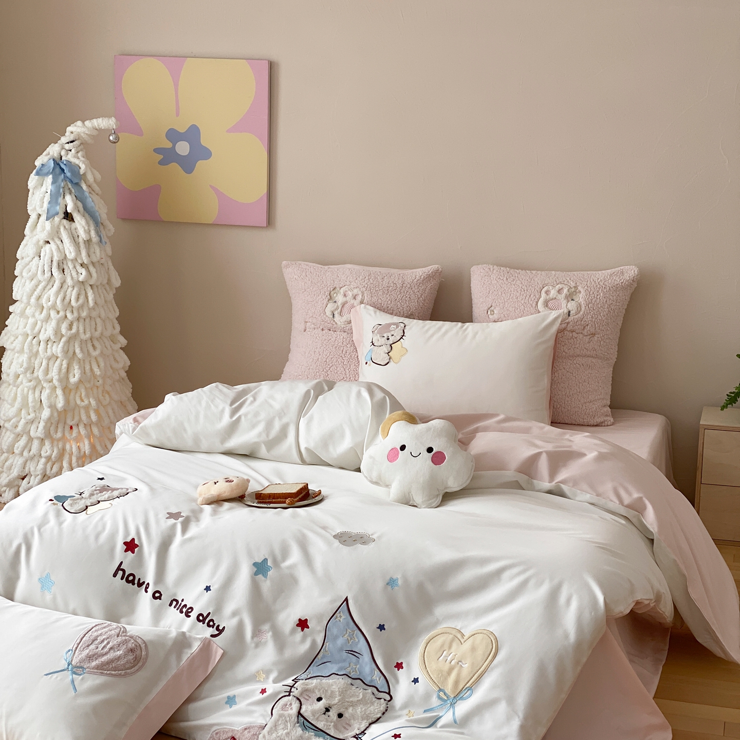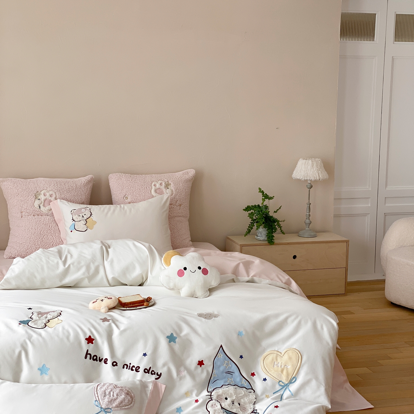 (总)星野 2026春夏新品100双股澳棉刺绣贴布绣四件套--喵满分