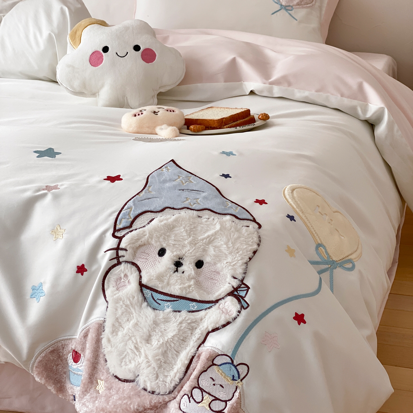 (总)星野 2026春夏新款100s双股澳棉纯棉刺绣四件套-第二波,波点萌犬,花间喵语,小鸭田园,逐梦星河