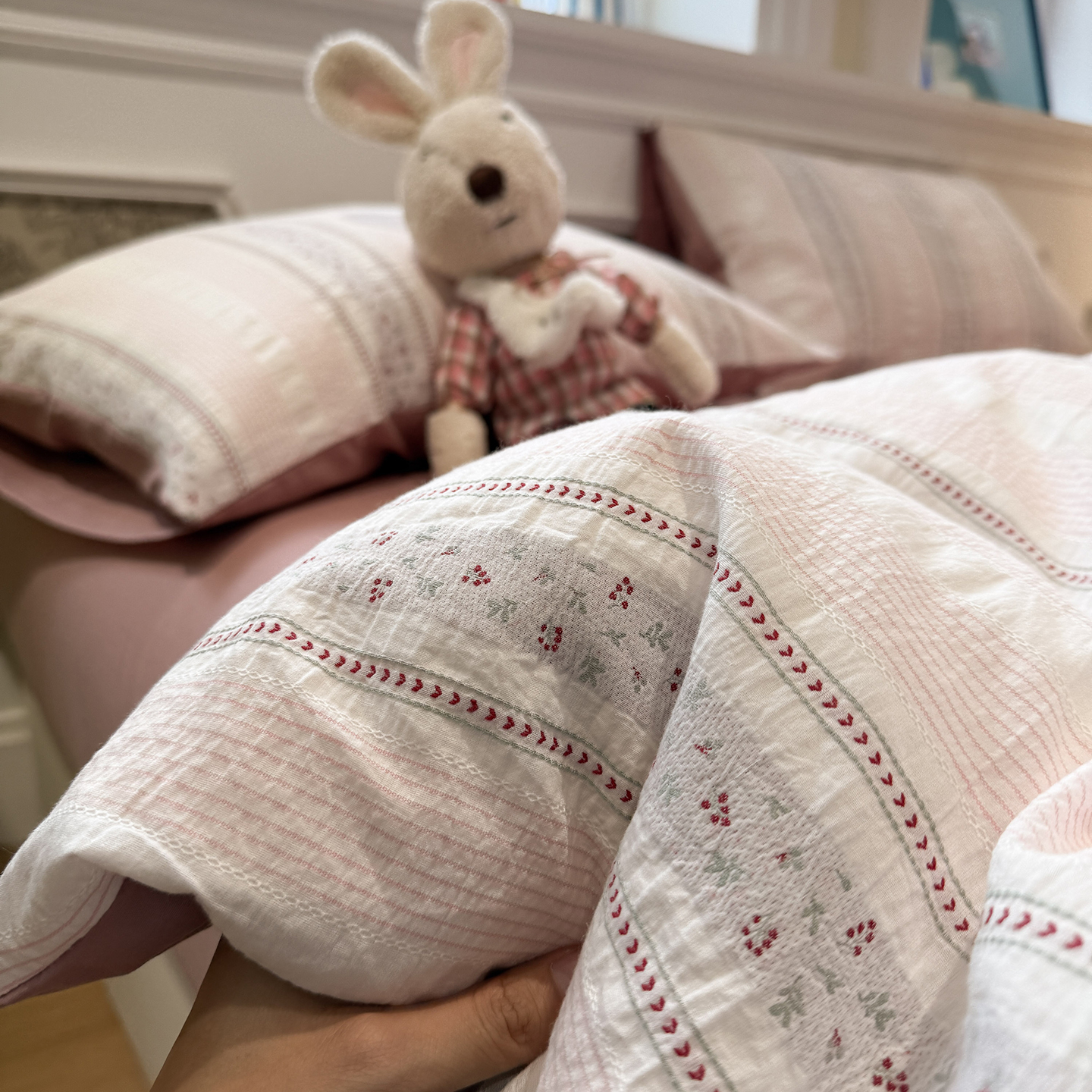 (总)2023新款40支纱全棉13070锁边工艺款四件套系列,格子爱心,嘉兰,咖条,朗尼,小兔兔,星星兔