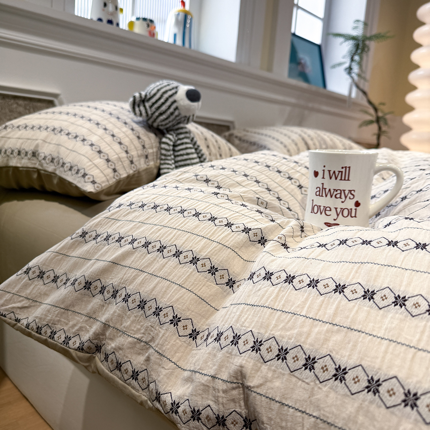 珺柔家纺 2026新款A版色织提花B版水洗棉四件套 星恋奶咖