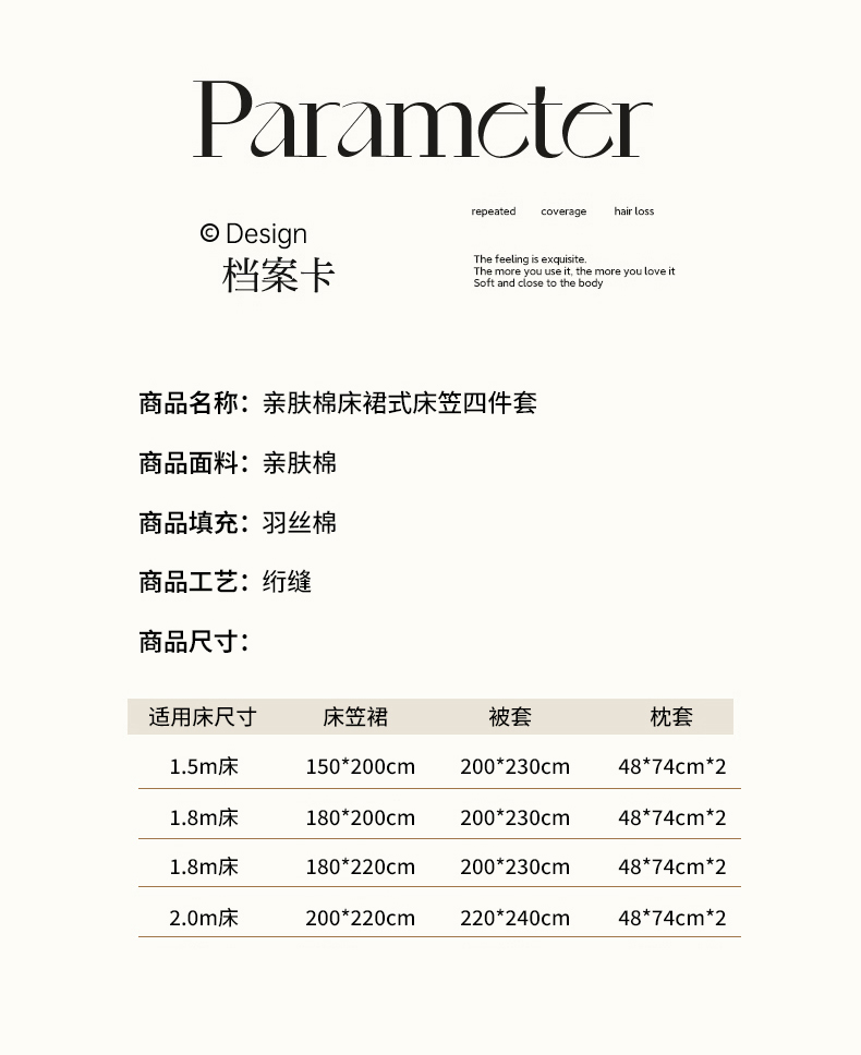 200*220cm床笠裙四件套 | ¥165.00 |