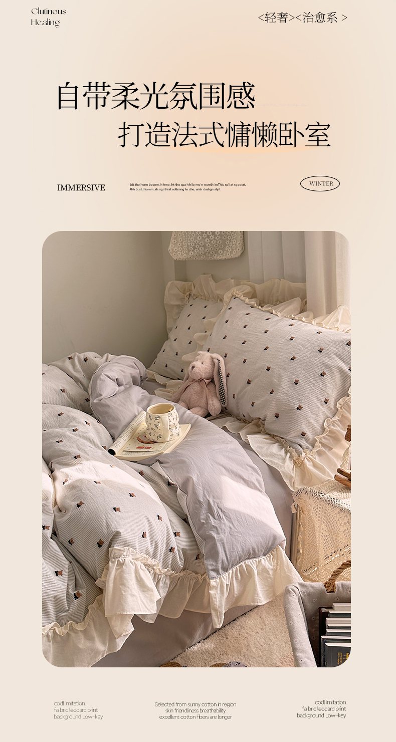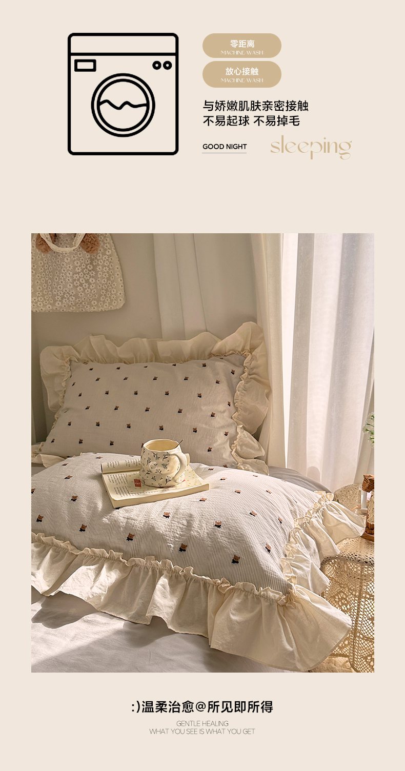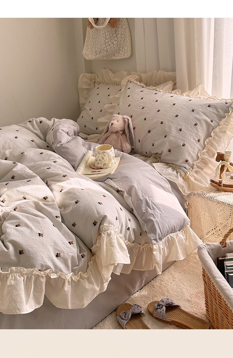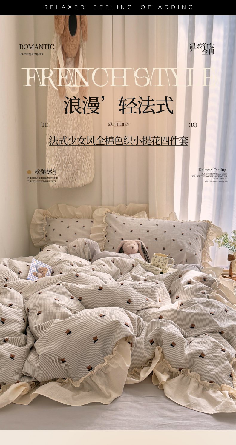当前位置: 91家纺网 > 商品网购 > 床品套件 > 四件套 > 全棉普通四件套 > 艾咪-Amy ntmy 2026新款法式花边全棉色织小提花四件套 花边款-围巾熊