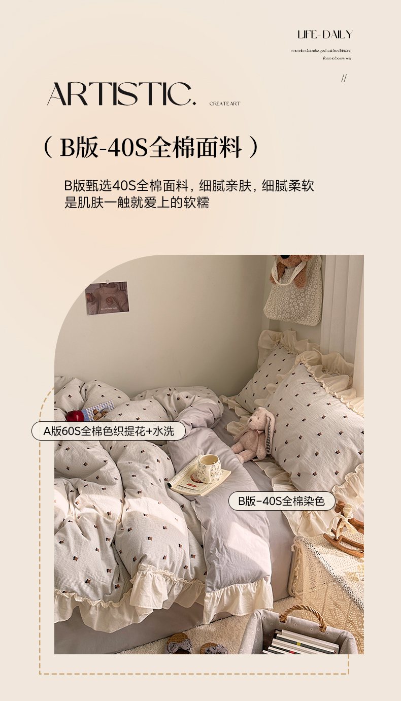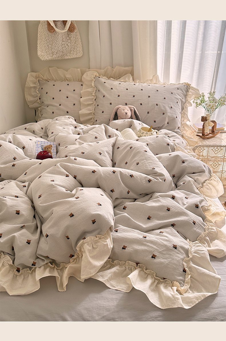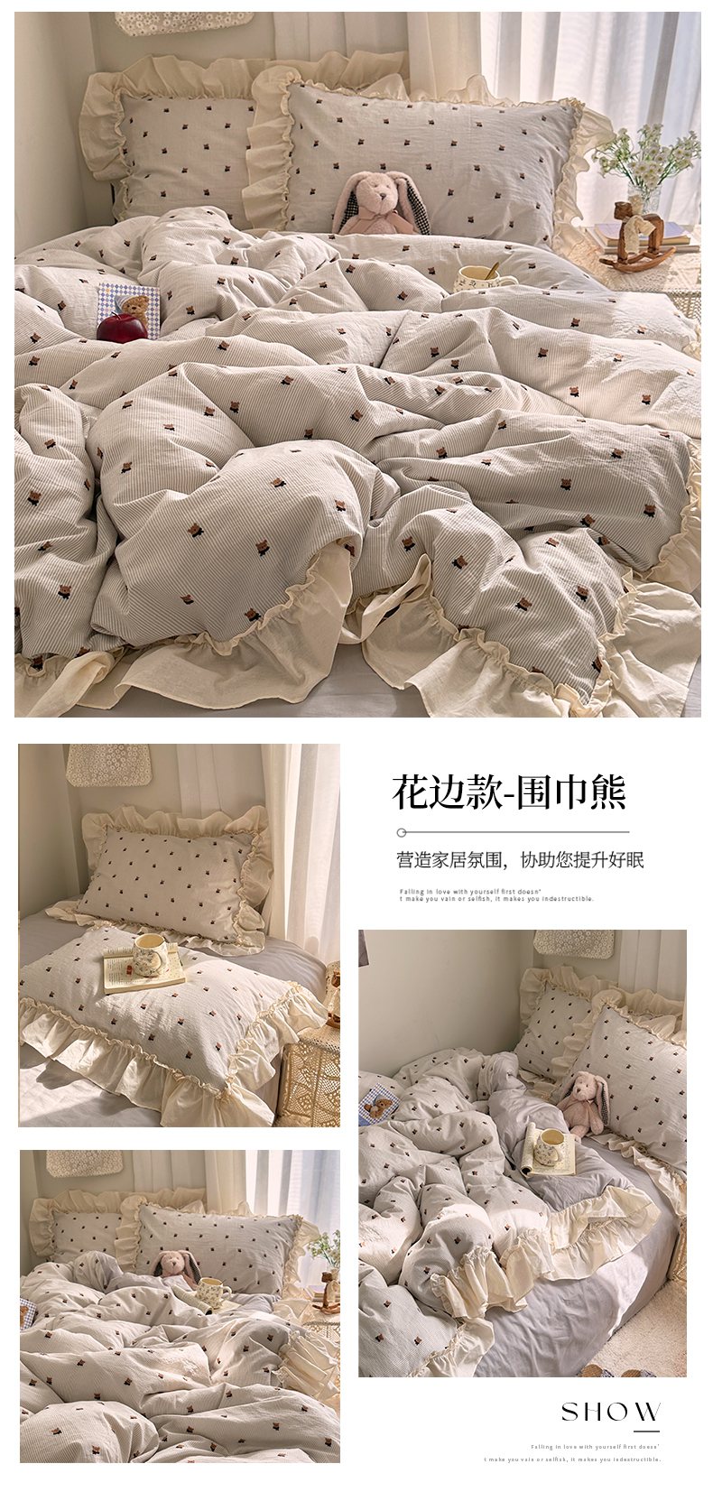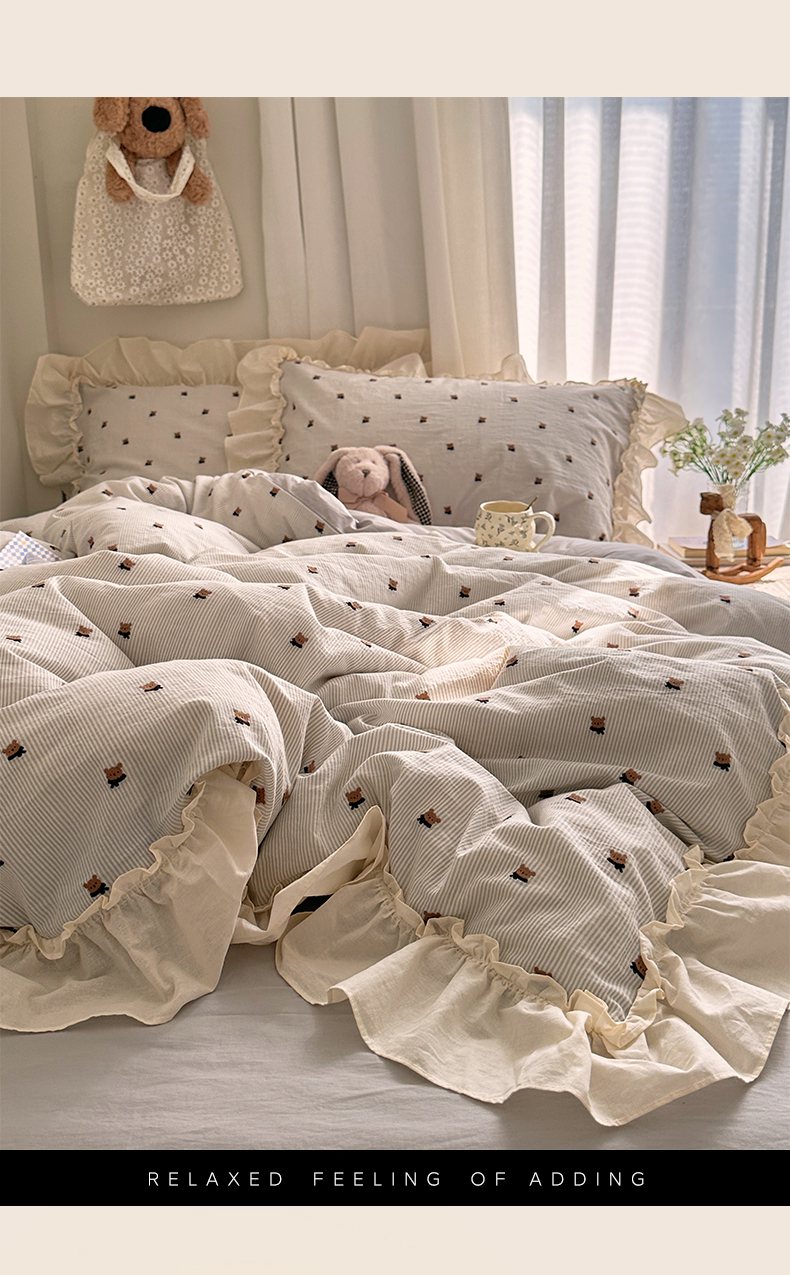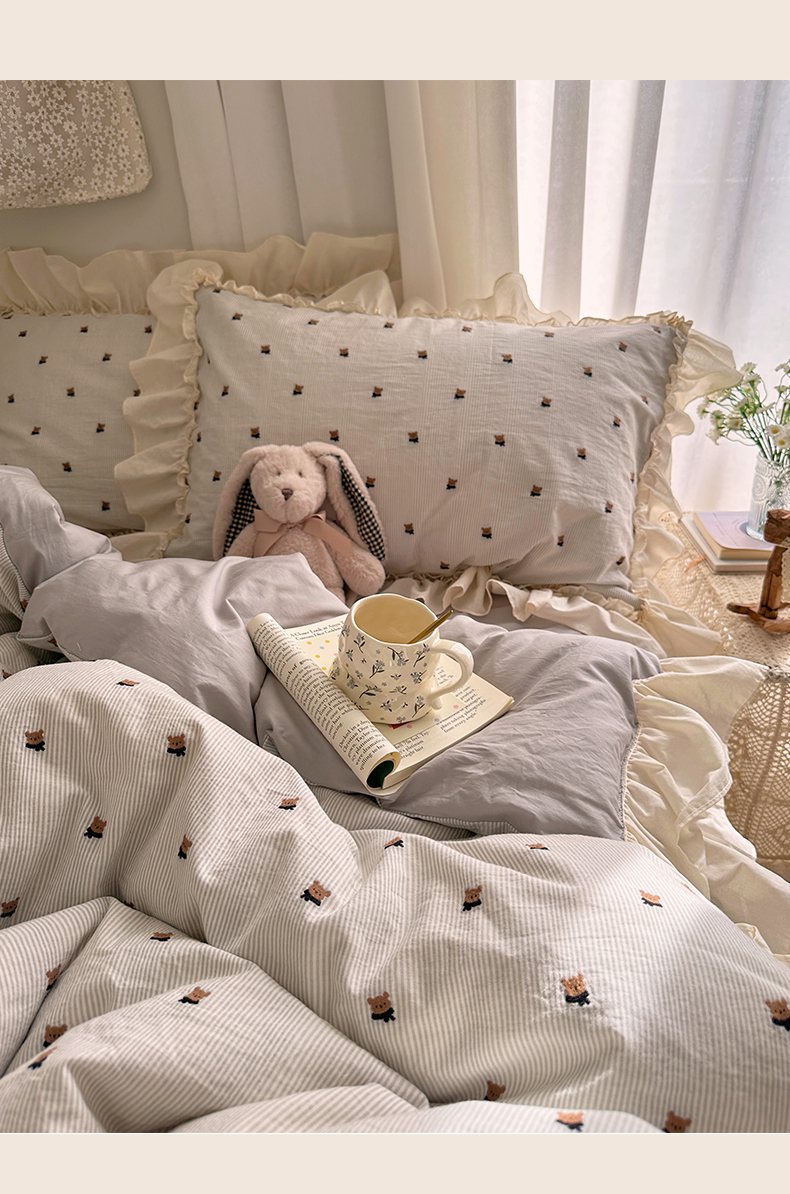 当前位置: 91家纺网 > 商品网购 > 床品套件 > 四件套 > 全棉普通四件套 > 艾咪-Amy ntmy 2026新款法式花边全棉色织小提花四件套 花边款-围巾熊