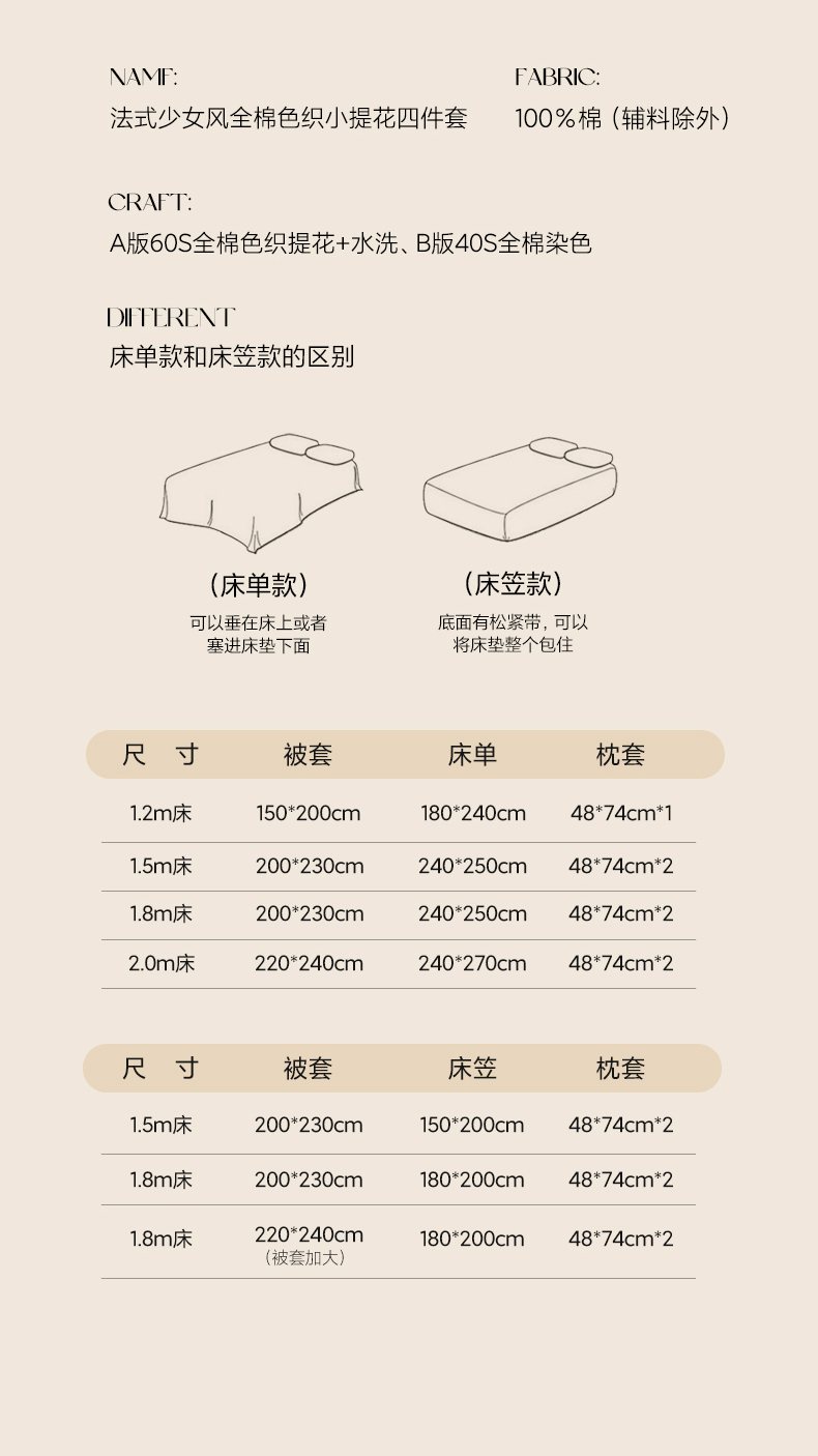 1.8m床笠款四件套 | ¥165.00 |