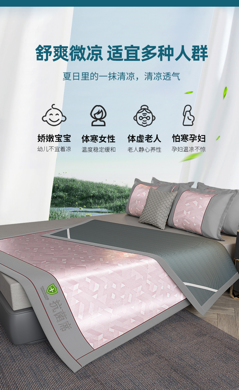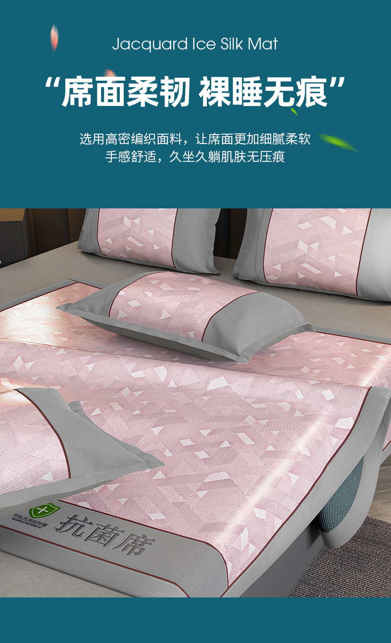 当前位置: 91家纺网 > 商品网购 > 床上用品 > 凉席 > 凉席套件 > 小牛席业 2026新款A加厚款-可机洗抗菌提花冰丝席 抗菌席-魔幻方格-粉色