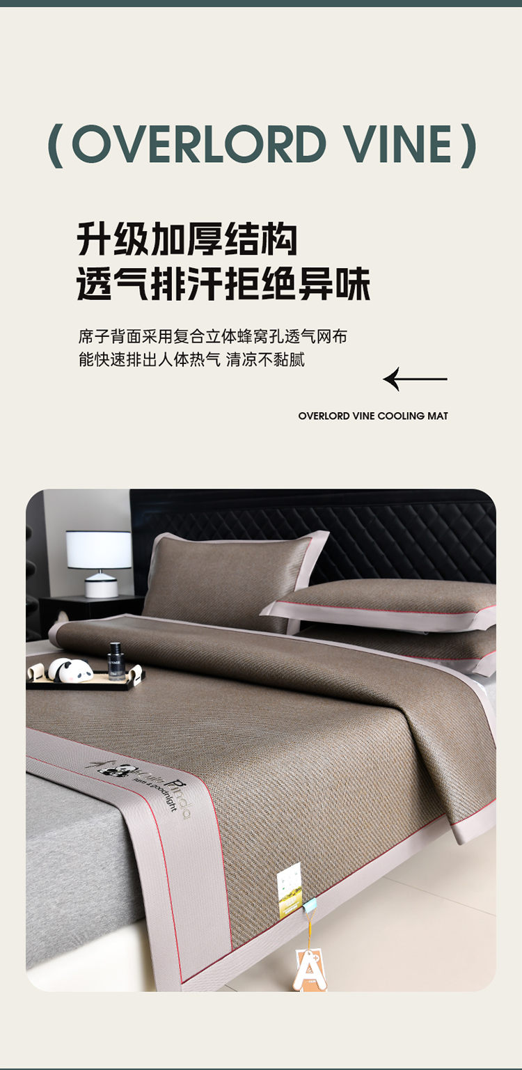 商品名称:小牛席业 2026新款3D刺绣印尼藤-熊猫刺绣款(10斤加厚) 红棕