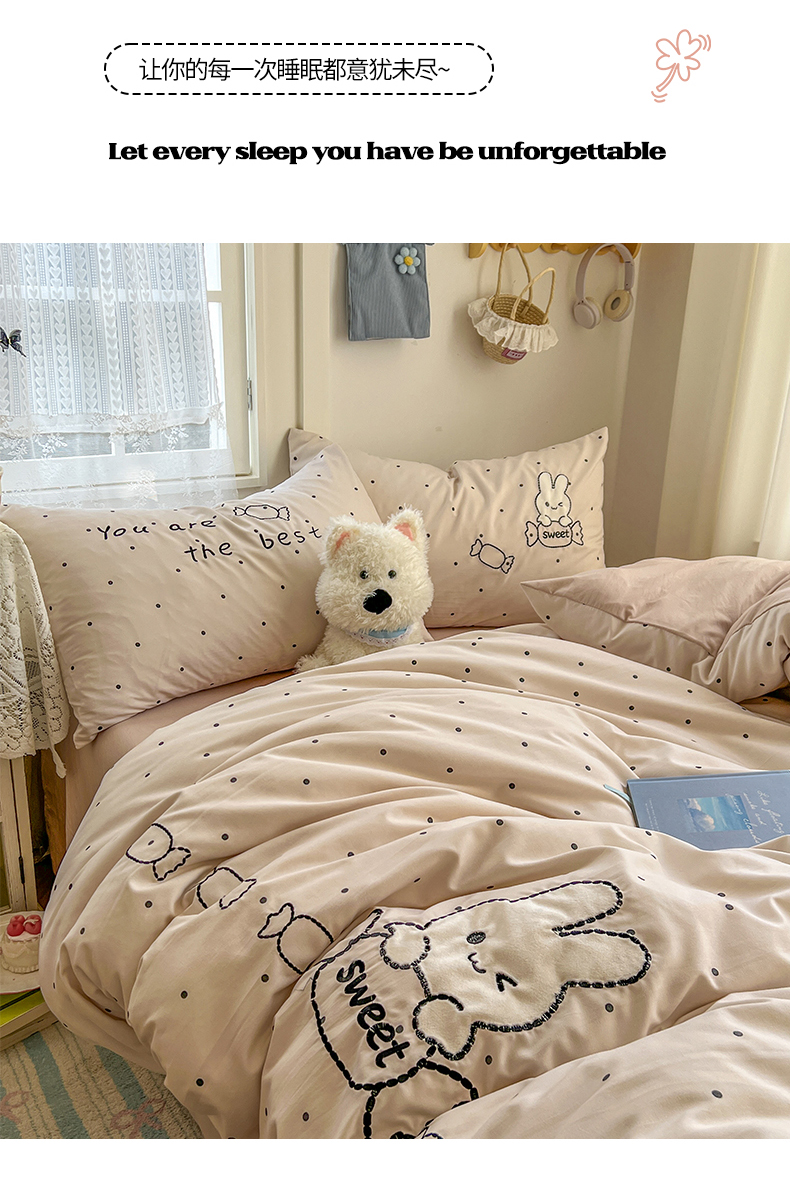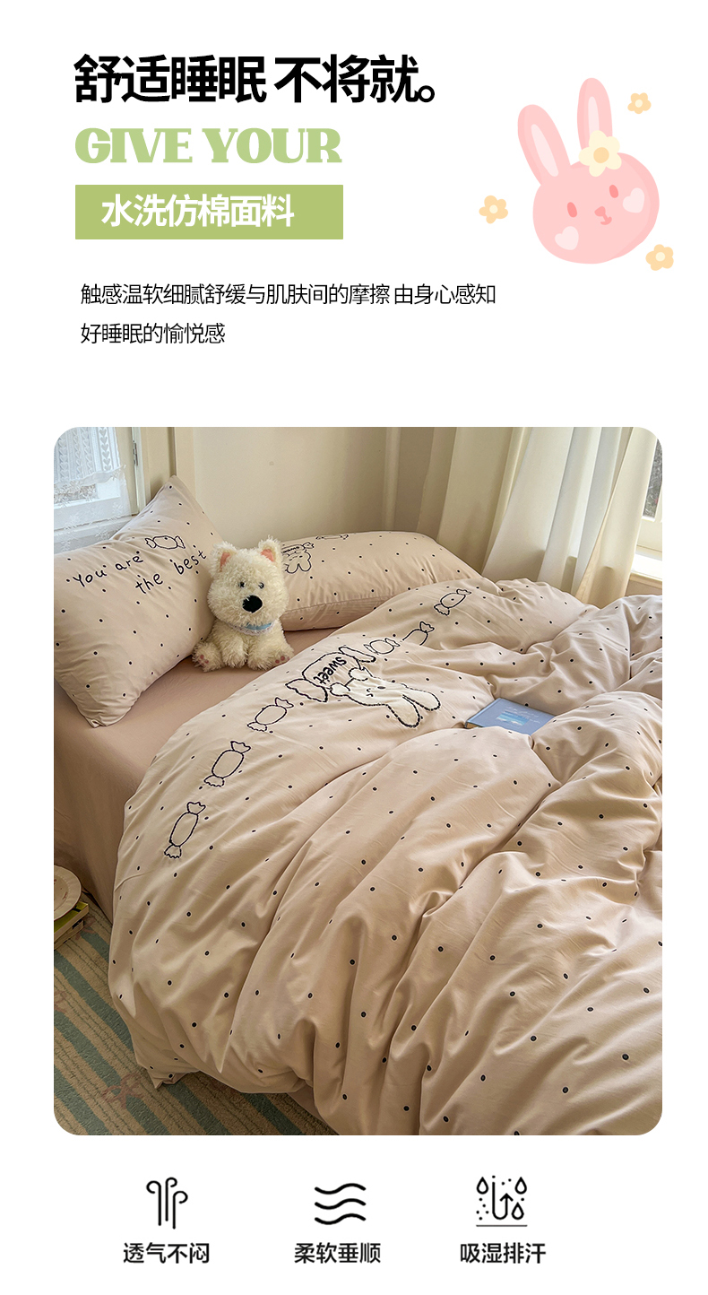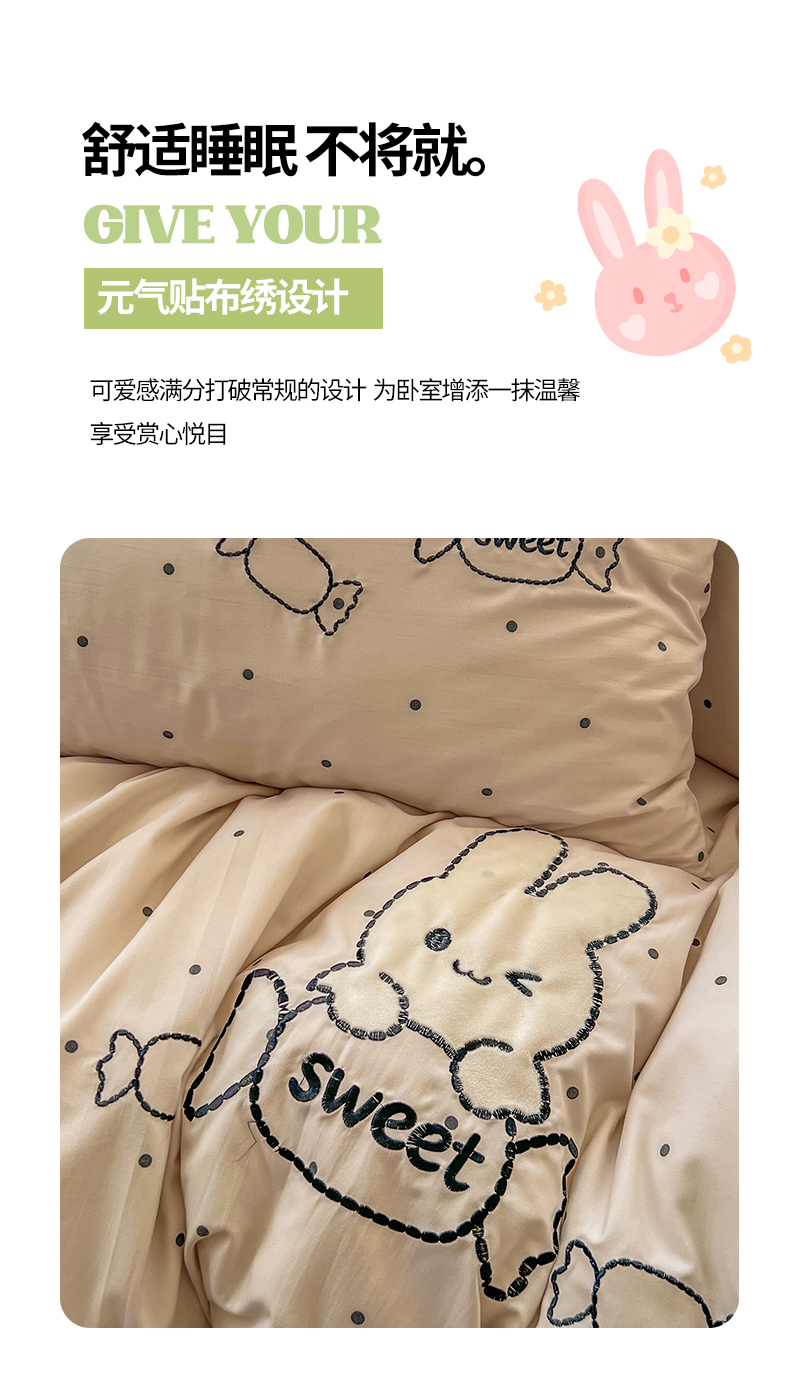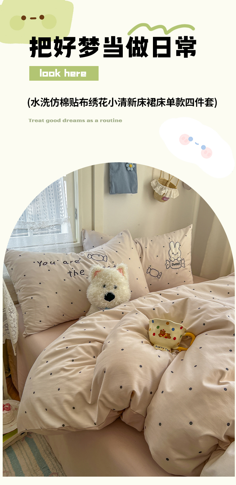 当前位置: 91家纺网 > 商品网购 > 床品套件 > 四件套 > 水洗棉四件套 > 贝凯瑞 2026新款仿棉木棉水洗棉绣花ins小清新床裙床单款四件套-糖果兔系列 糖果兔-奶杏色