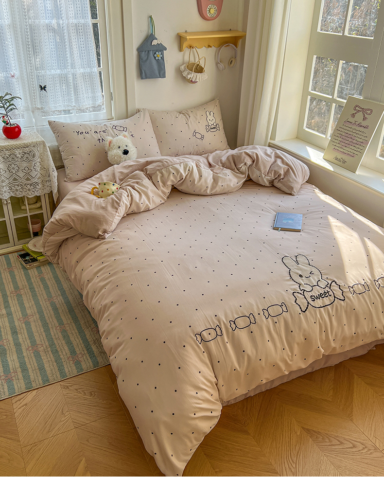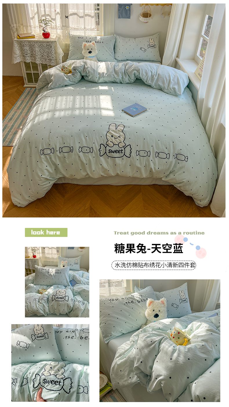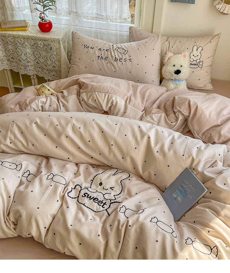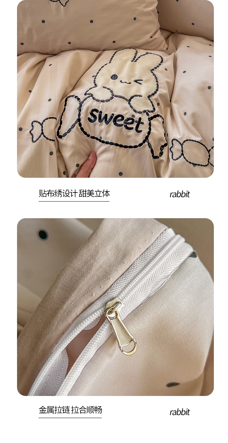 当前位置: 91家纺网 > 商品网购 > 床品套件 > 四件套 > 水洗棉四件套 > 贝凯瑞 2026新款仿棉木棉水洗棉绣花ins小清新床裙床单款四件套-糖果兔系列 糖果兔-奶杏色