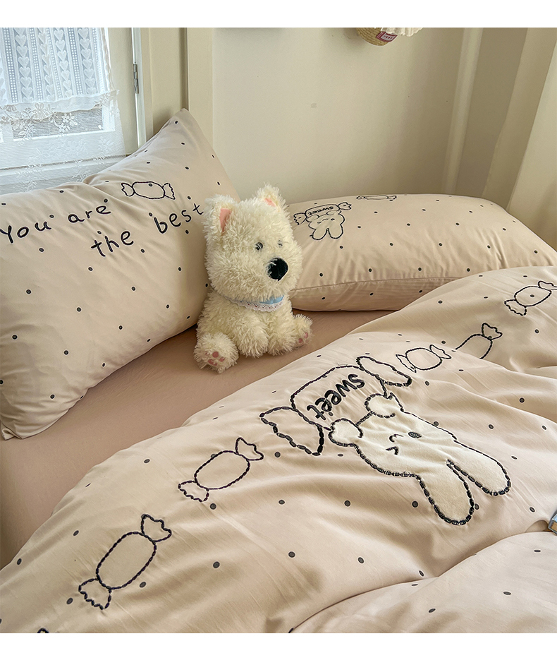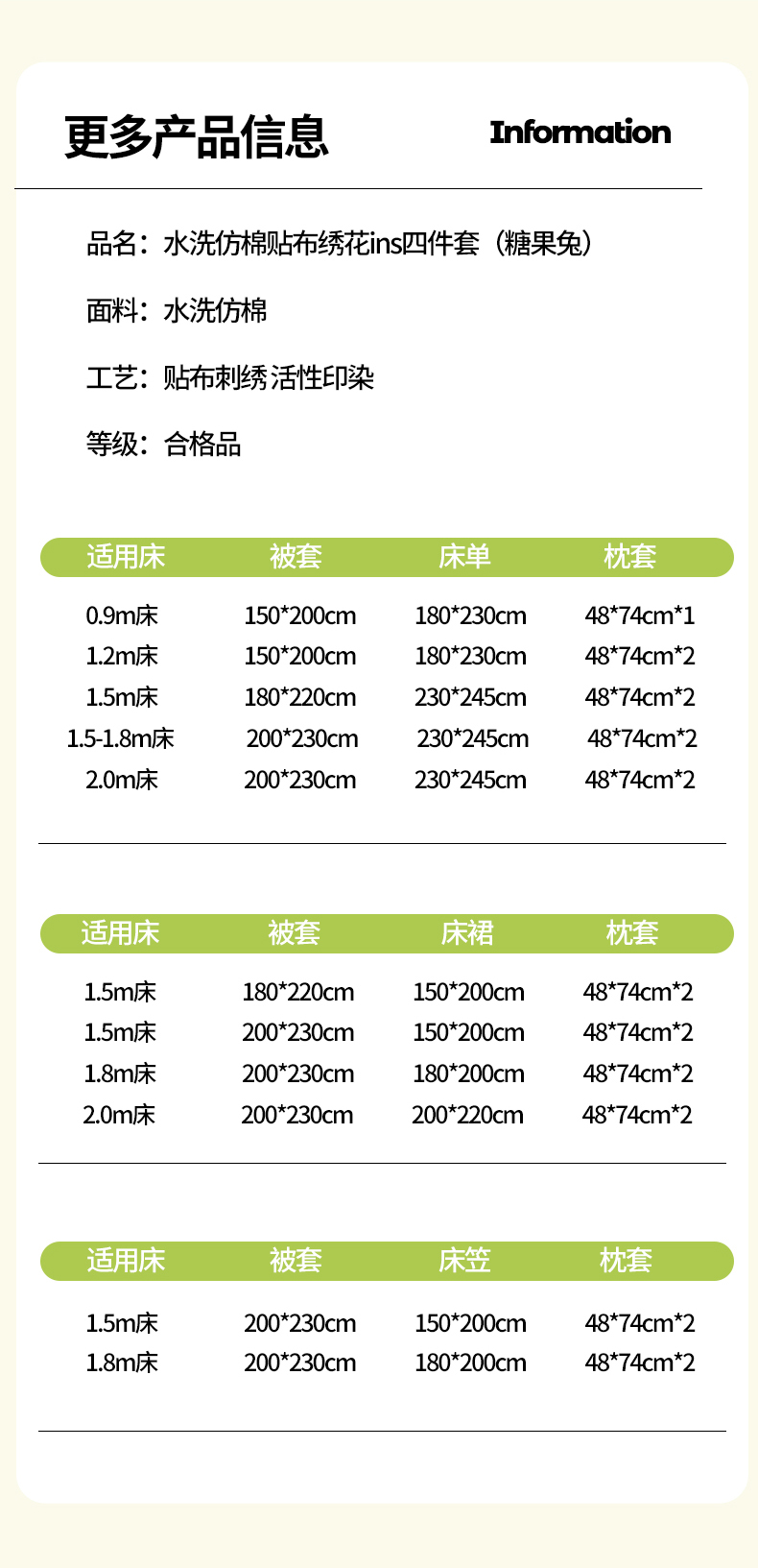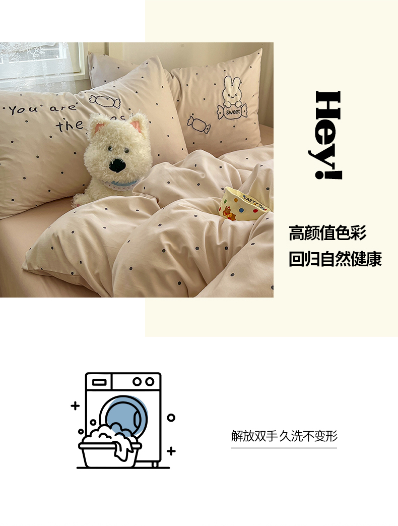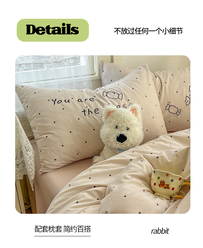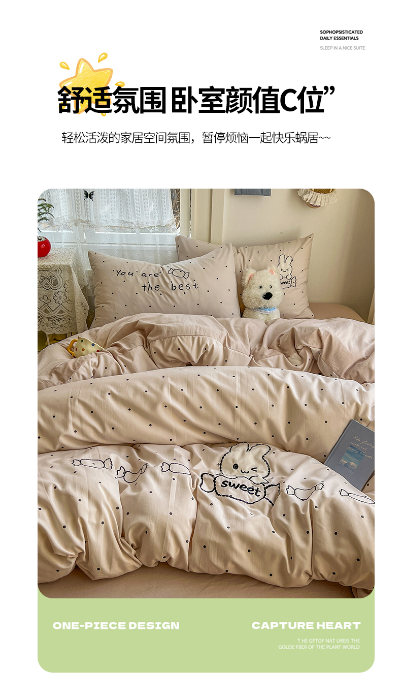 当前位置: 91家纺网 > 商品网购 > 床品套件 > 四件套 > 水洗棉四件套 > 贝凯瑞 2026新款仿棉木棉水洗棉绣花ins小清新床裙床单款四件套-糖果兔系列 糖果兔-奶杏色