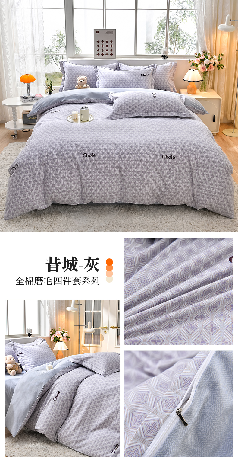当前位置: 91家纺网 > 商品网购 > 床品套件 > 四件套 > 普通磨毛四件套 > 董成龙 2026新款直播爆款加厚全棉活性磨毛四件套纯棉三件套 昔城-灰