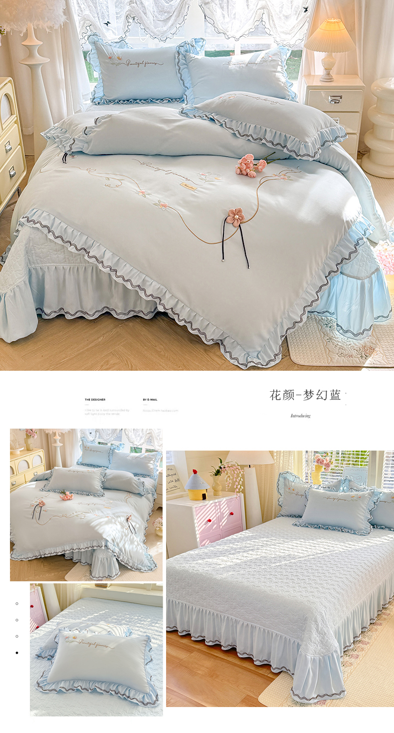 (总)漫布云 2026新款230g高克重韩版立体盘花牛奶蚕丝绒绣花四件套床裙款被套-洛丽塔系列,洛丽塔-嫩黄 ,洛丽塔-香芋紫,洛丽塔-珍珠粉, 洛丽塔-婴儿蓝