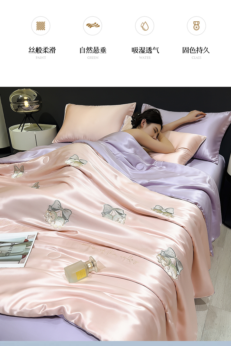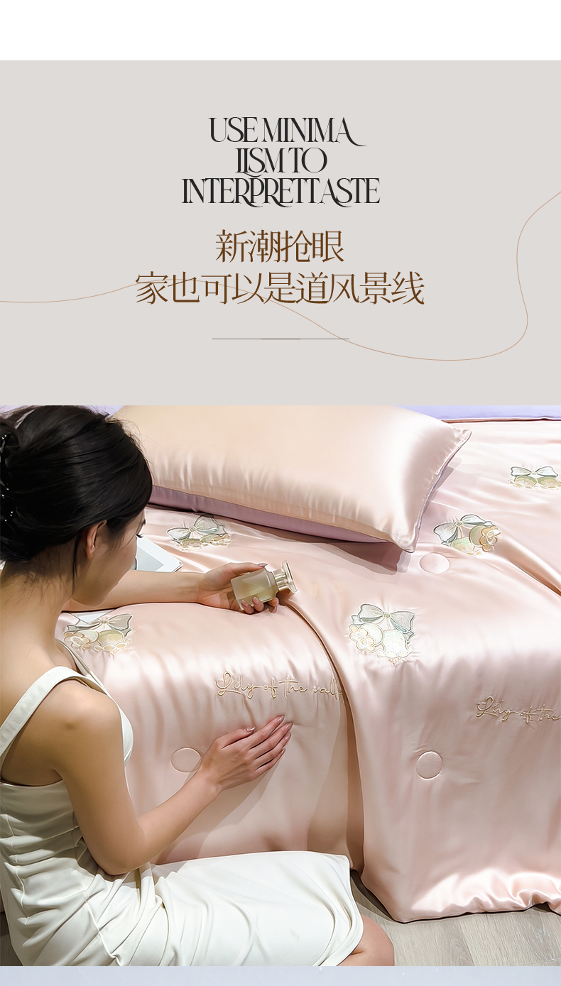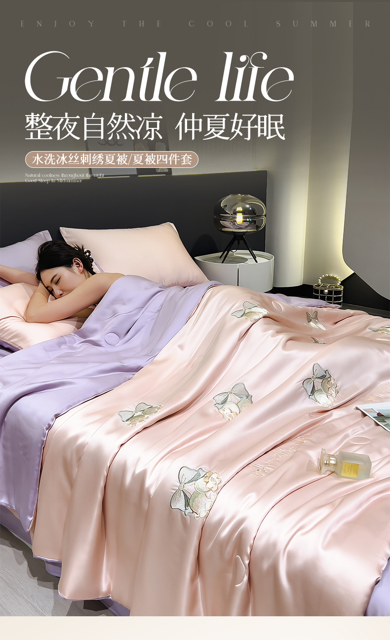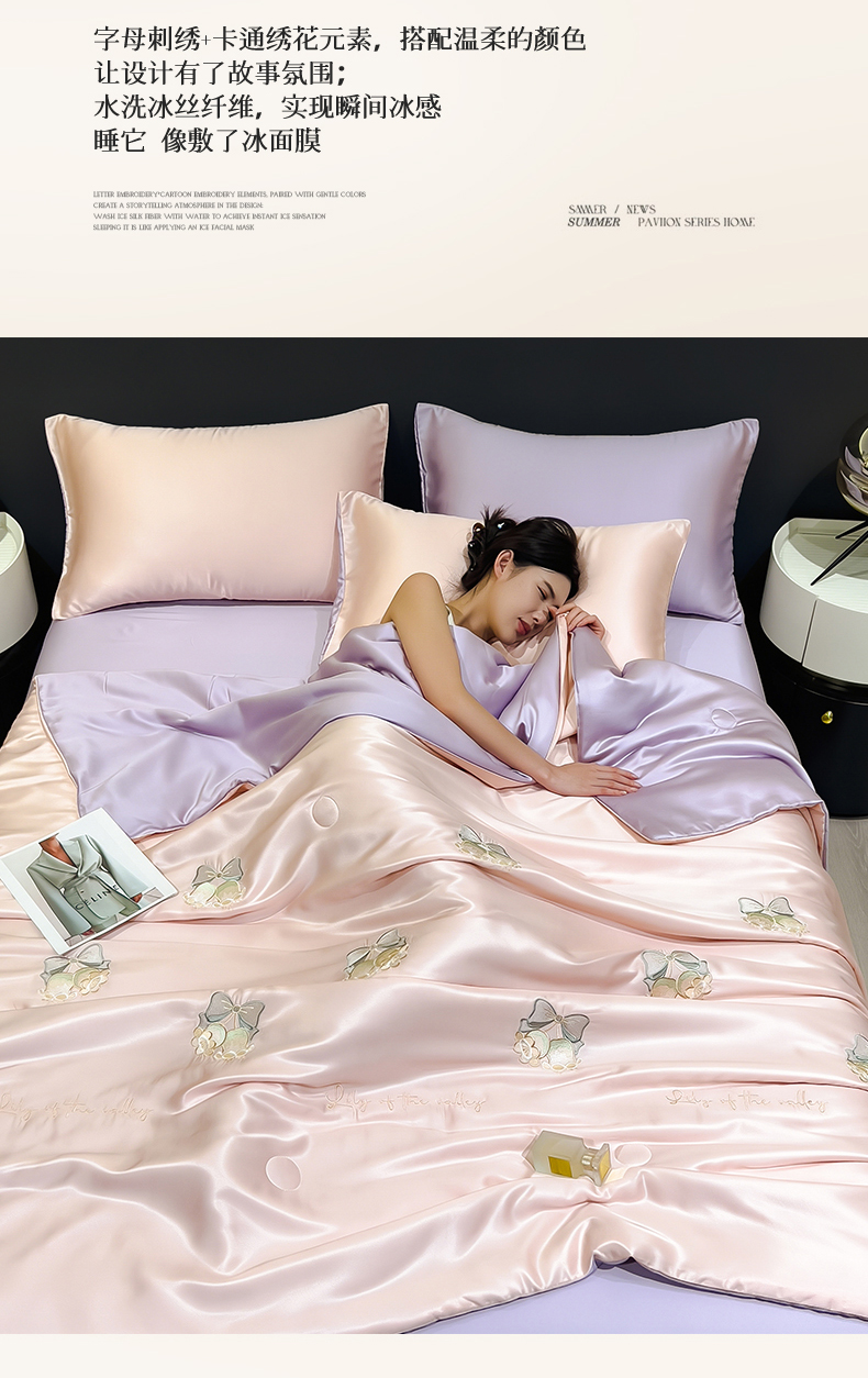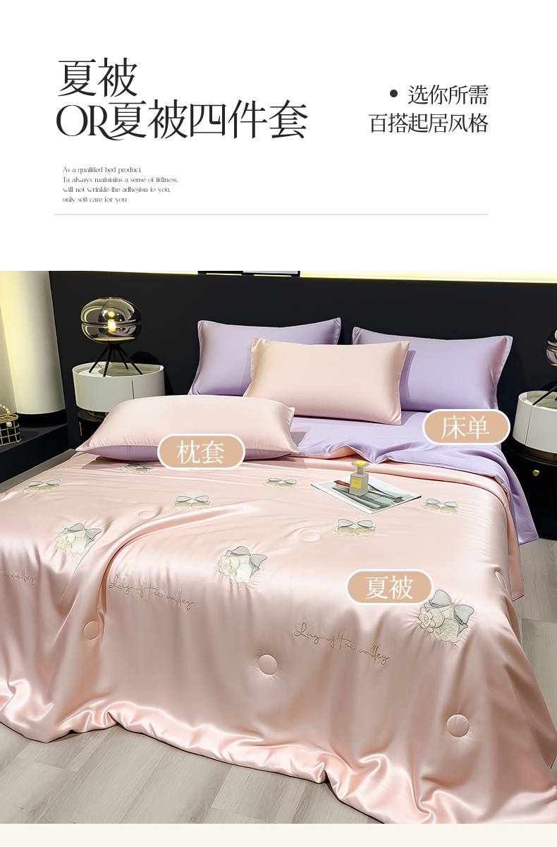 • 91家纺网 家纺一手货源 找家纺 兄弟坊 2026新款水洗冰丝刺绣夏被夏凉被夏被四件套 铃铛花序