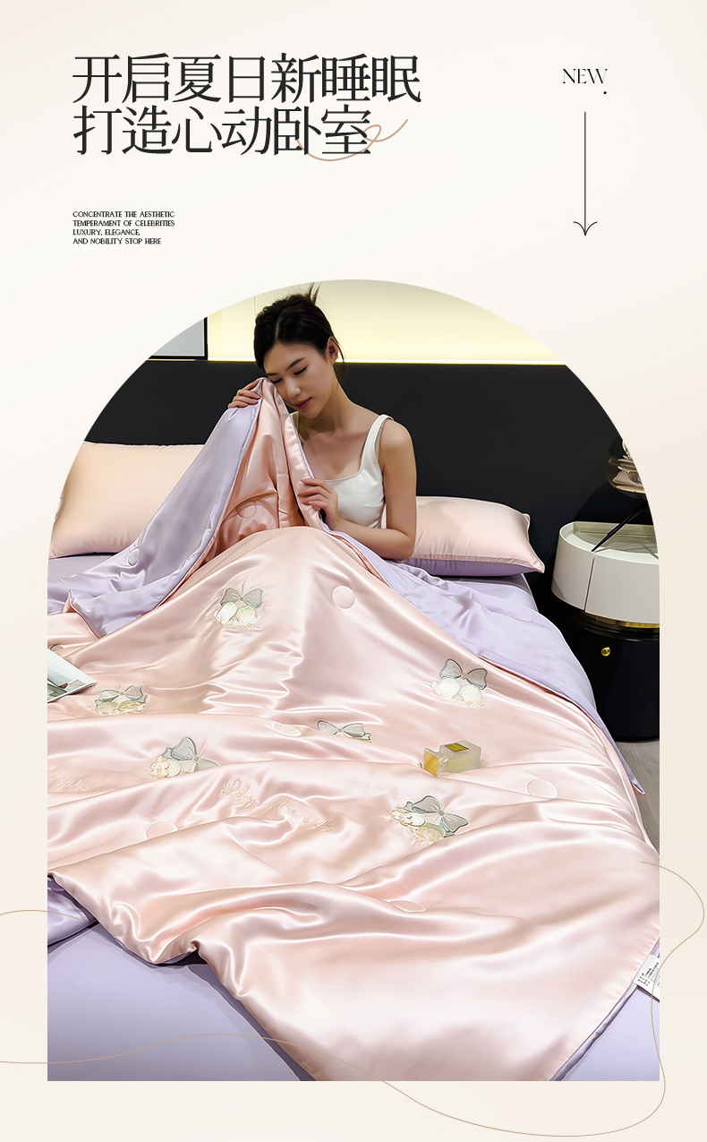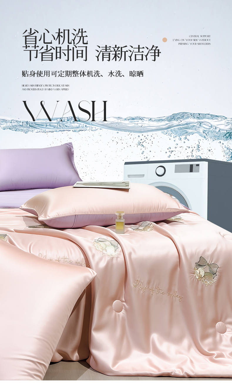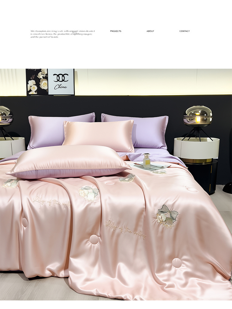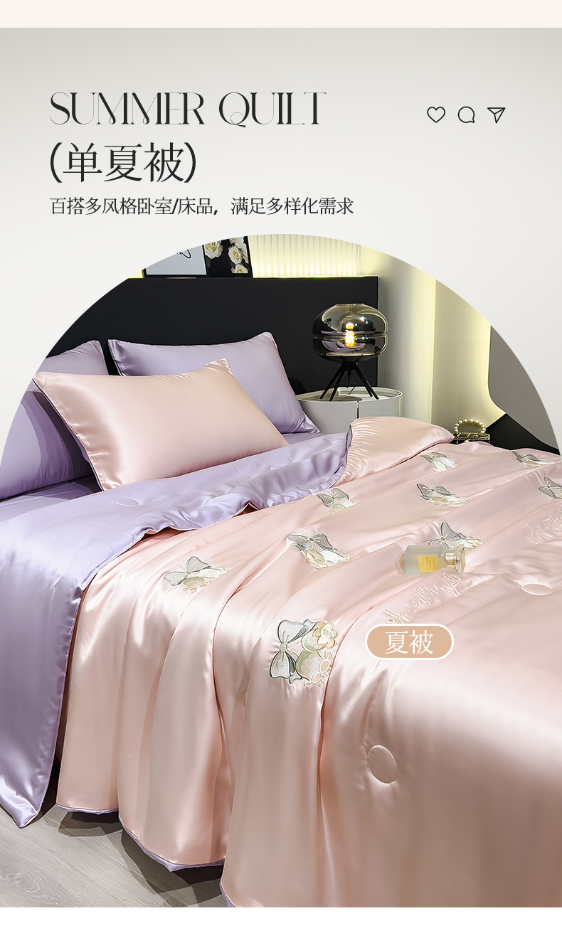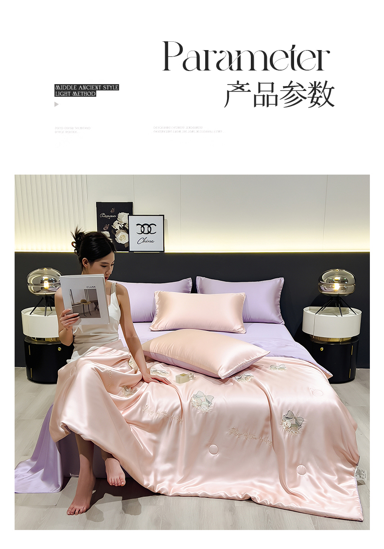 • 91家纺网 家纺一手货源 找家纺 兄弟坊 2026新款水洗冰丝刺绣夏被夏凉被夏被四件套 铃铛花序