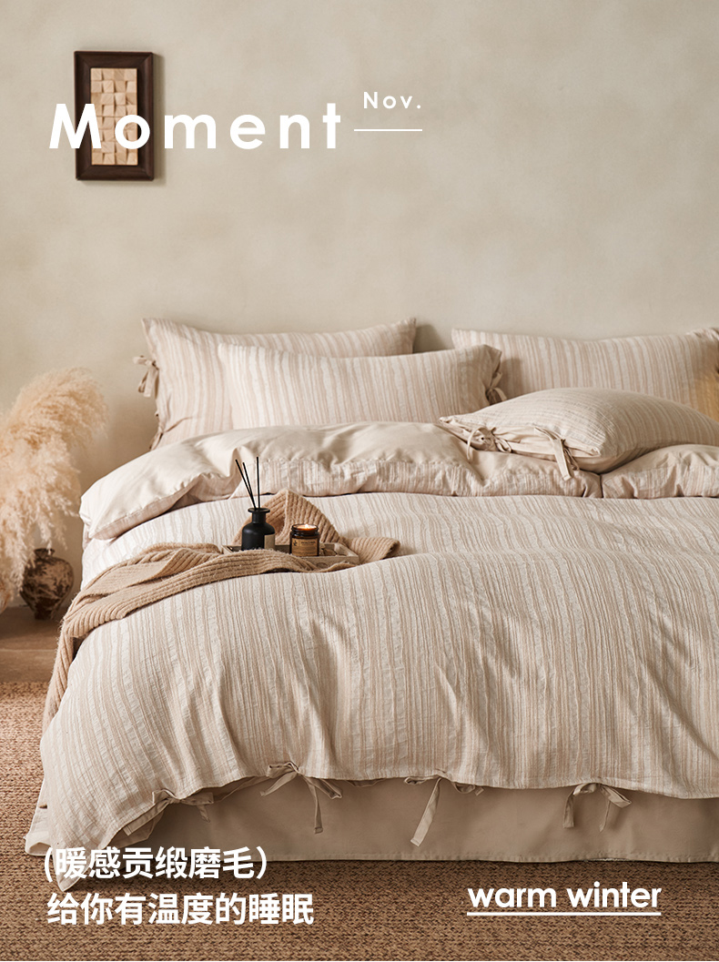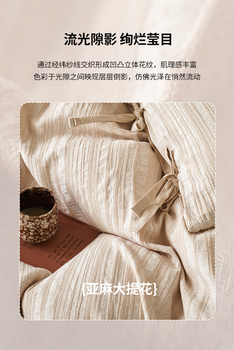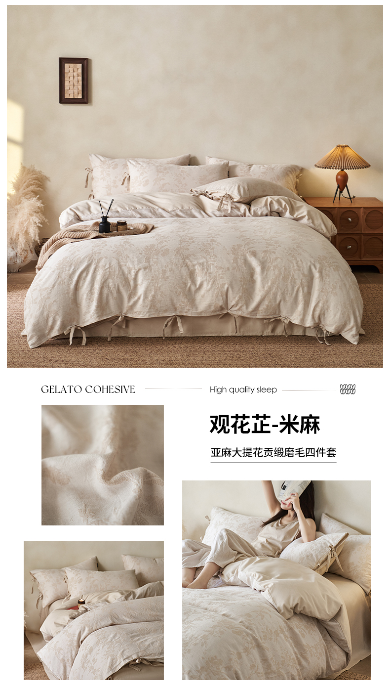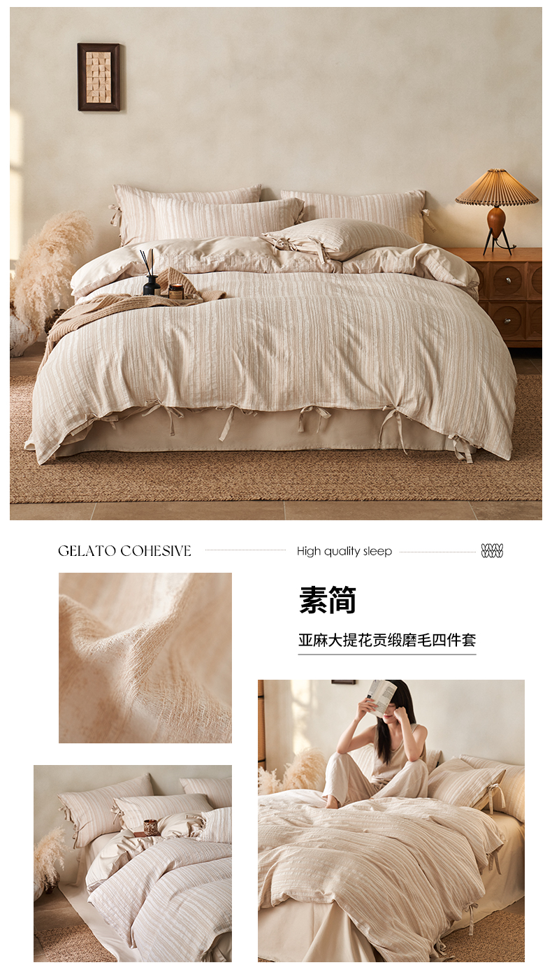 当前位置: 91家纺网 > 商品网购 > 床品套件 > 四件套 > 其它四件套 > 宜代光年 2026新款亚麻大提花贡缎磨毛四件套系列 素简