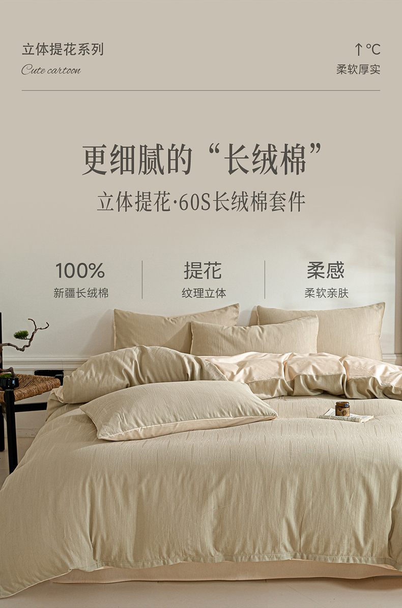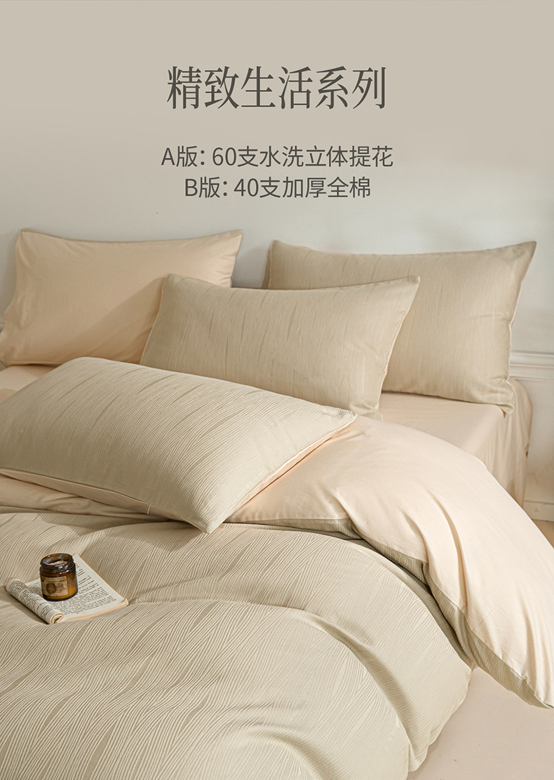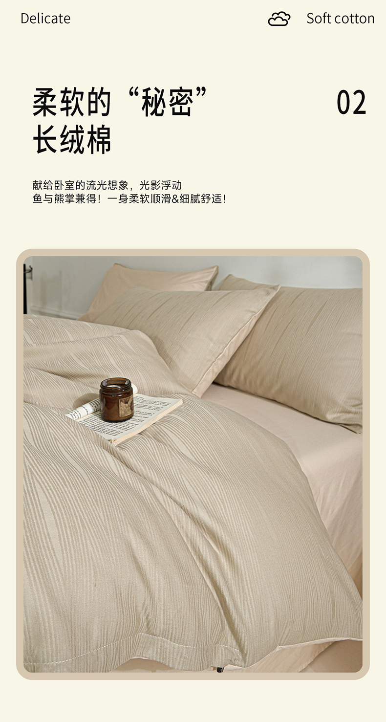 当前位置: 91家纺网 > 商品网购 > 床品套件 > 四件套 > 全棉普通四件套 > 眠博士 2026春夏新款60s全棉纯棉水洗立体提花四件套 麦浪-卡其