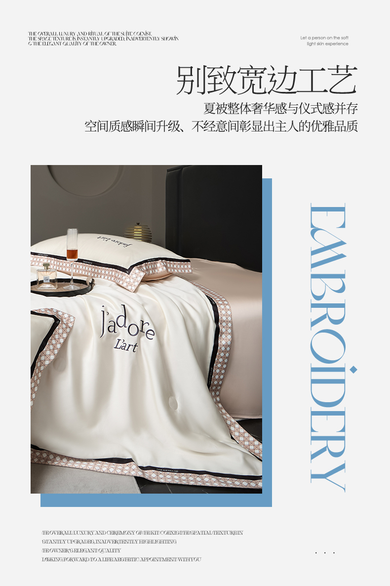 商品名称:(总)笙意家纺 2026新款水洗冰丝刺绣宽边夏被四件套-艾斯系列