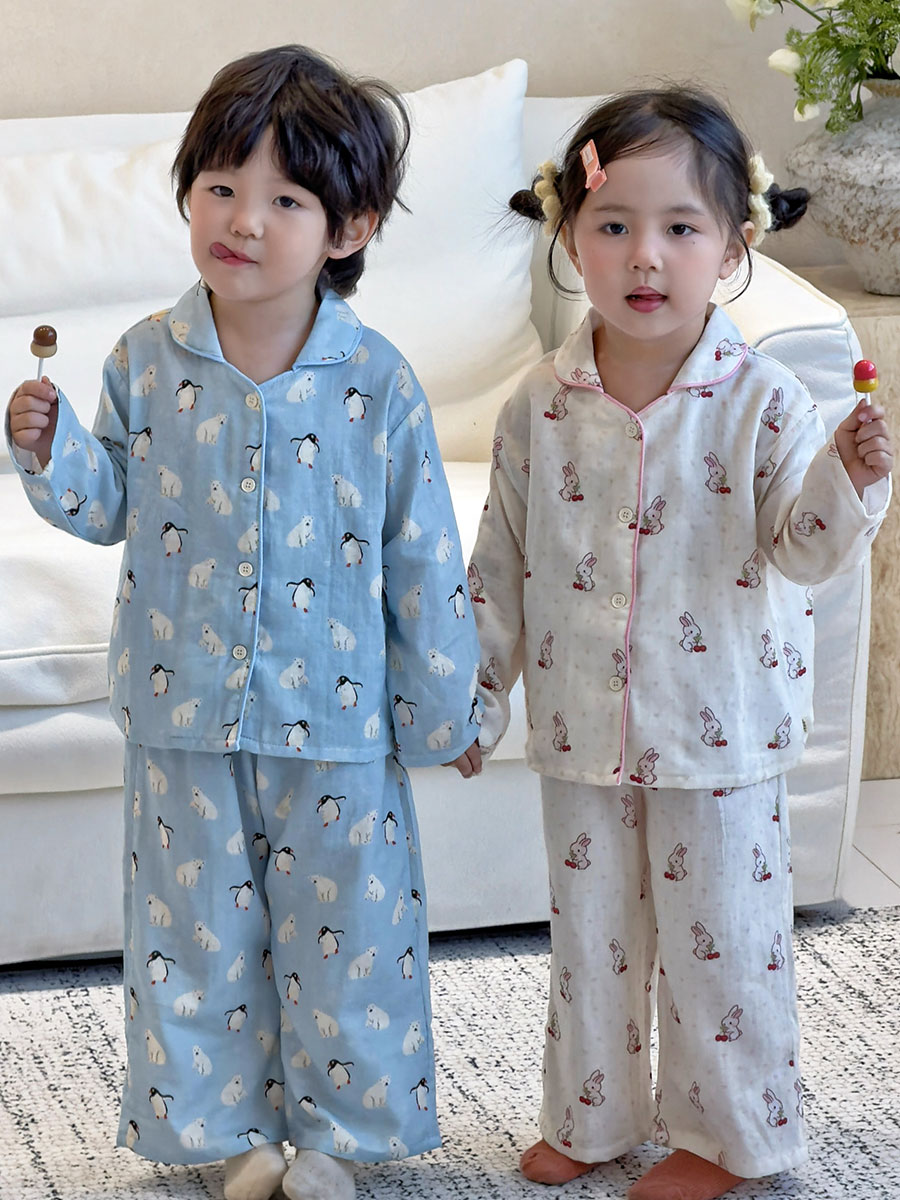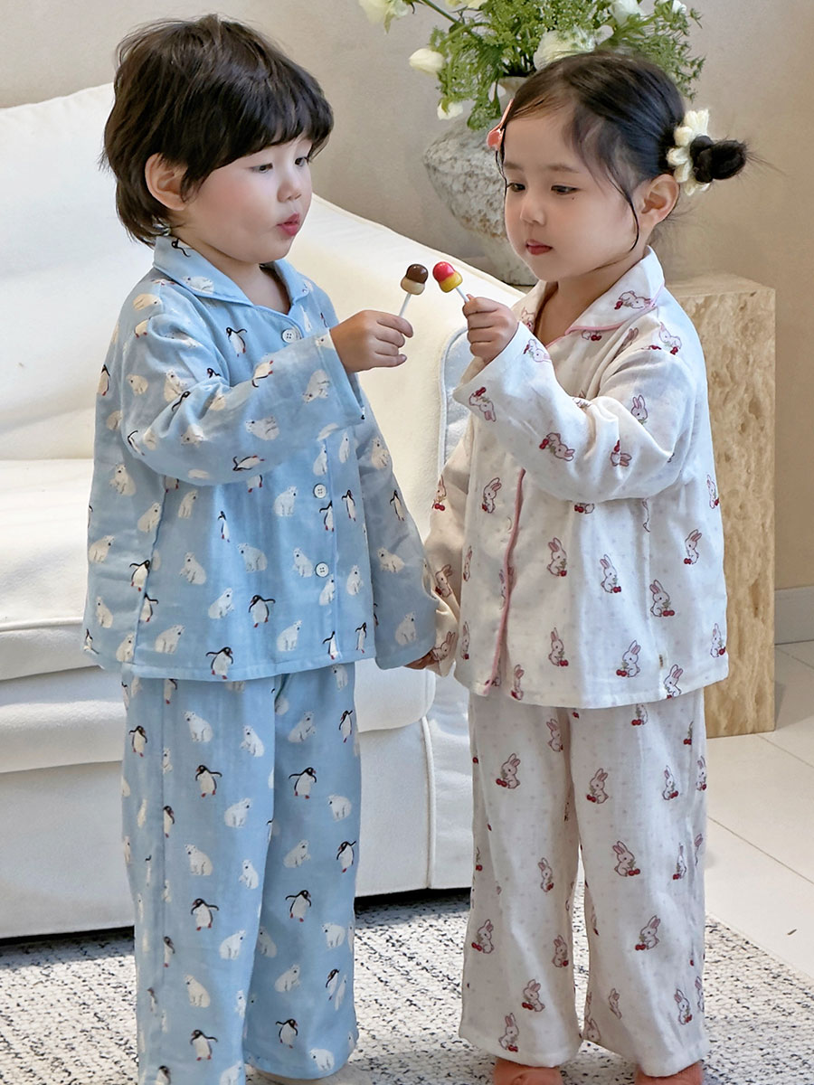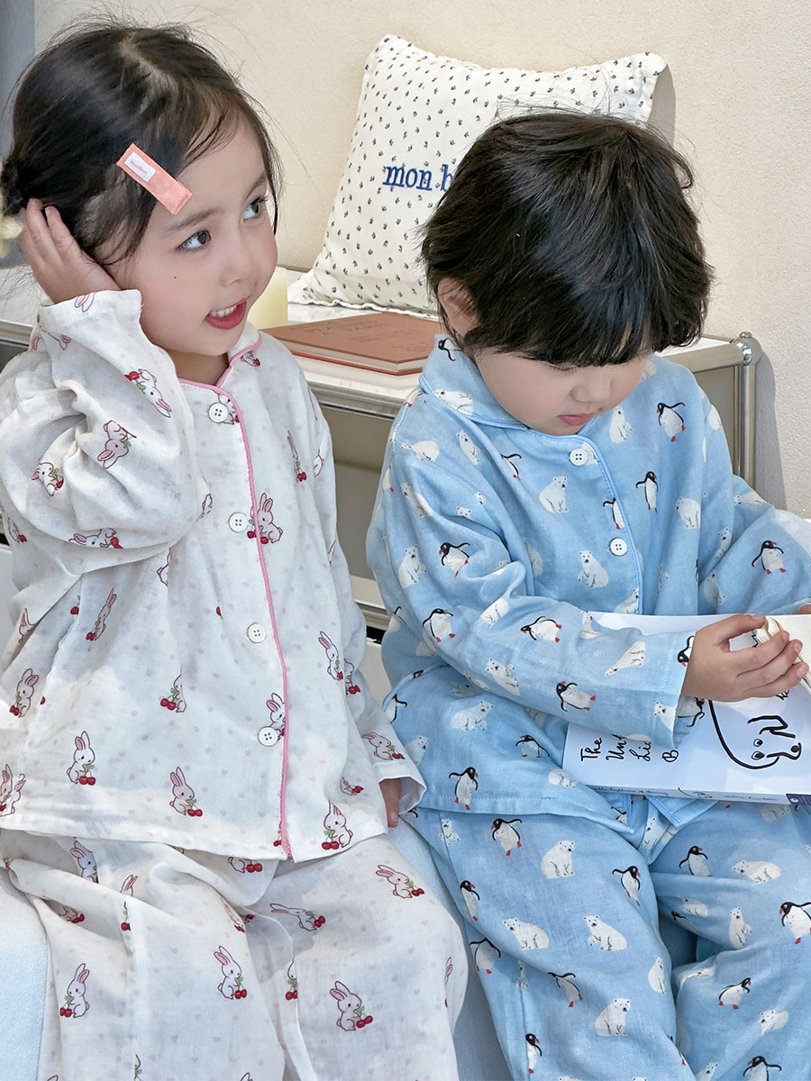 (总)妍景家居生活馆 2026新款儿童纱布纯棉全棉北极熊+樱桃兔套装