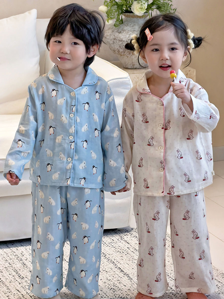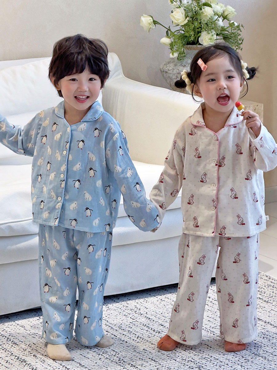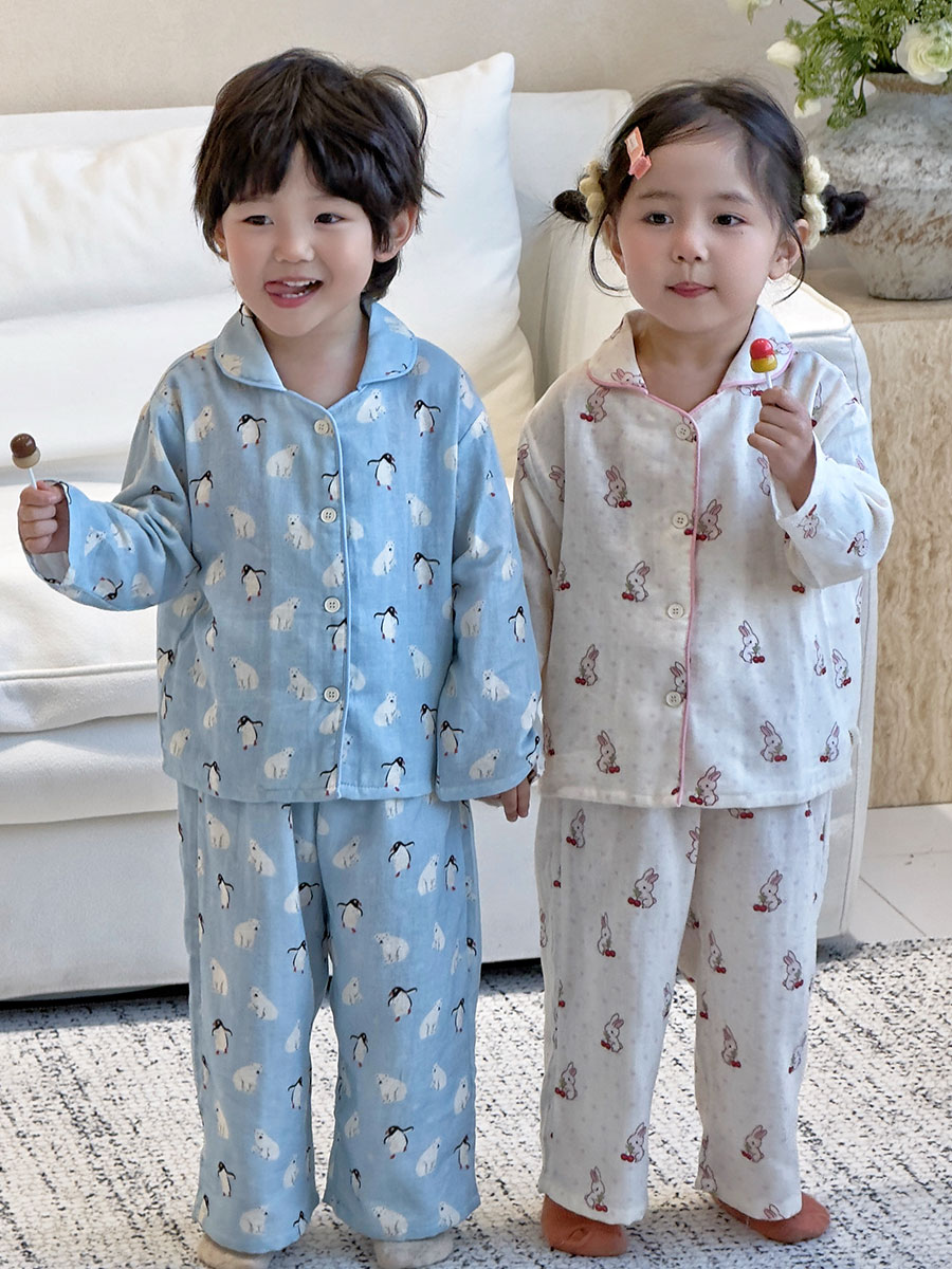 (总)妍景家居生活馆 2026新款儿童纱布纯棉全棉北极熊+樱桃兔套装