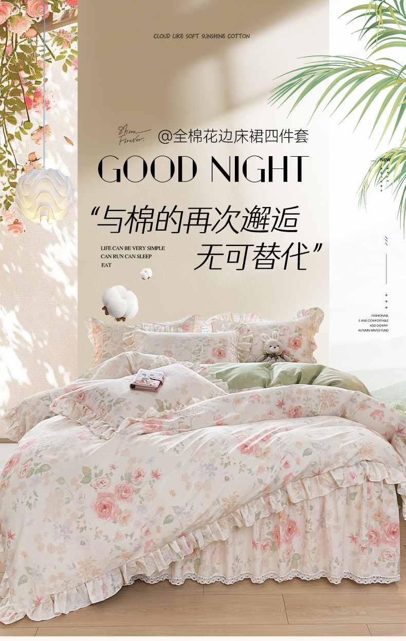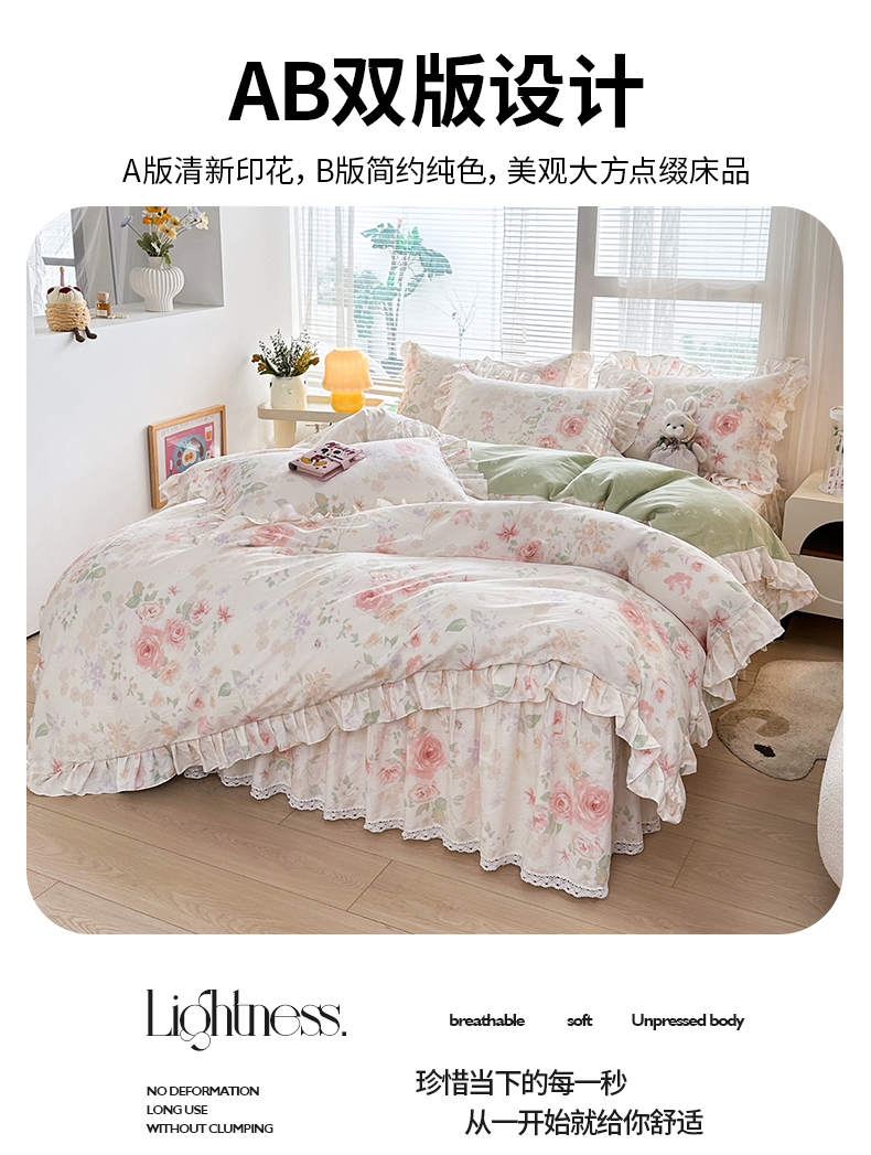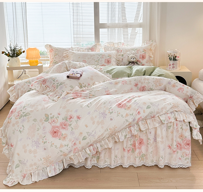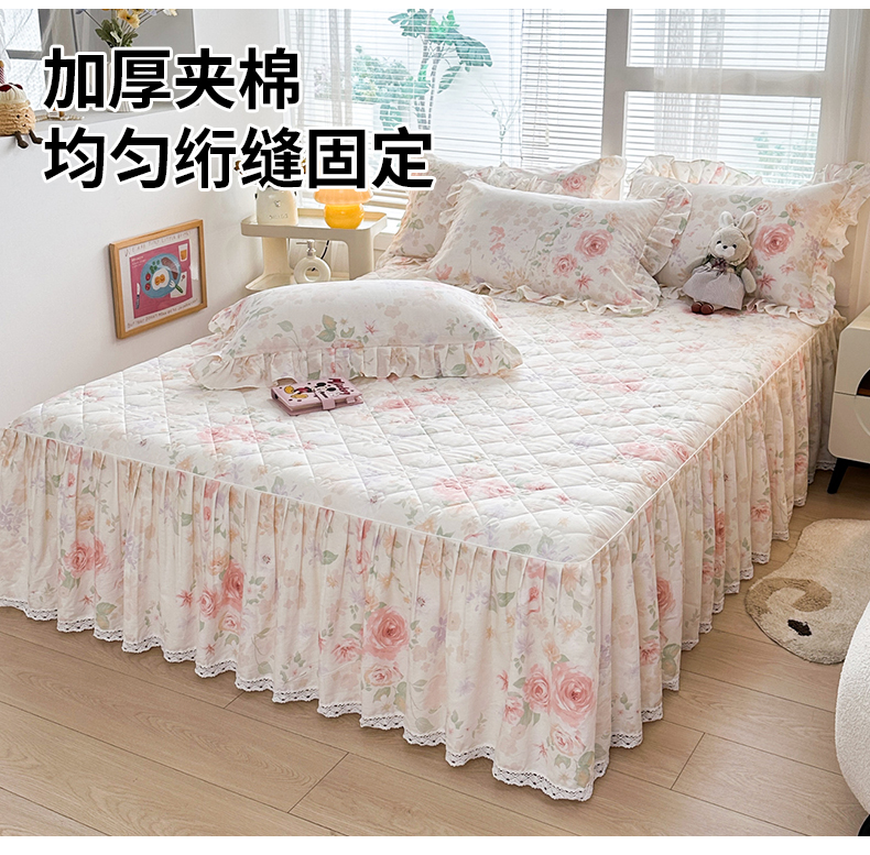 当前位置: 91家纺网 > 商品网购 > 床品套件 > 四件套 > 全棉普通四件套 > 忘忧草 2026新款全棉夹棉印花床裙四件套单被套 雾飞花