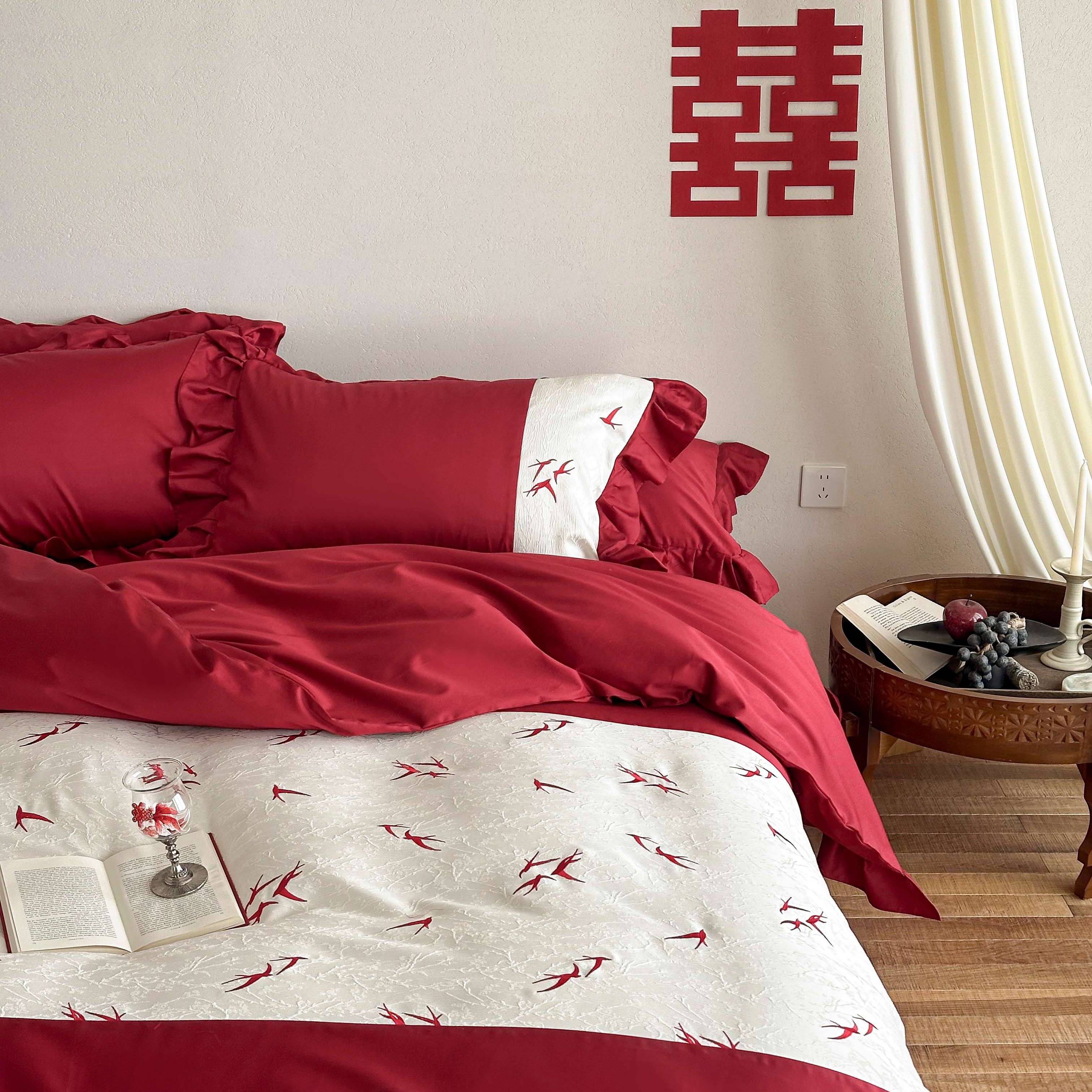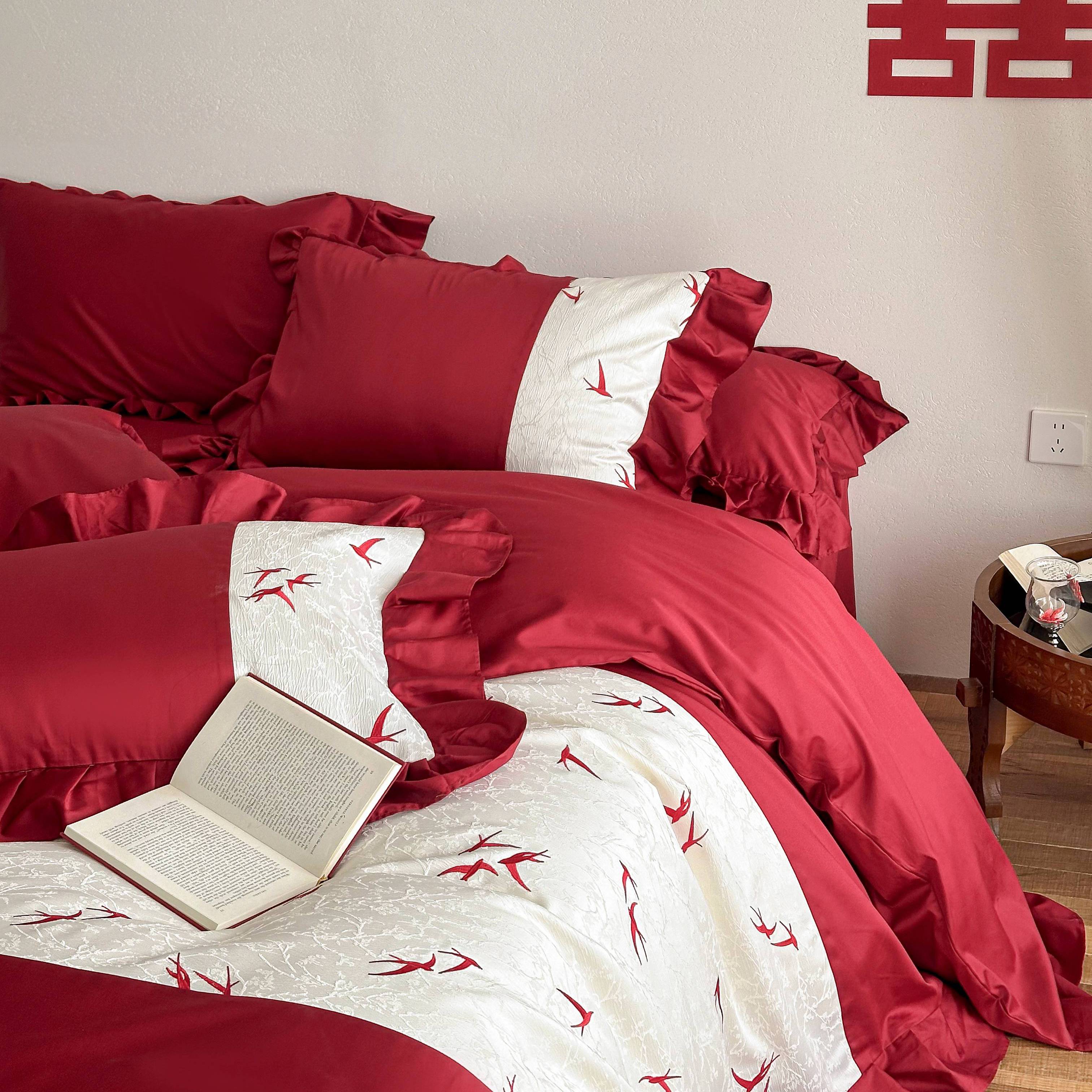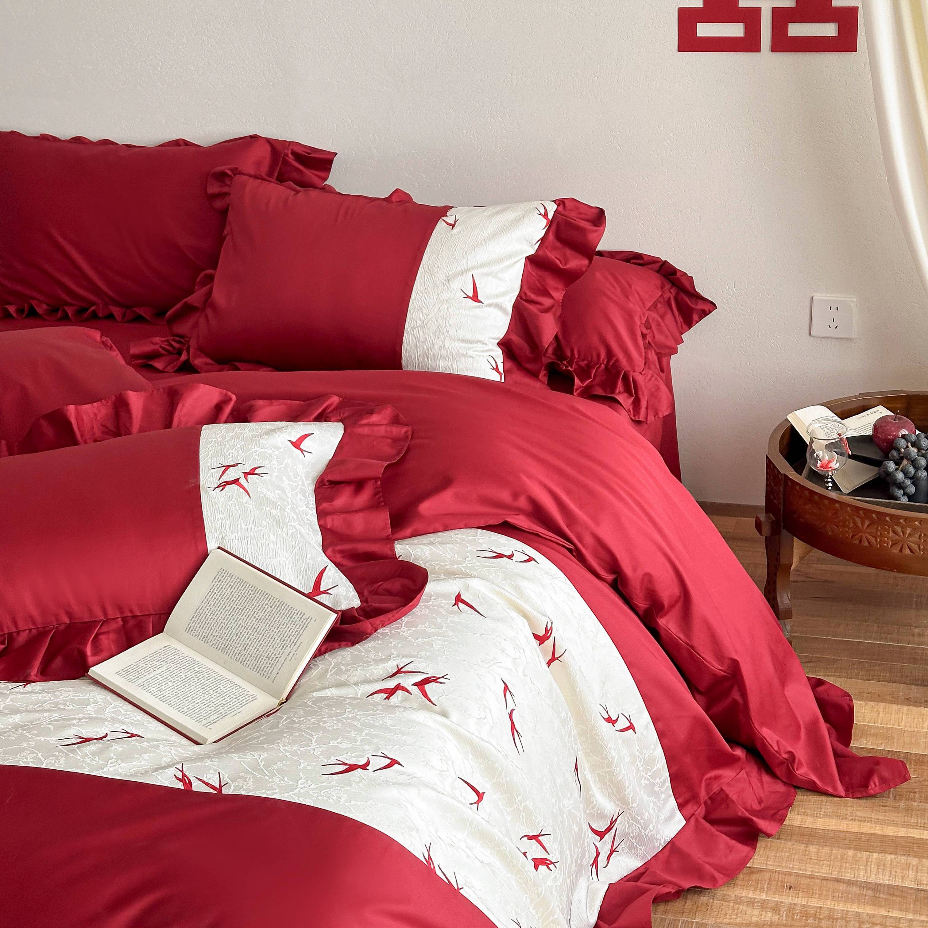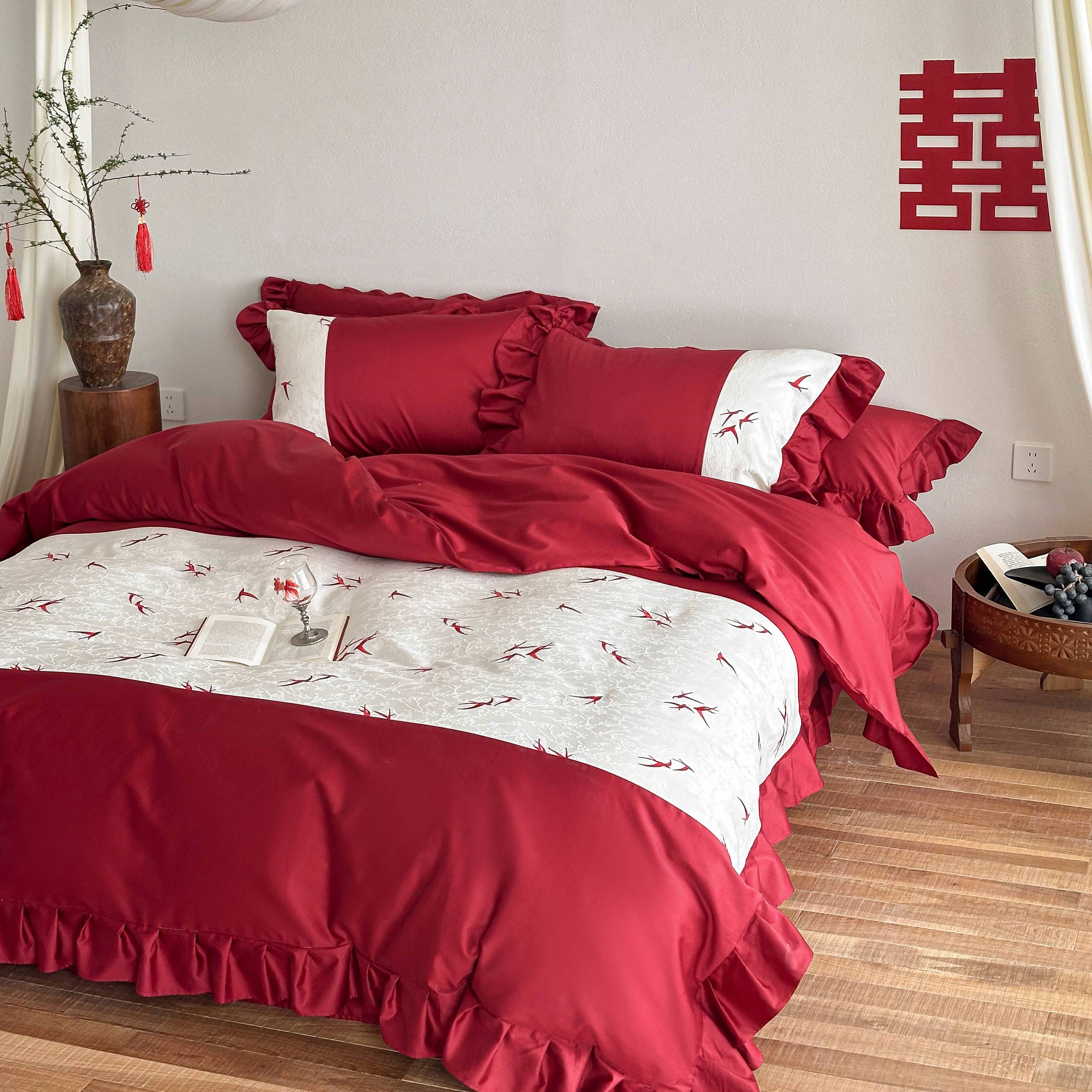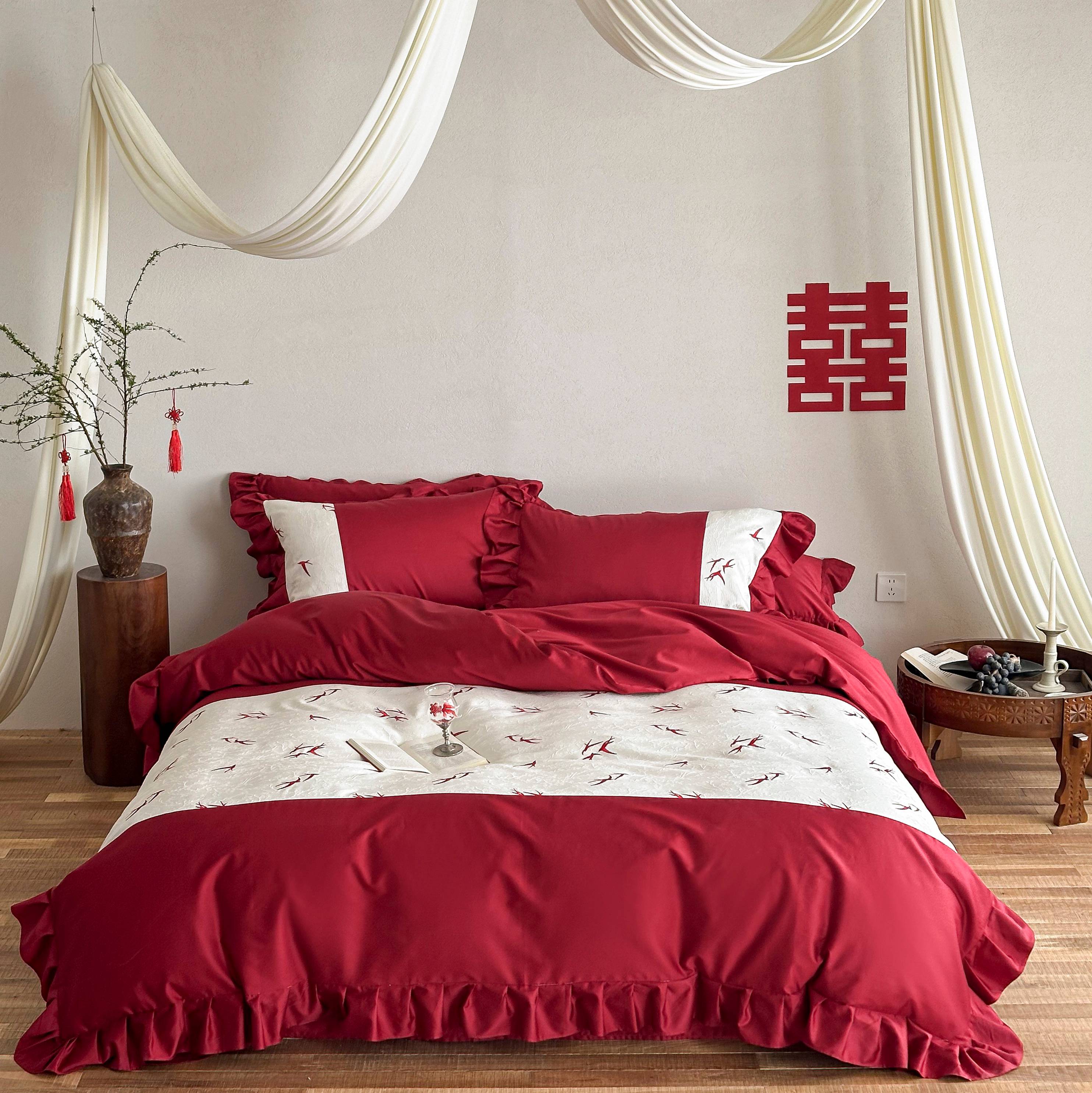 (总)西西家居 2026新款100S长绒棉纯棉刺绣四件套-家有囍事(含精致红色礼盒),家有囍事