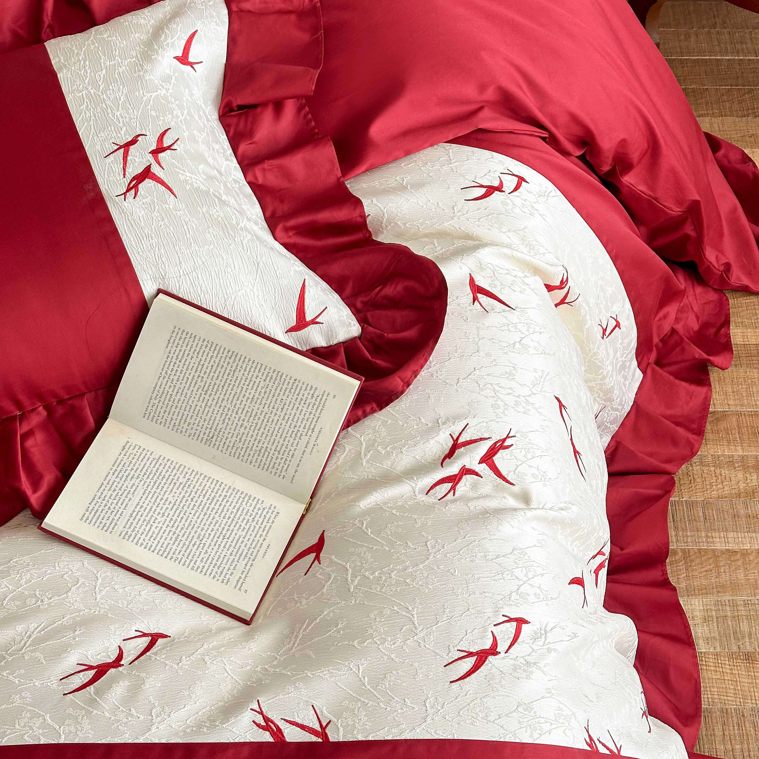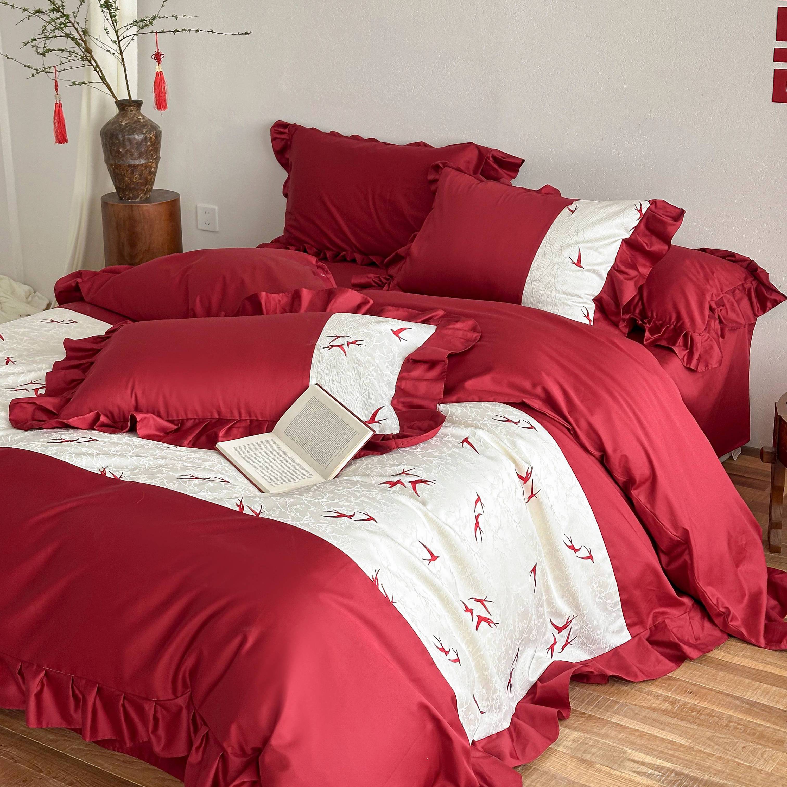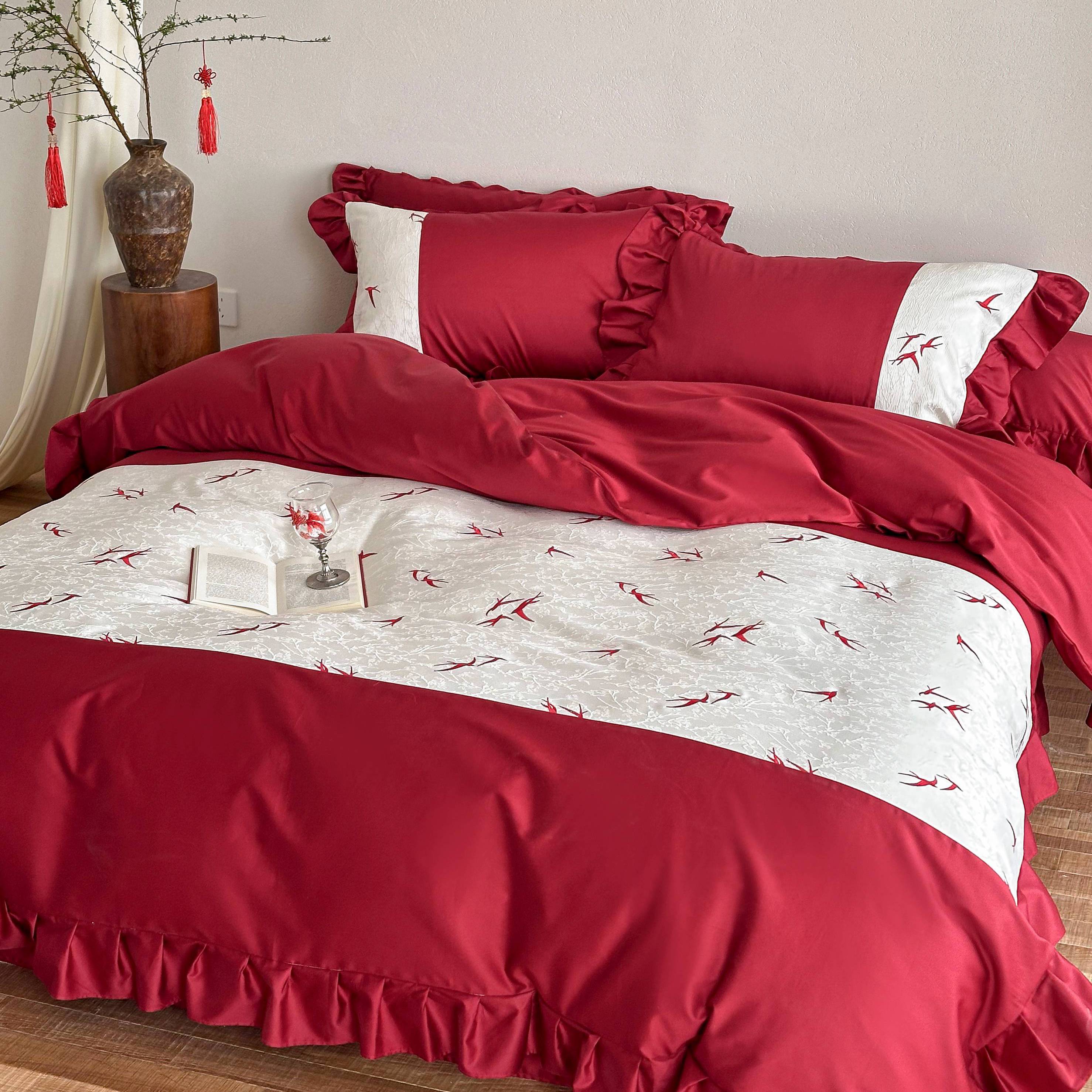 (总)西西家居 2026春夏新款100S长绒棉纯棉高精密绣花四件套-春日来信(含精致红色礼盒)