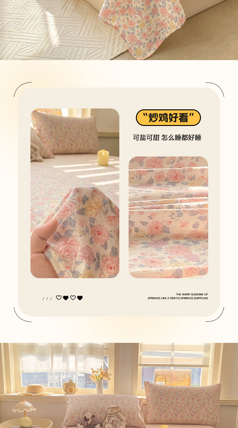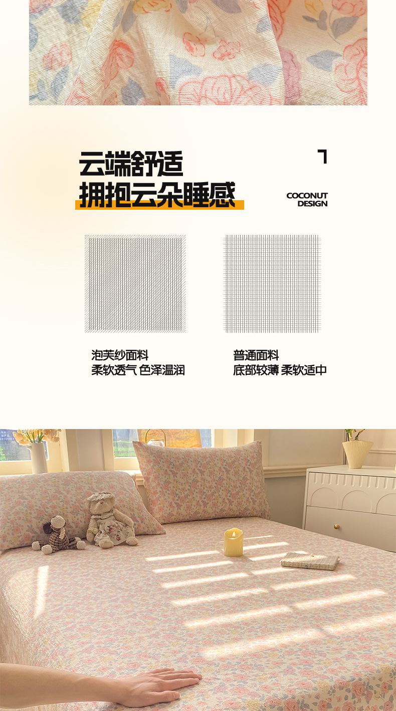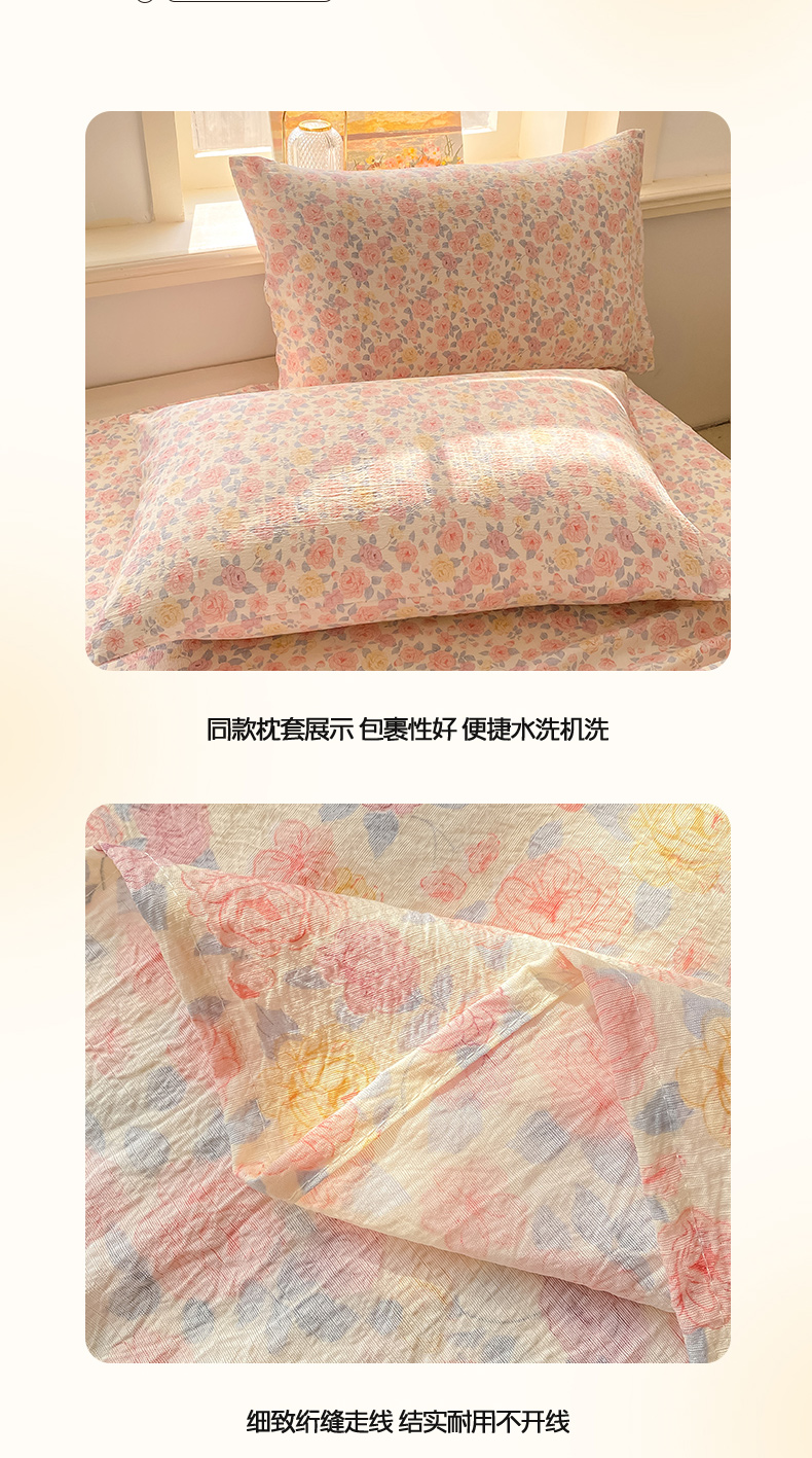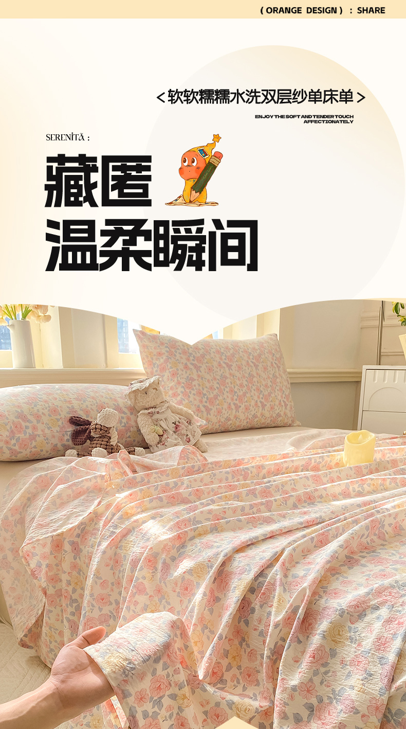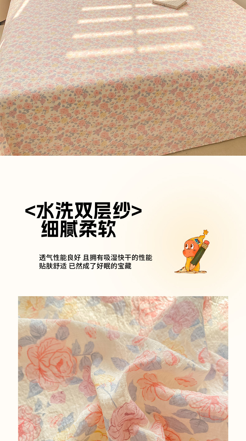 • 91家纺网 家纺一手货源 找家纺 晓时候 2026新款A类云感双层纱床单三件套单品单件床单 繁花