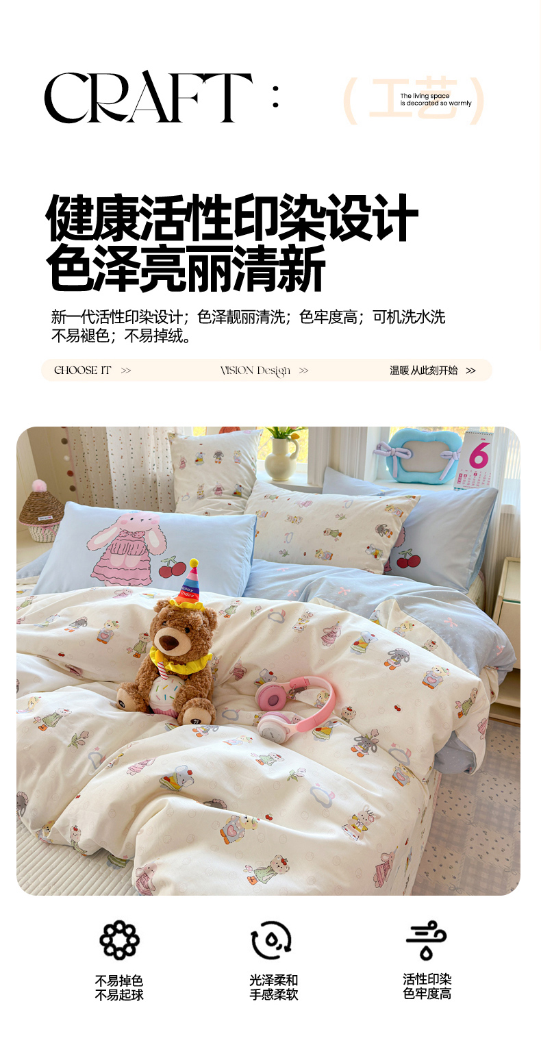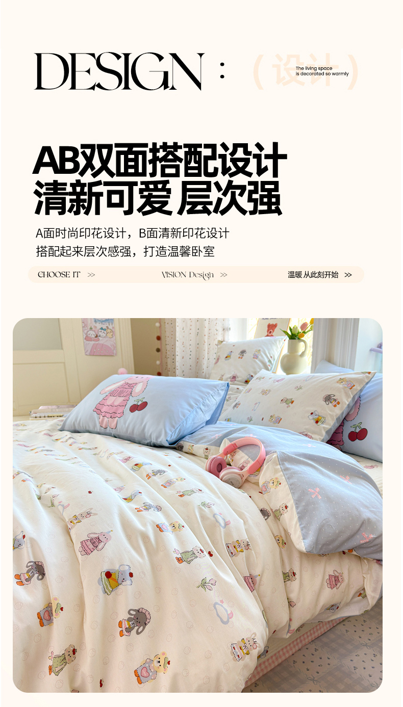 当前位置: 91家纺网 > 商品网购 > 床品套件 > 四件套 > 全棉普通四件套 > Sweet dreams甜梦 2026新款小清新卡通全棉纯棉印花床盖四件套 小动物