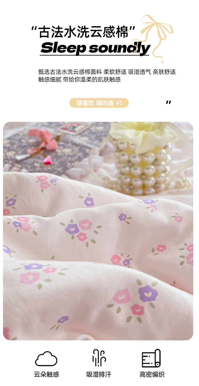 (总)康纳利 2026新款全棉花边夏被古法水洗云感棉空调被夏被四件套,奶黄樱漫,粉樱漫语,粉紫绮梦,花间浅梦,蕾丝粉语,蕾丝蓝韵,春芽浅漾,浅草花语,组合(仅参考)