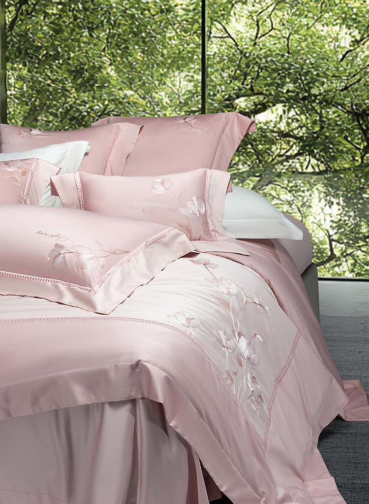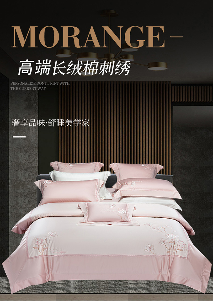 (总)诗黛尔 2025秋冬新款长绒棉刺绣香缇卡系列四件套,卡其色,落樱粉,南瓜橘,绅士灰,水晶兰,油果绿