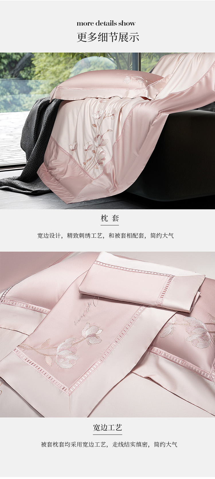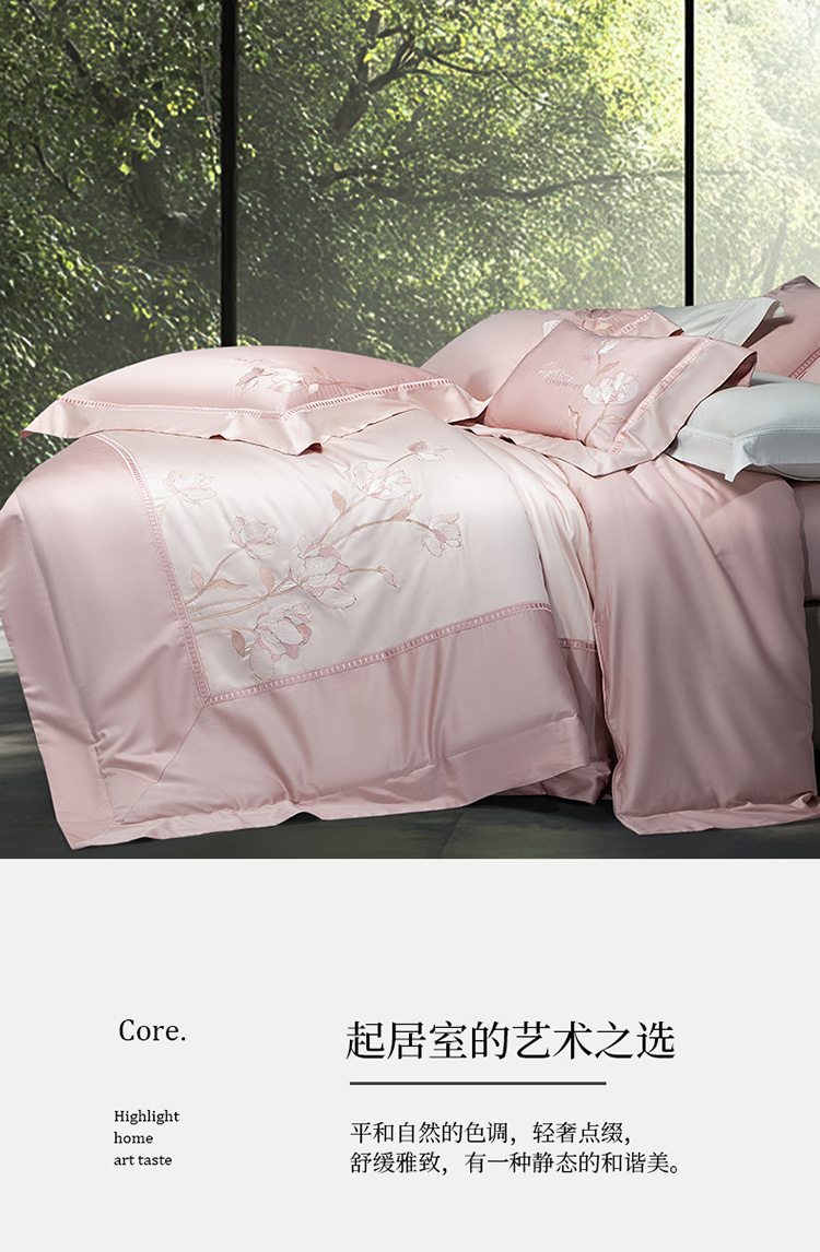 (总)诗黛尔 2026春夏新款长绒棉刺绣四件套黎境系列,黎境-香槟金,黎境-极光蓝,黎境-卡其色,黎境-落樱粉,黎境-绅士灰