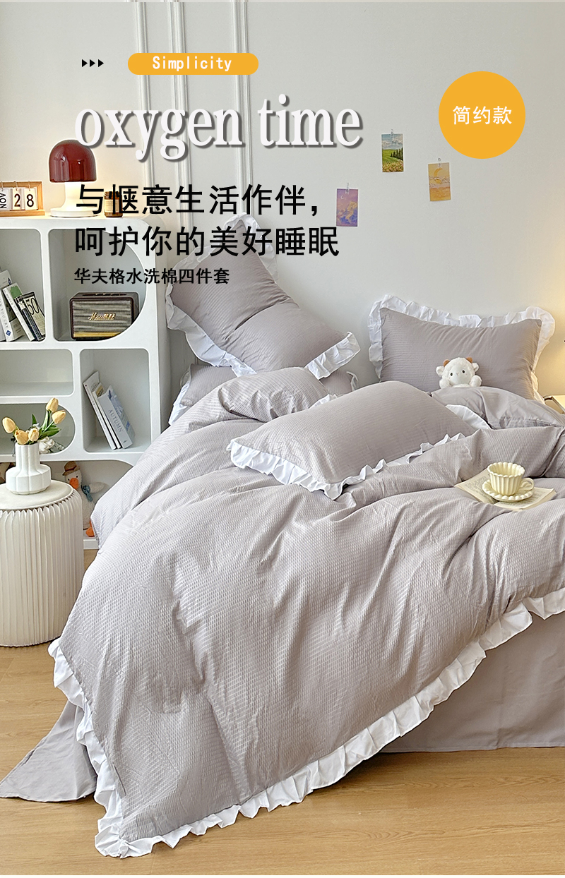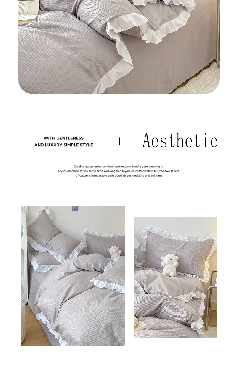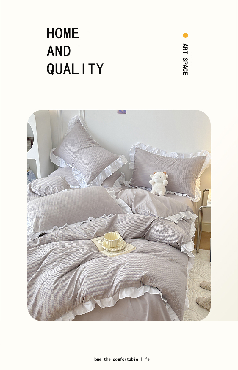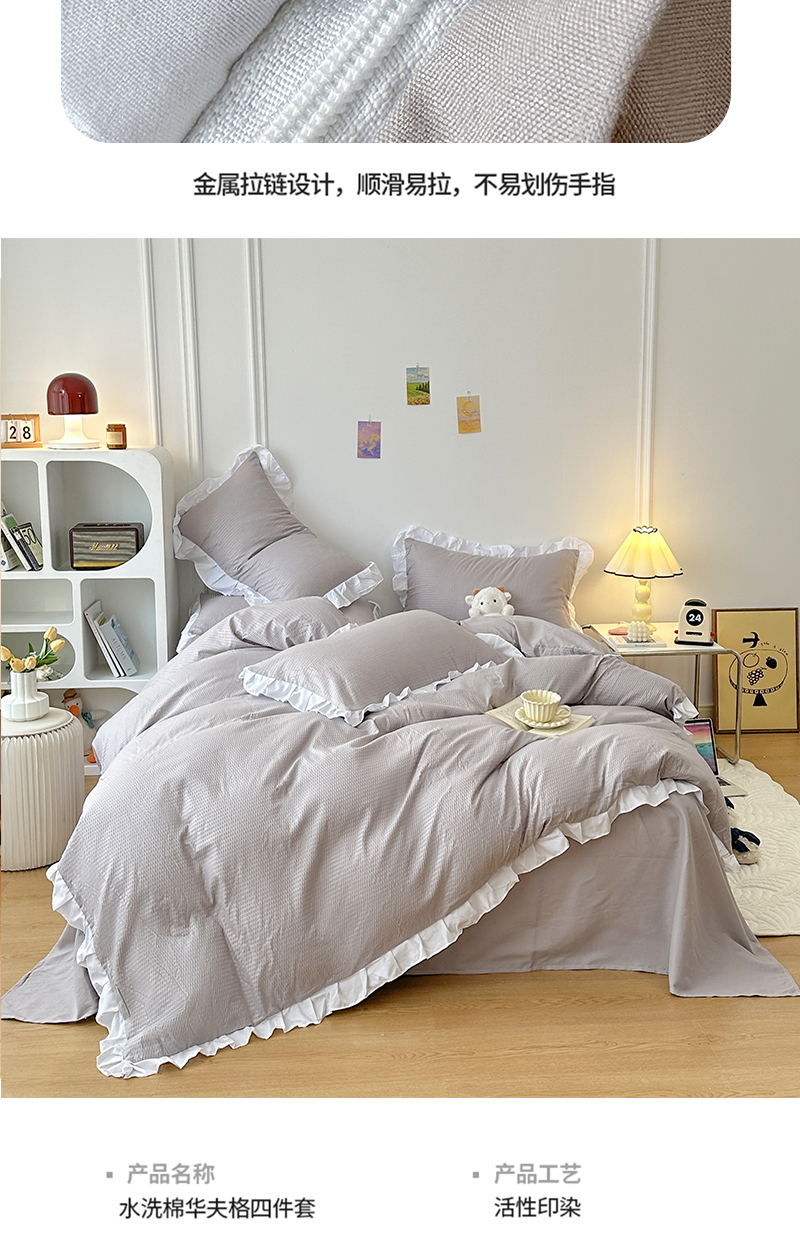 商品名称:啊雅家居 2026新款轻奢韩式花边华夫格四件套-花边款 花边款 梦幻灰