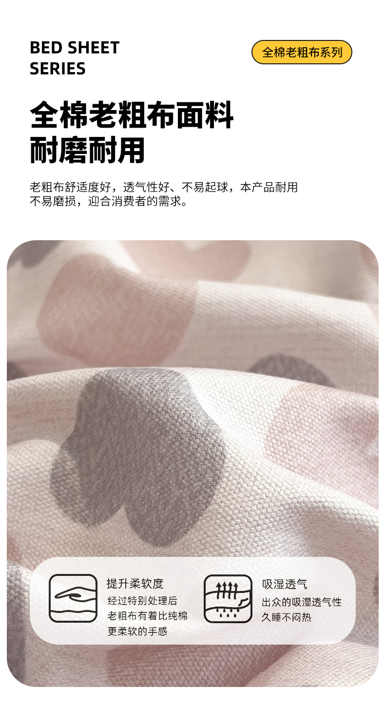 • 91家纺网 家纺一手货源 找家纺 芃成家纺 2026春夏新款全棉纯棉加厚老粗布单床单床单单件床单三件套 锦棠春
