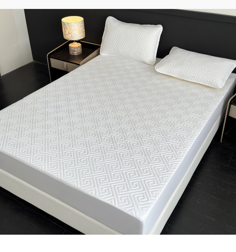 (总)慕克斯家纺 2026新款防水回字格床笠-慕克斯,白色,咖色,酒红,黑色,豆沙,藏青,蓝灰,卡其,米黄,墨绿,浅灰,深灰