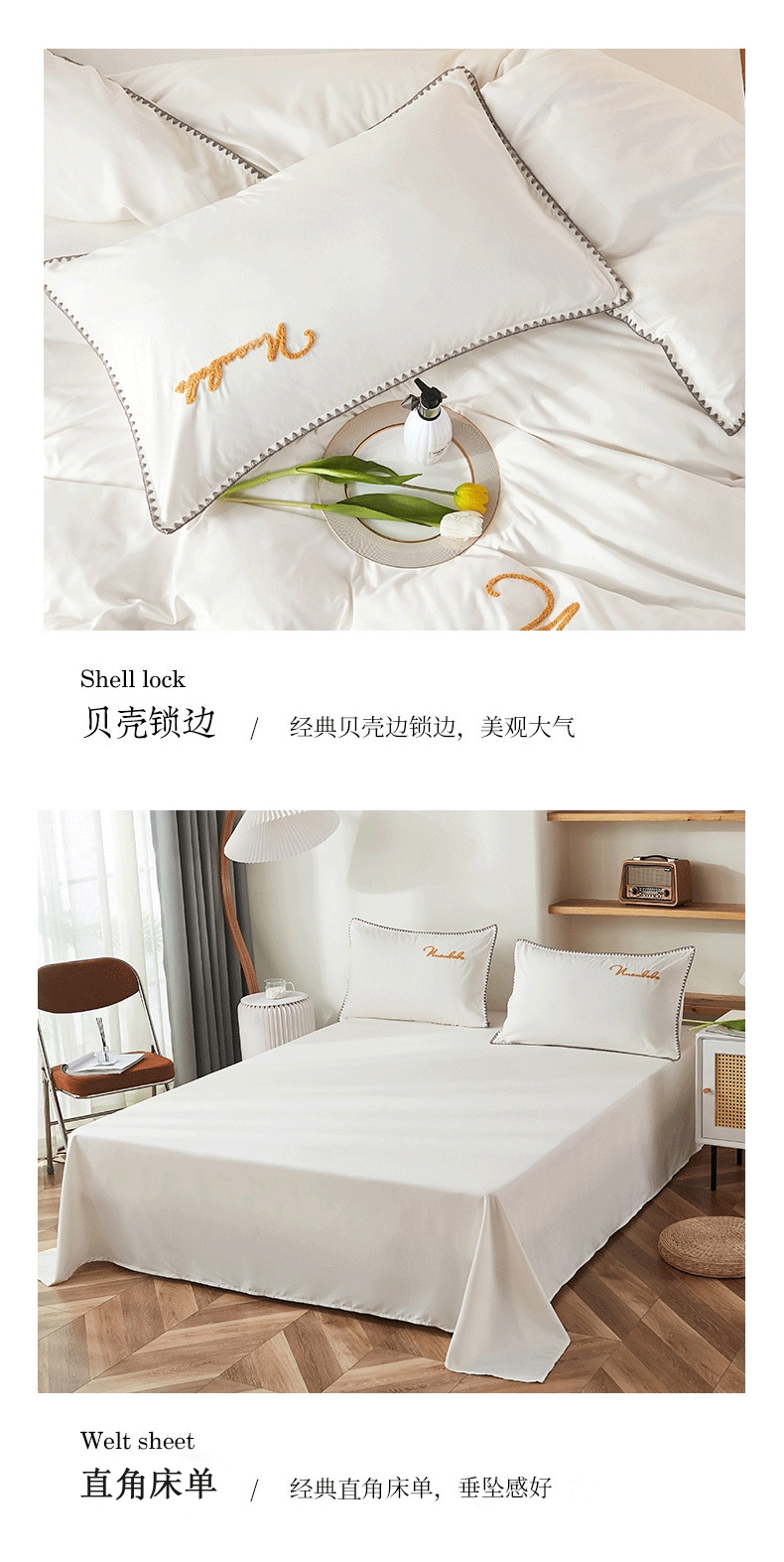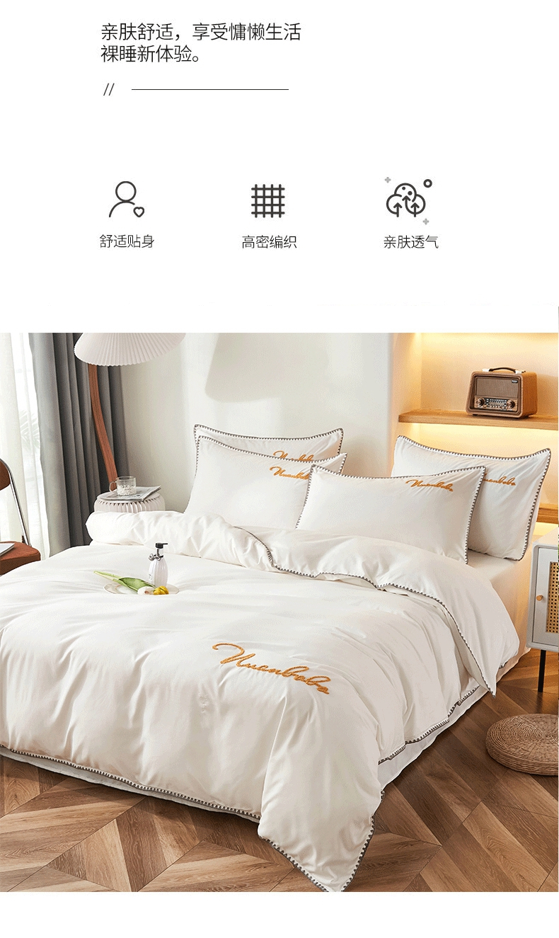 (总)啊雅家居 2026新款40S全棉飞边预留缩水款酒店民宿宾馆四件套一套可订制,白色