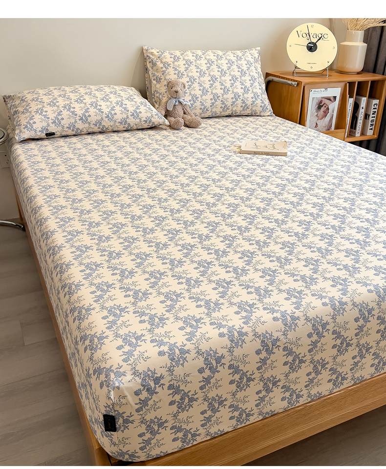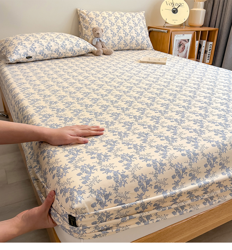 芃成家纺 2026春夏新款全棉纯棉加厚老粗布单床笠床笠单件床笠三件套 蓝绣球