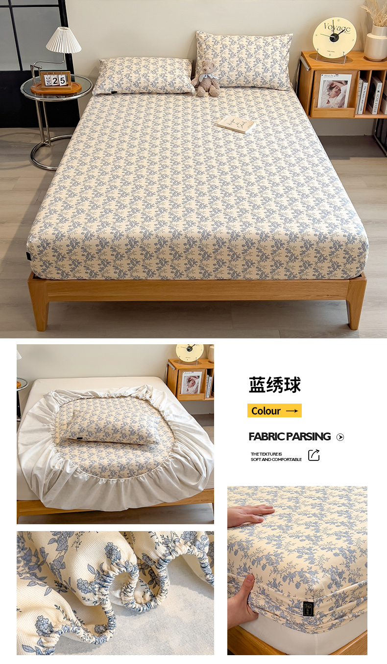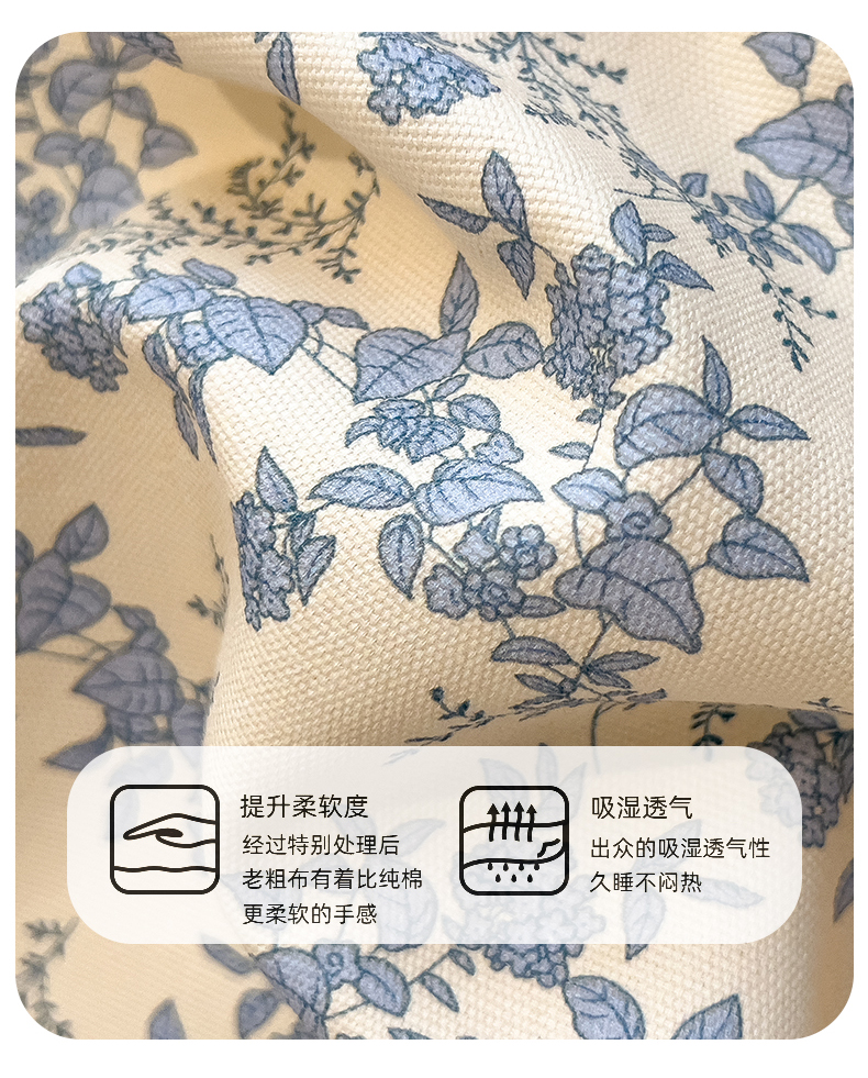 • 91家纺网 家纺一手货源 找家纺 芃成家纺 2026春夏新款全棉纯棉加厚老粗布单床笠床笠单件床笠三件套 蓝绣球