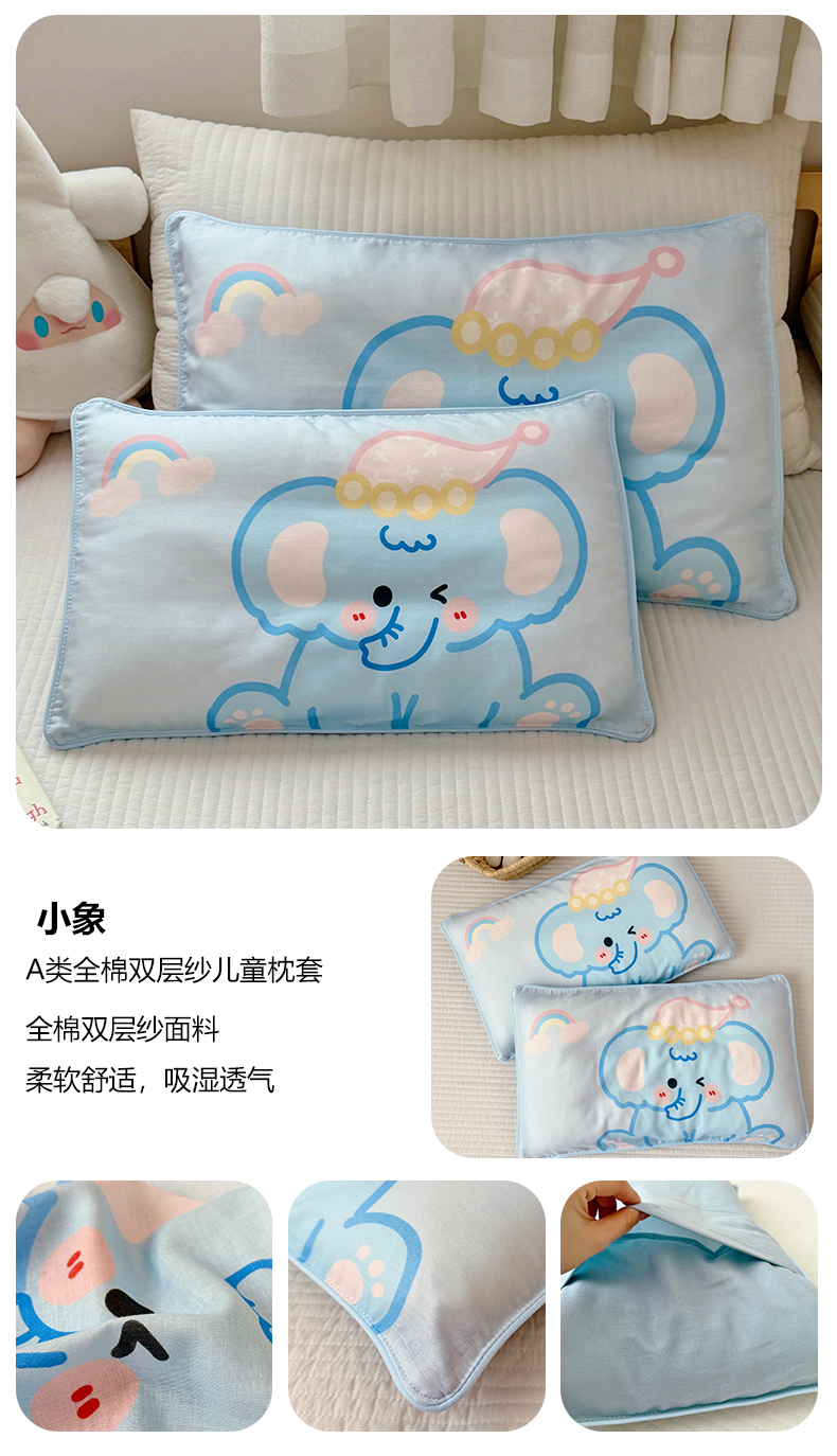商品名称:(总)萌宝家纺 2026春夏纯棉双层纱儿童枕套A类宝宝纱布枕头枕芯(萌宠系列)