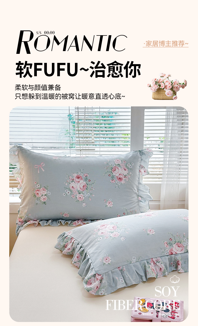 商品名称:忘忧草 2026新款全棉纯棉印花精致花边枕套单枕套 枕套单件 花疏影