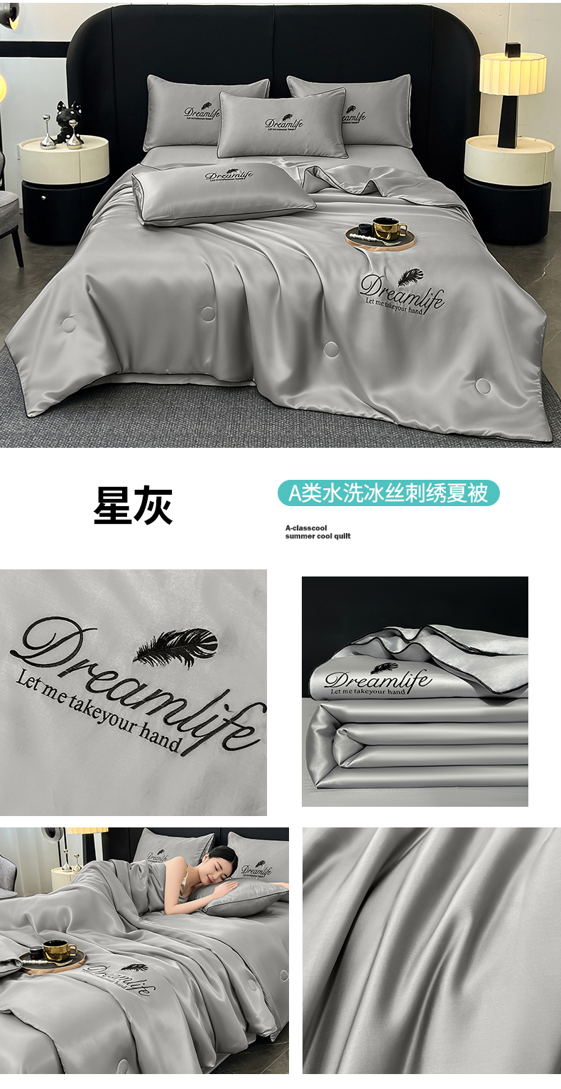 • 91家纺网 家纺一手货源 找家纺 鑫佰利 2026新款水洗冰丝刺绣夏被夏凉被空调被 星灰