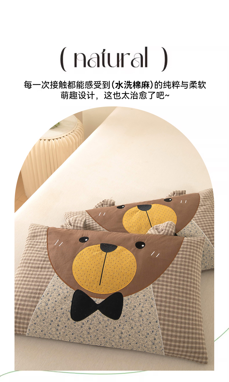 (总)梦莱家纺 2026新款水洗棉麻荞麦枕枕头枕芯系列-花边熊,组合图仅供展示-不可下单,花边熊-粉,花边熊-咖,花边熊卡其,花边熊-蓝