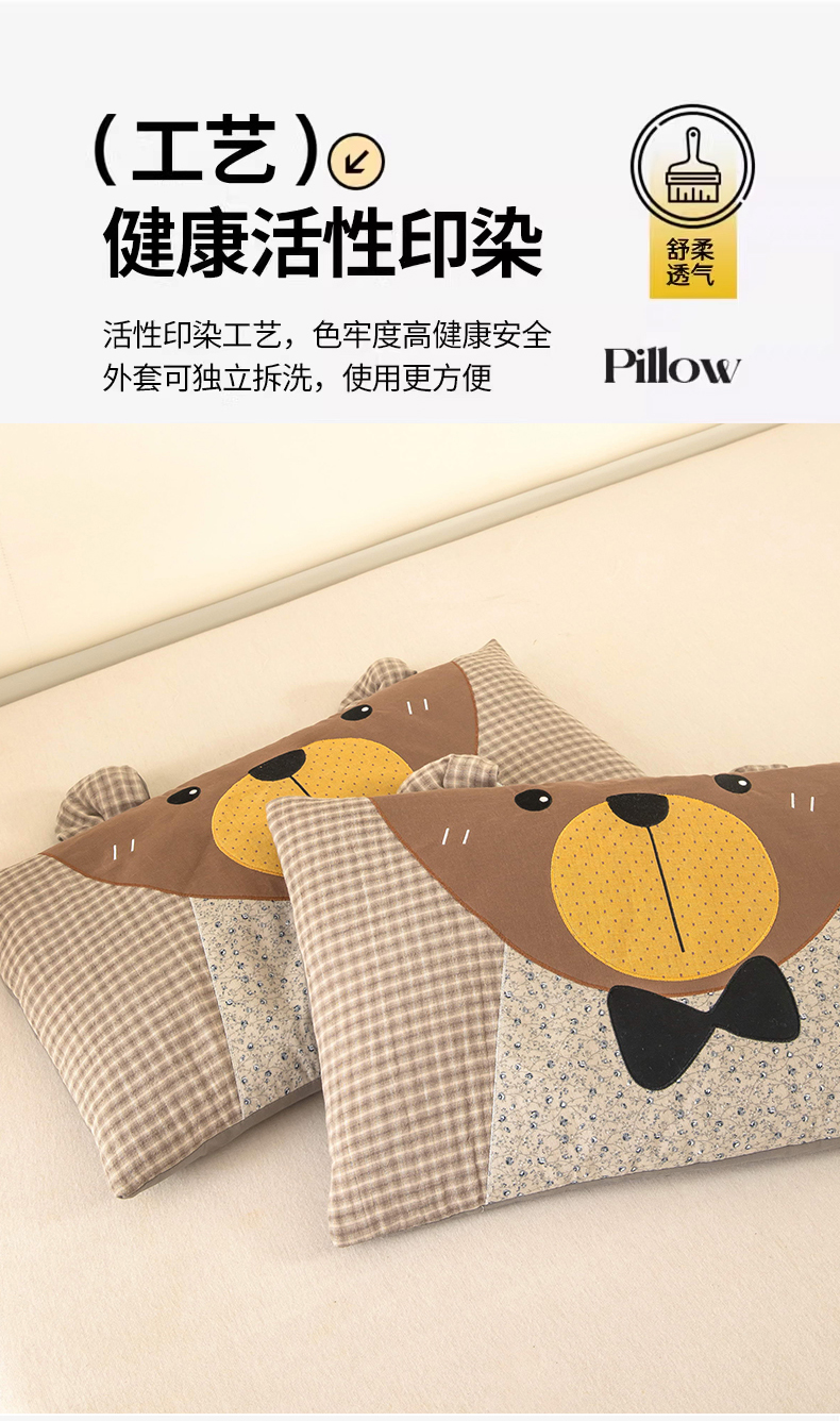 (总)梦莱家纺 2026新款水洗棉麻荞麦枕-绅士熊 枕头枕芯