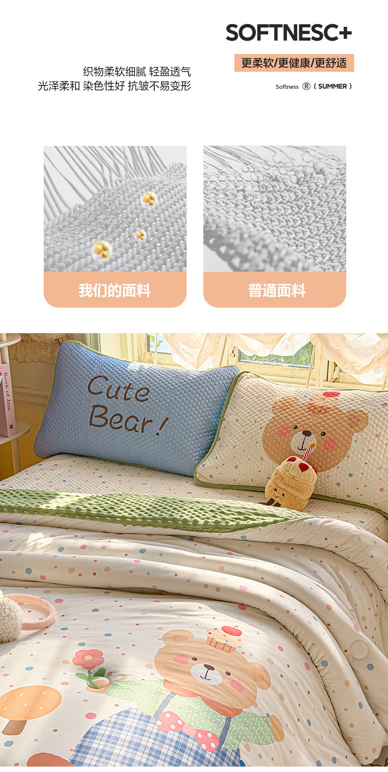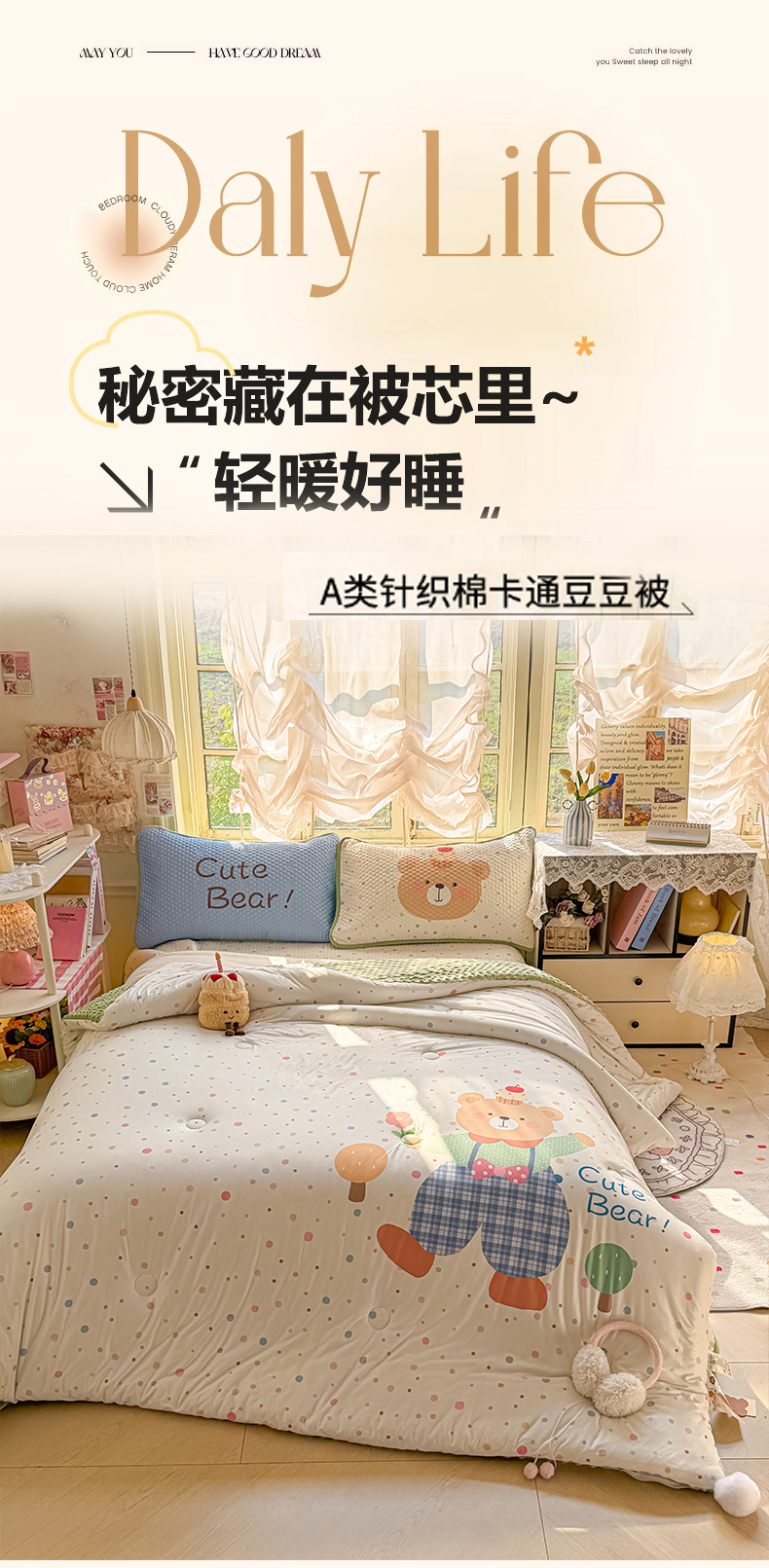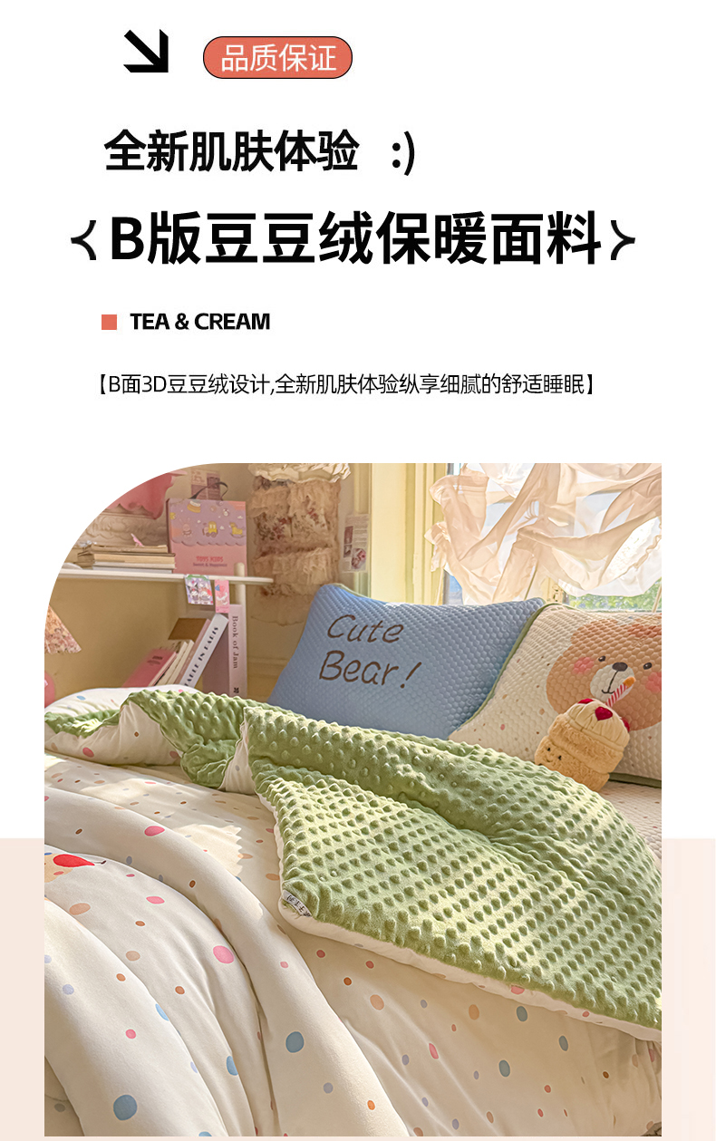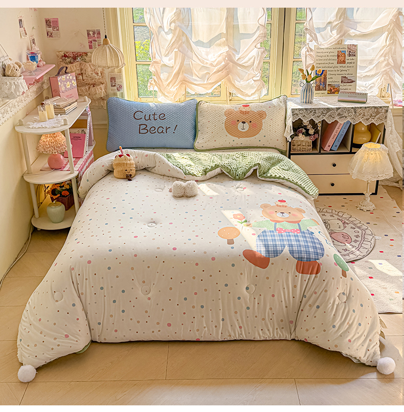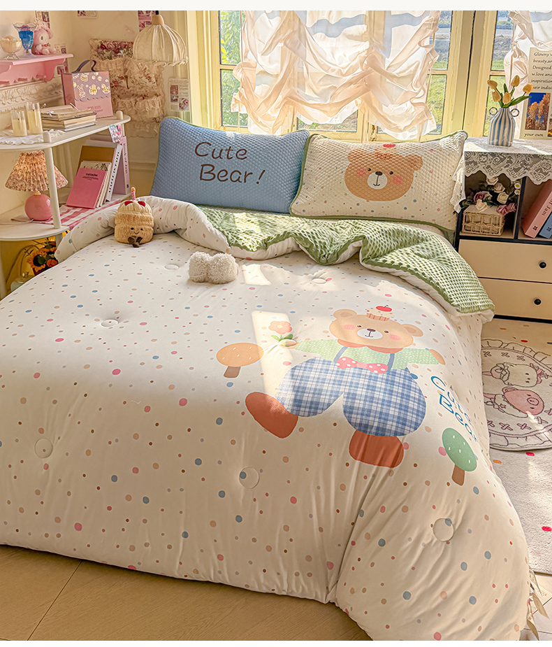 商品名称:宜家坊 2026直播热款A类针织棉豆豆被夏被春秋被空调被儿童学生大版卡通被子被芯 可爱小熊