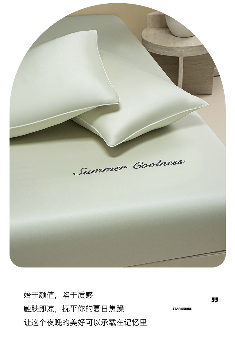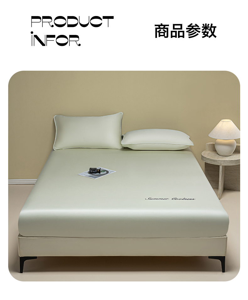 商品名称:(总)美澳家纺 2026春夏新款纯色刺绣凉感水洗冰丝真丝床笠三件套